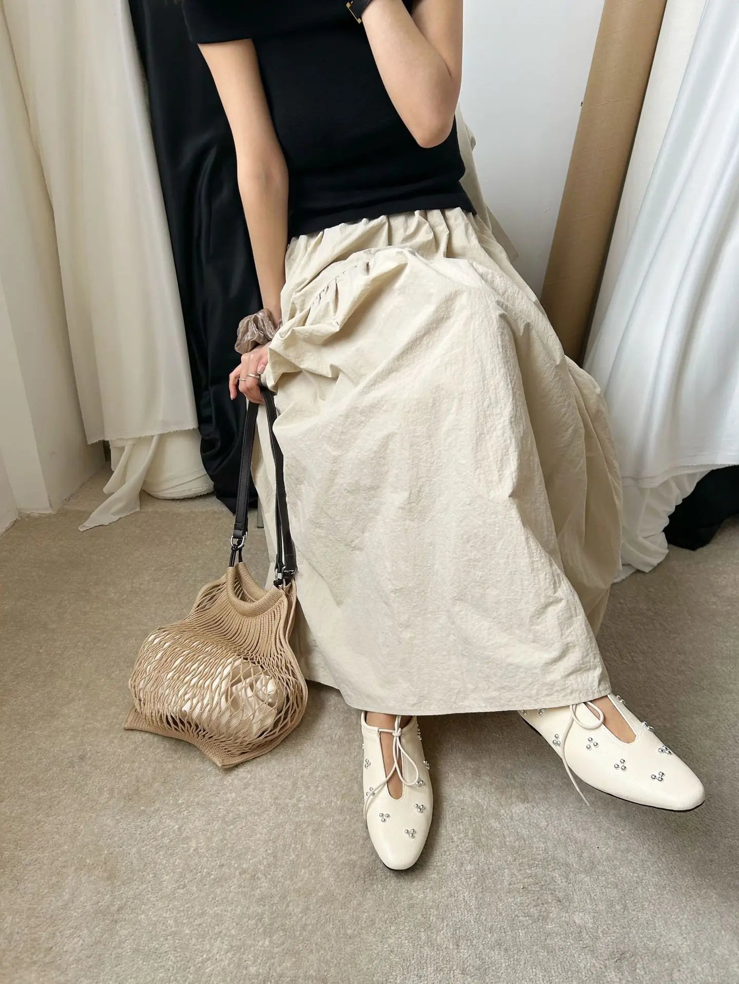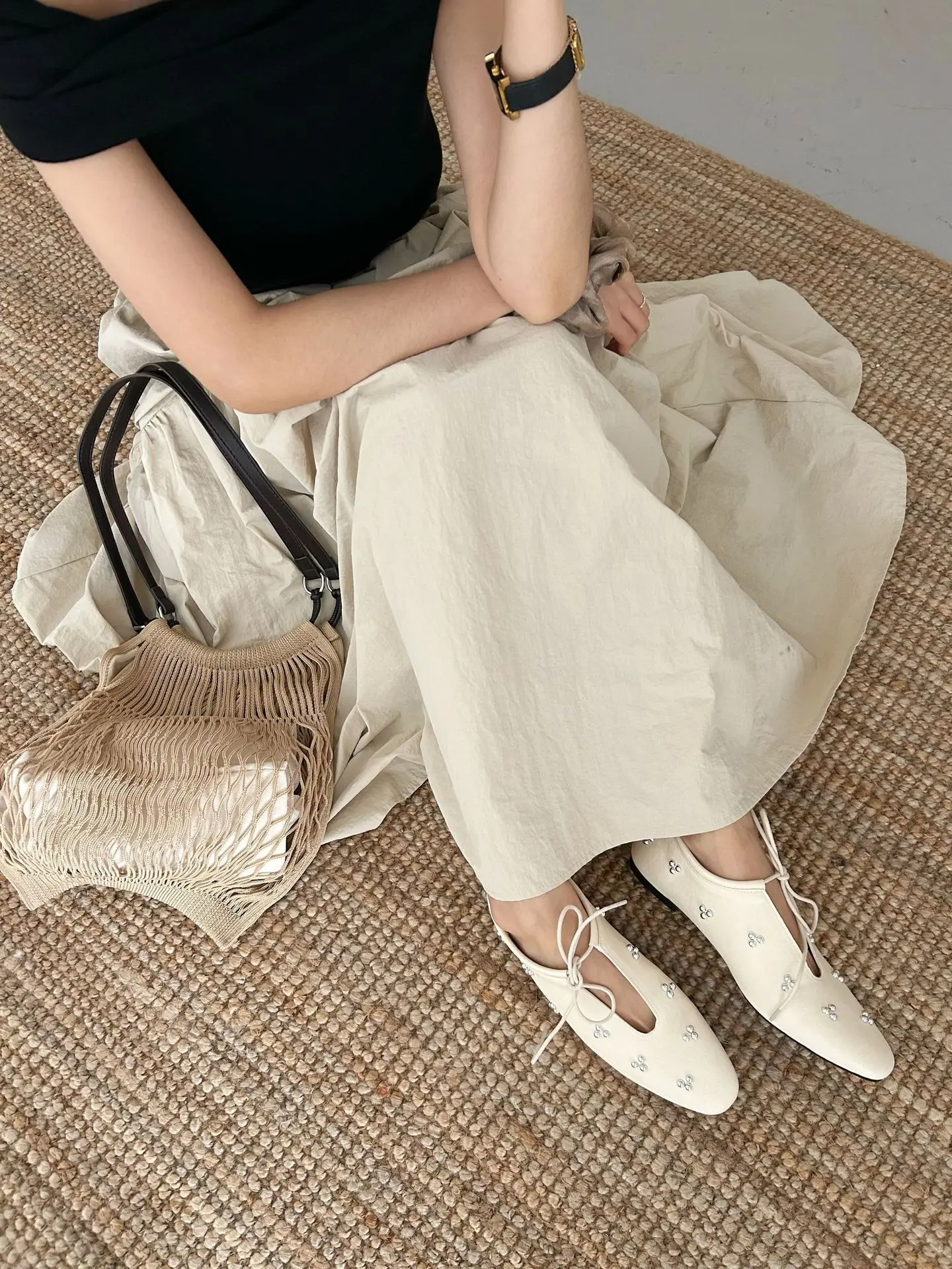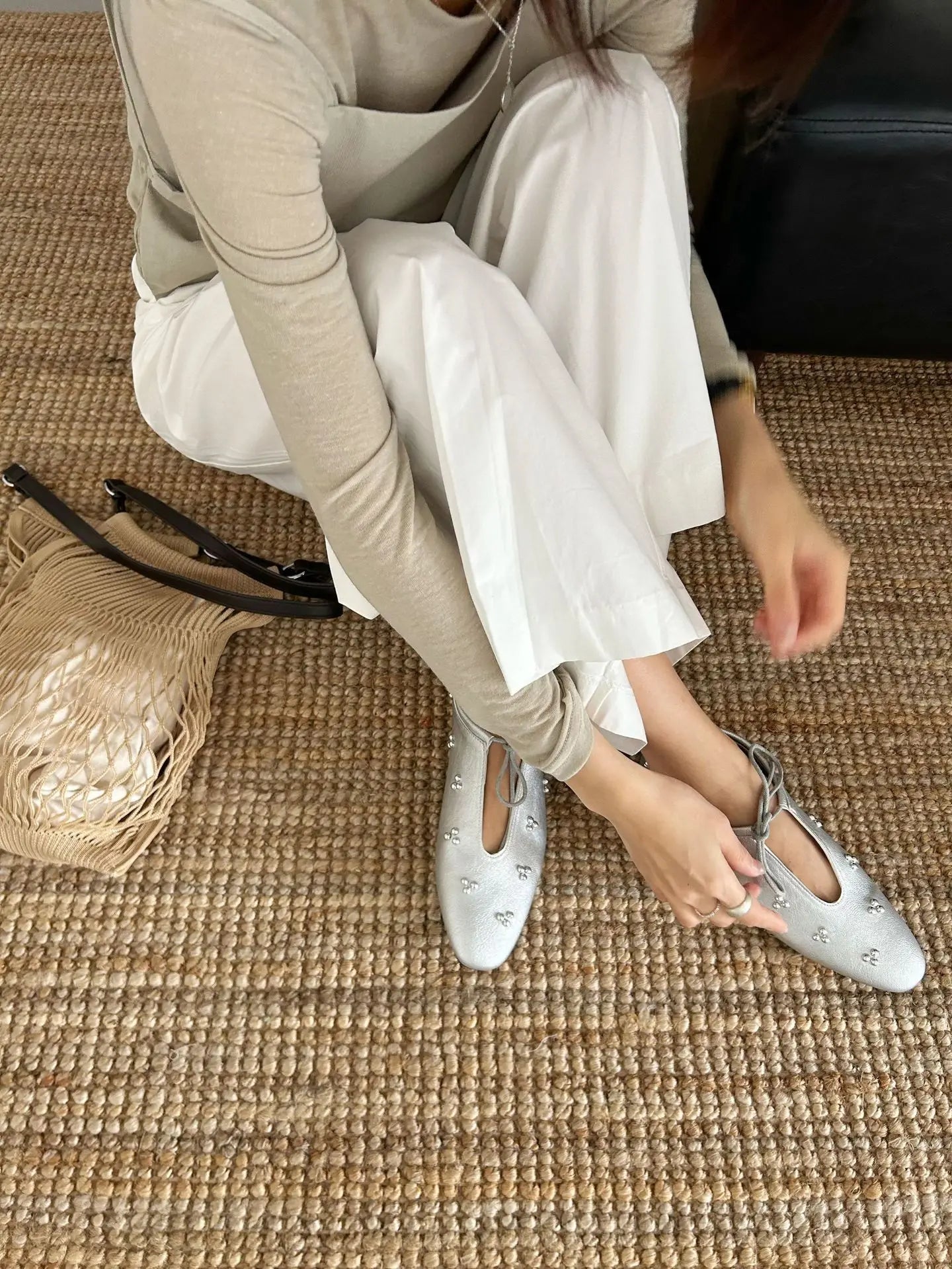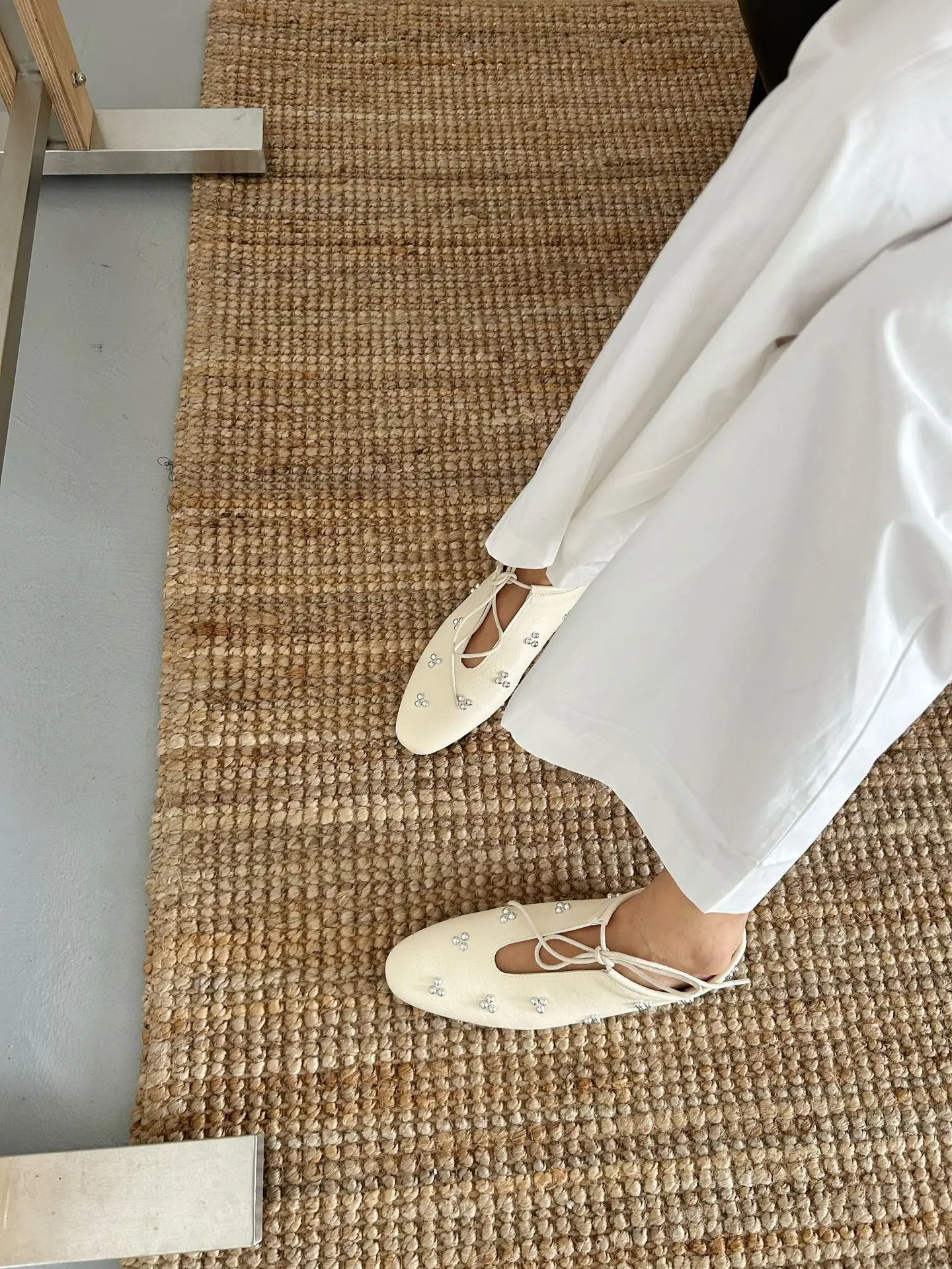 KYLETHOMASW  -  Spring Metal Rivet Decoration Shallow Mouth Ballet Flats 2025 High Quality Soft Bottom Lacing Flat Shoes Casual Comfy Shoes