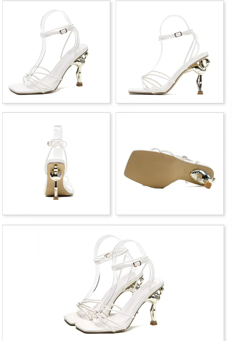 KYLETHOMASW - Square Toe Narrow Band Sandals Women's Ankle Buckle Strap High Heels Party Female Shoes Sandalias Mujer