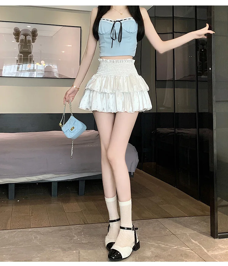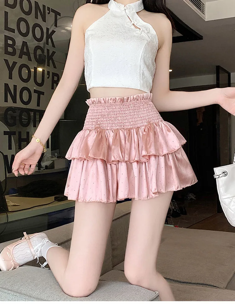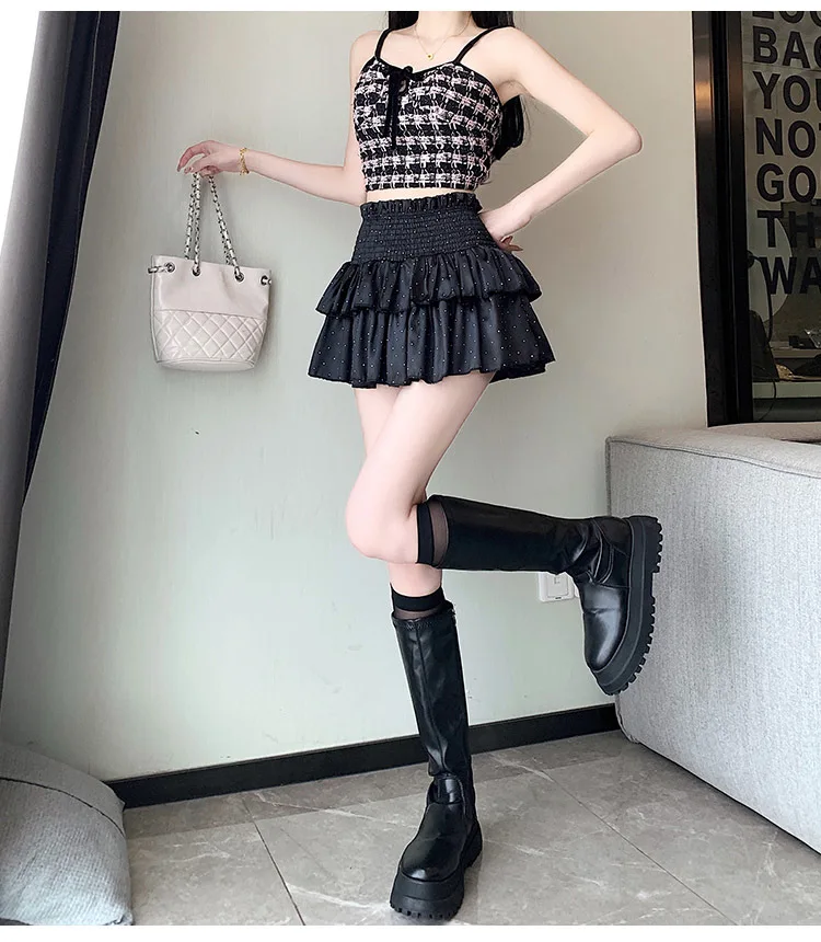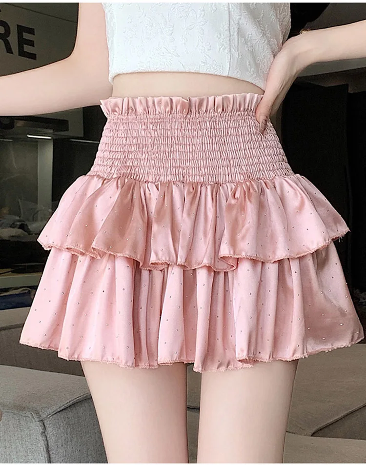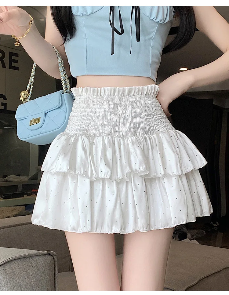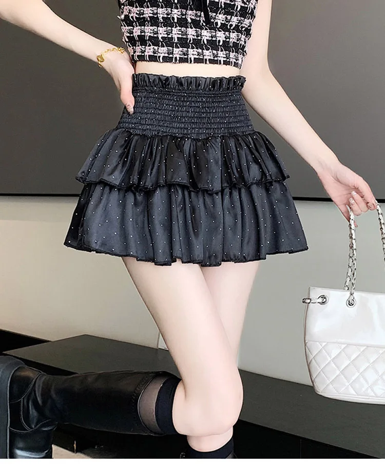 KYLETHOMASW - Streetwear Y2k Ruffles Pink Mini Skirts Women Sweet Kawaii High Waist A Line Skirt Summer Korean Fashion Black Ball Gown Skirts