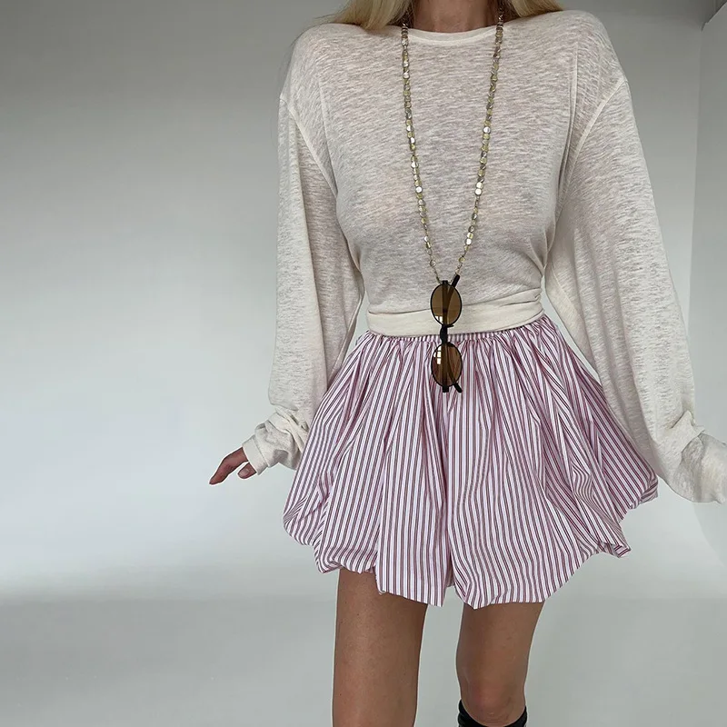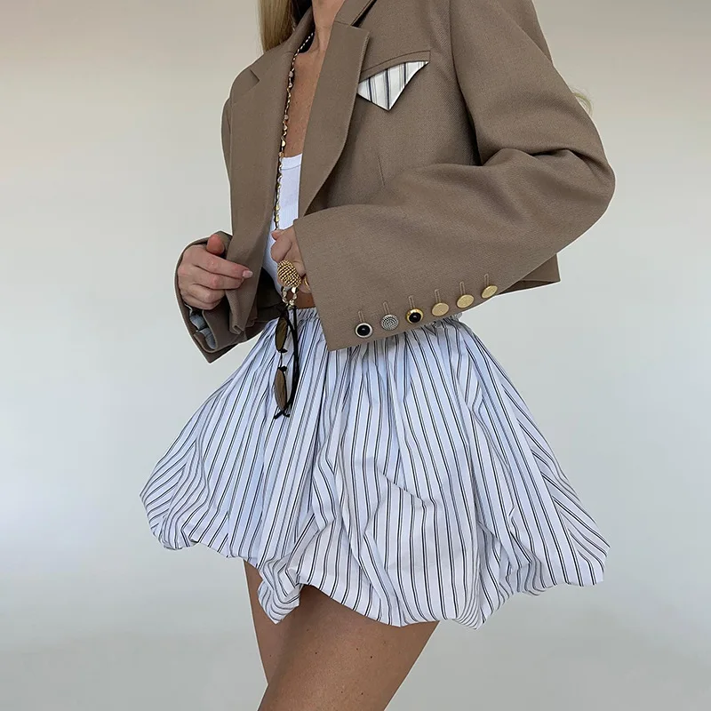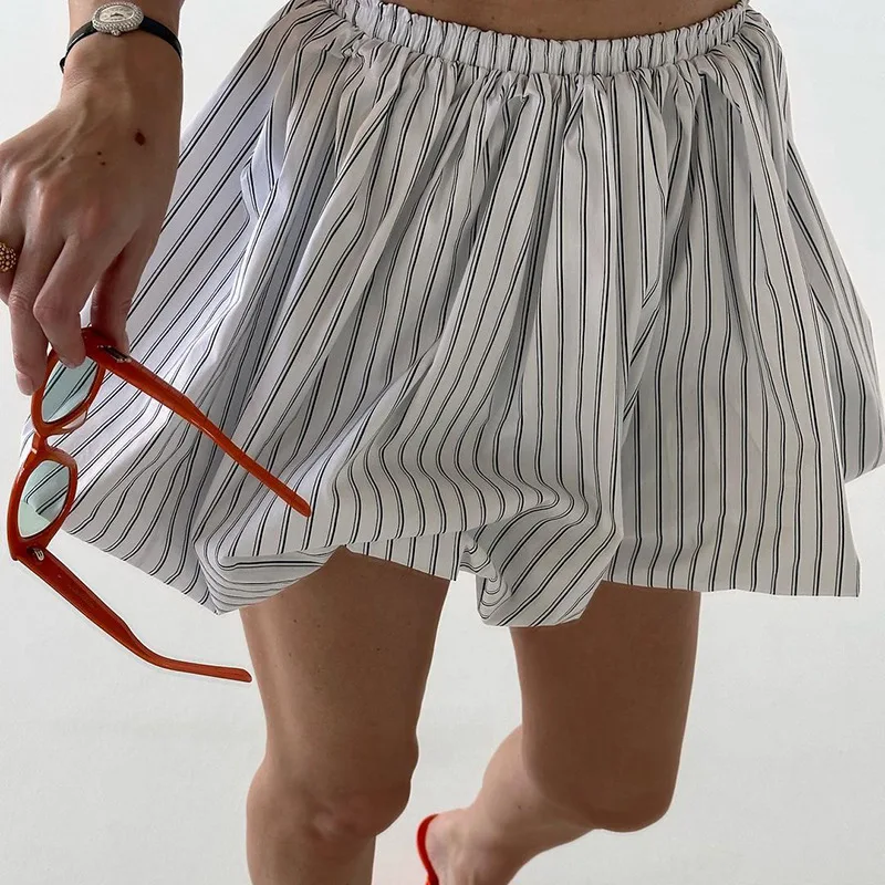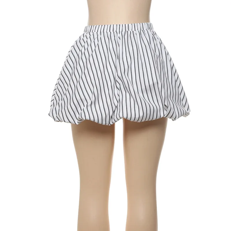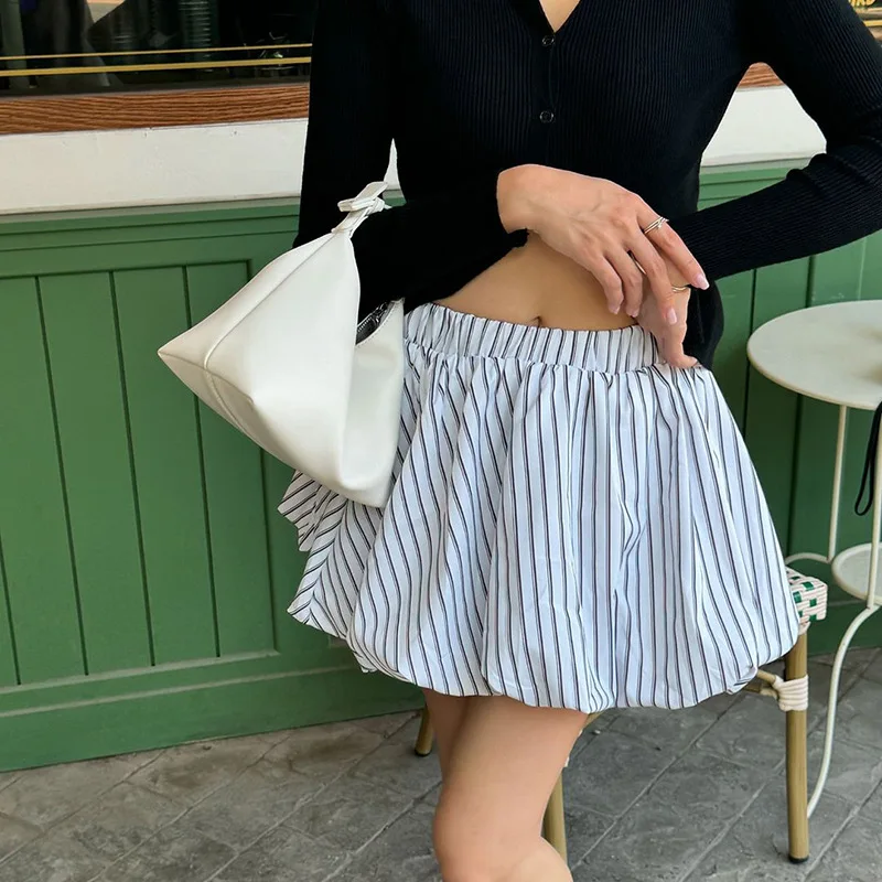 Kylethomasw - Stripe Fluffy High Waisted Skirt For Women Autumn New Irregular A-Line Ruched Waist Cinching Bud Mini Skirt Sweet Street