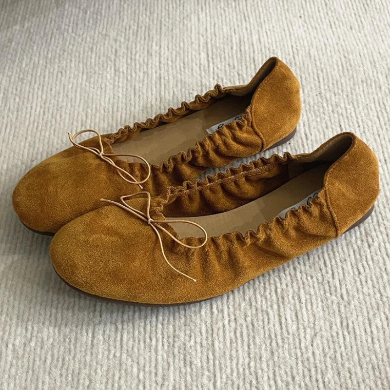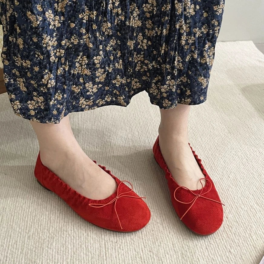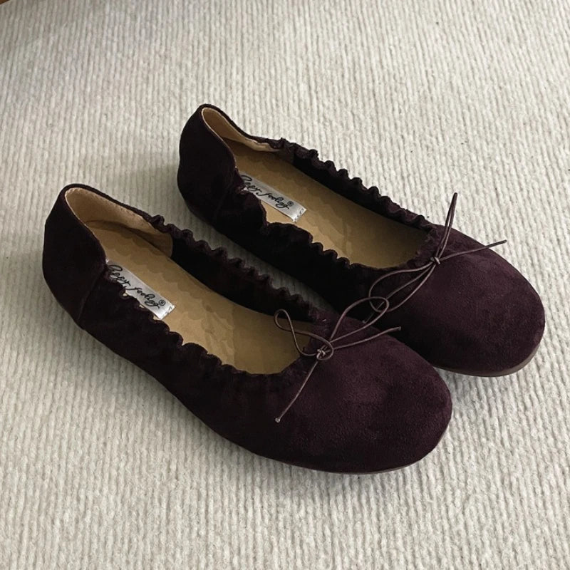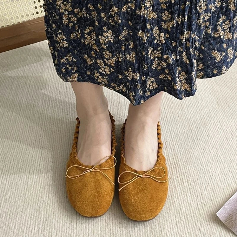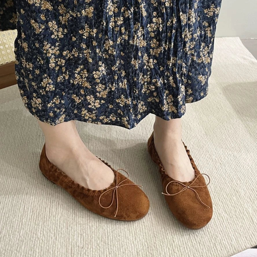 KYLETHOMASW - Suede Retro Bowknot Round Toe Flat Shoes Women Soft Sole Comfort Casual Shoes for Women Shallow Ballet Style Footwear Female