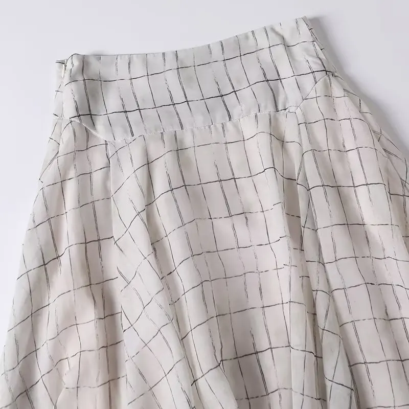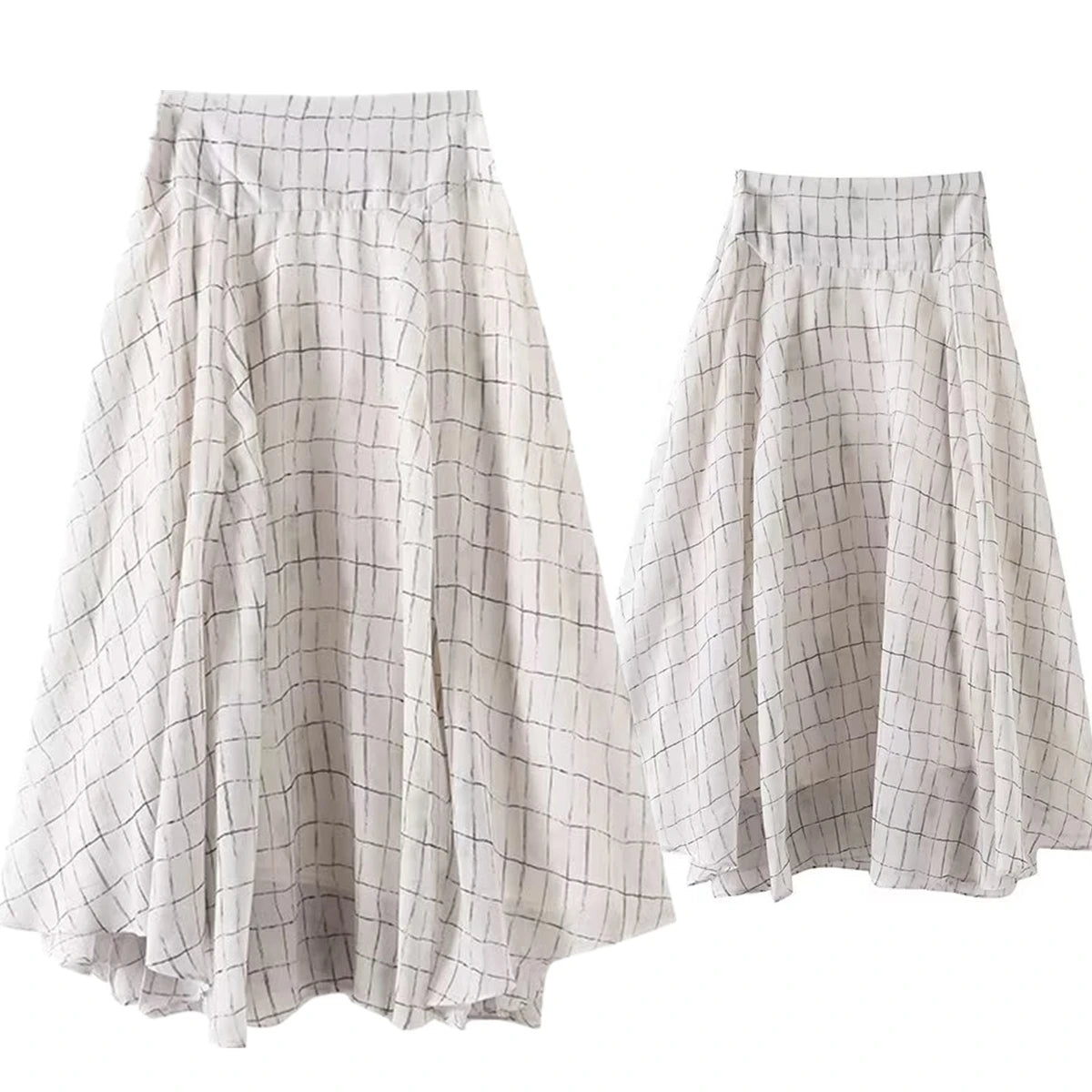 KYLETHOMASW  -  Summer Clothing French Lazy Country Style Irregular Hem Skirt Minimalist Fashion Elegant Plaid Flowing Skirt For Women
