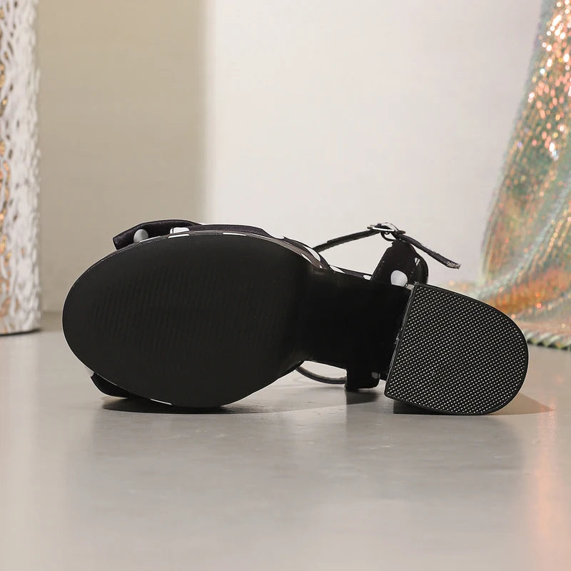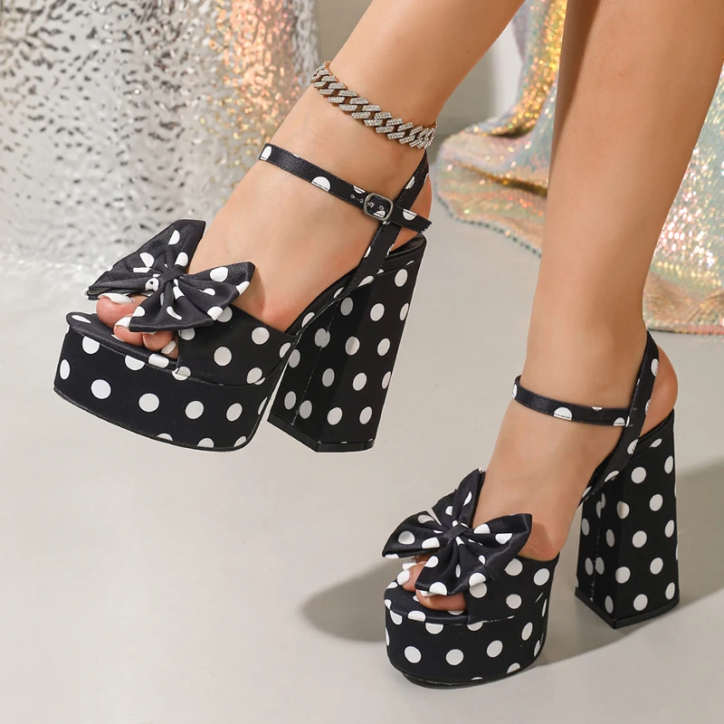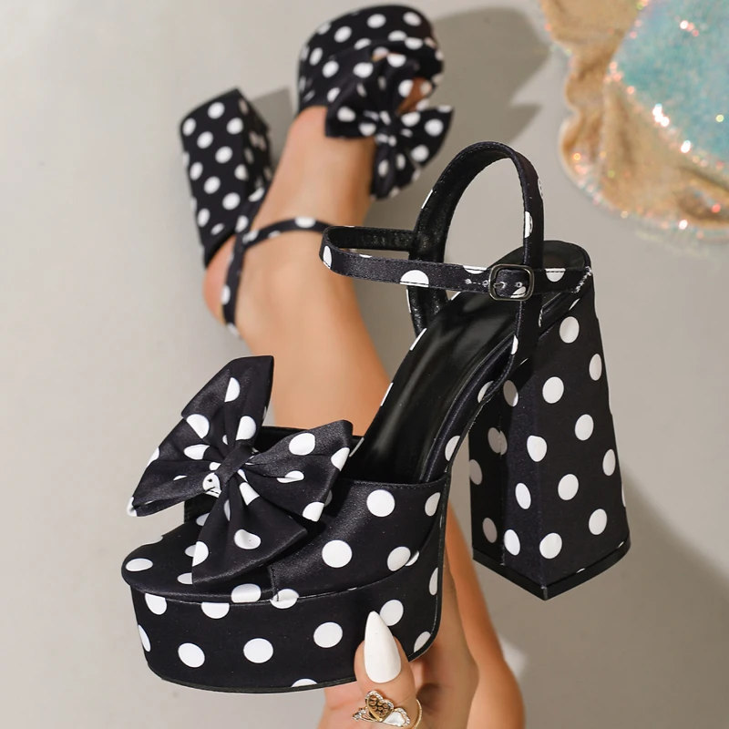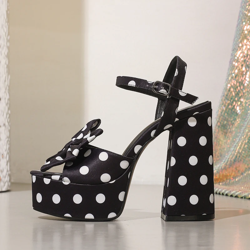 KYLETHOMASW - Summer Fashion Platform Open Toe Buckle Strap Women Sandals Designer Polka Dot Butterfly-knot Square High Heels Shoes