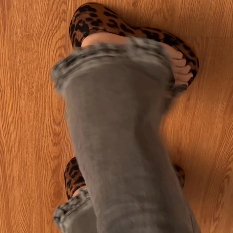 KYLETHOMASW - Summer Leopard Women Wedges Heel Slippers Fashion Clip Toe Dress Slide Shoes Thick Bottom Flip Flop