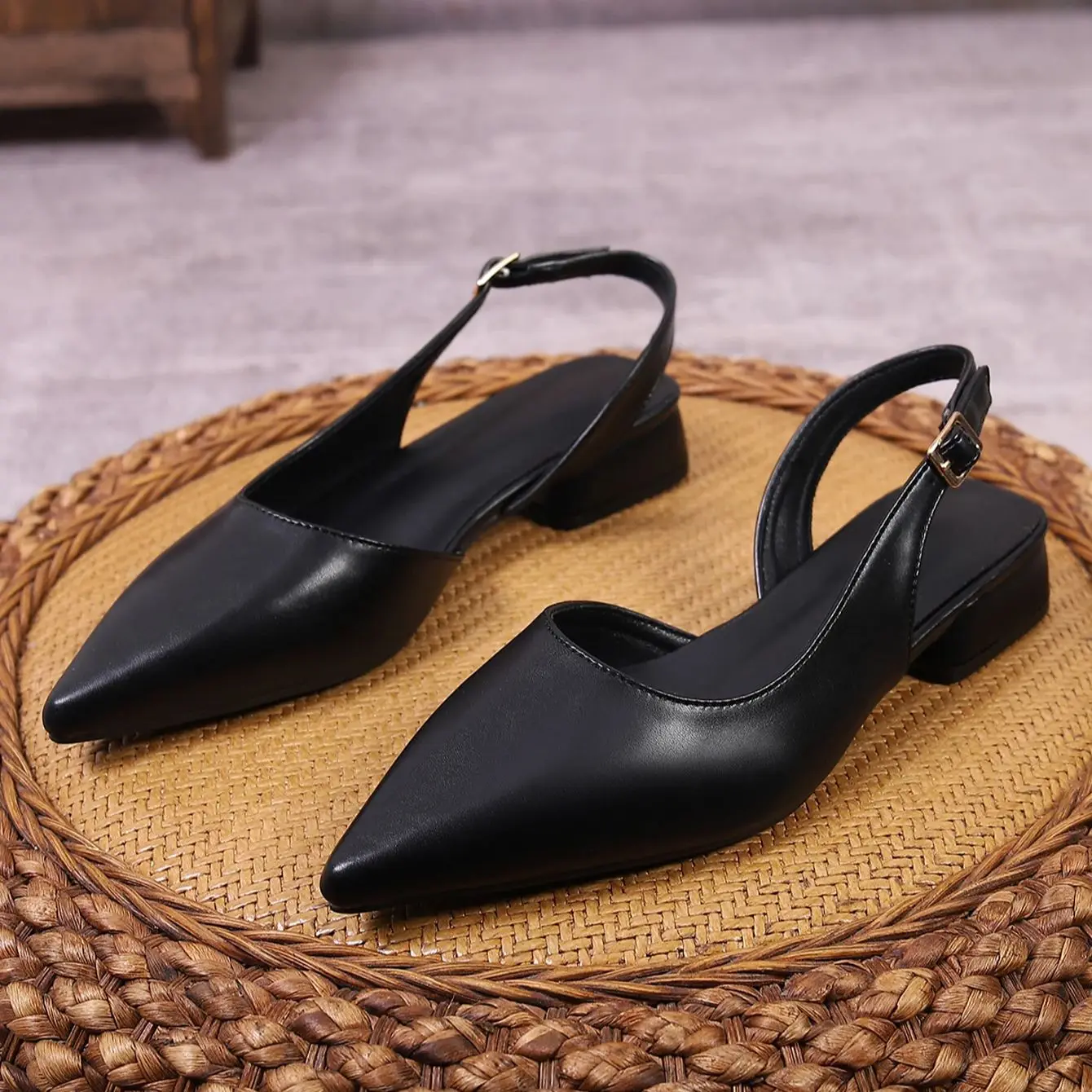 KYLETHOMASW - Summer New Brand Women Slingback Shoes Pointed Toe Shallow Slip On Ladies Mules Shoes Flat Heel Casual Lady Vacation Slide