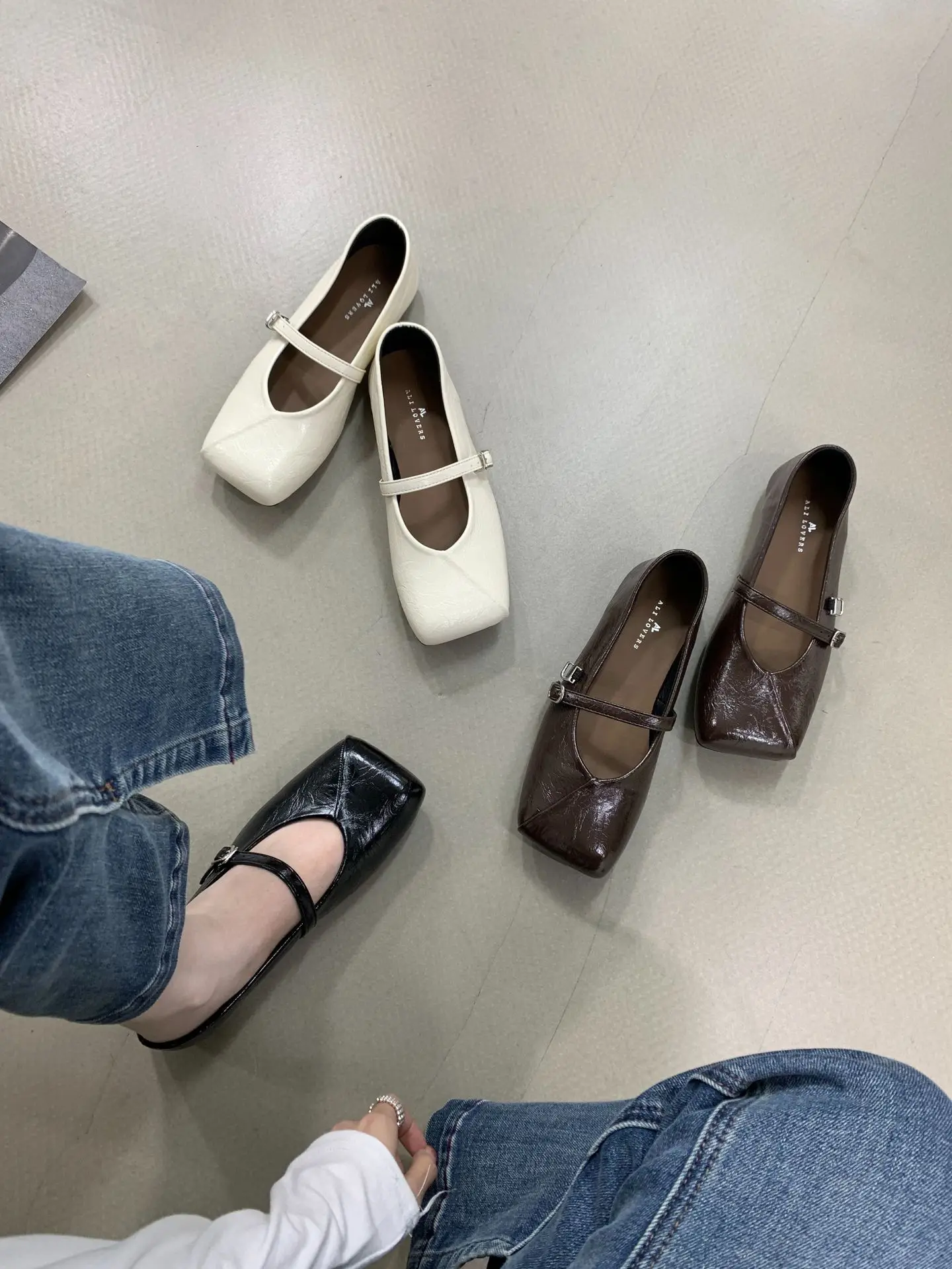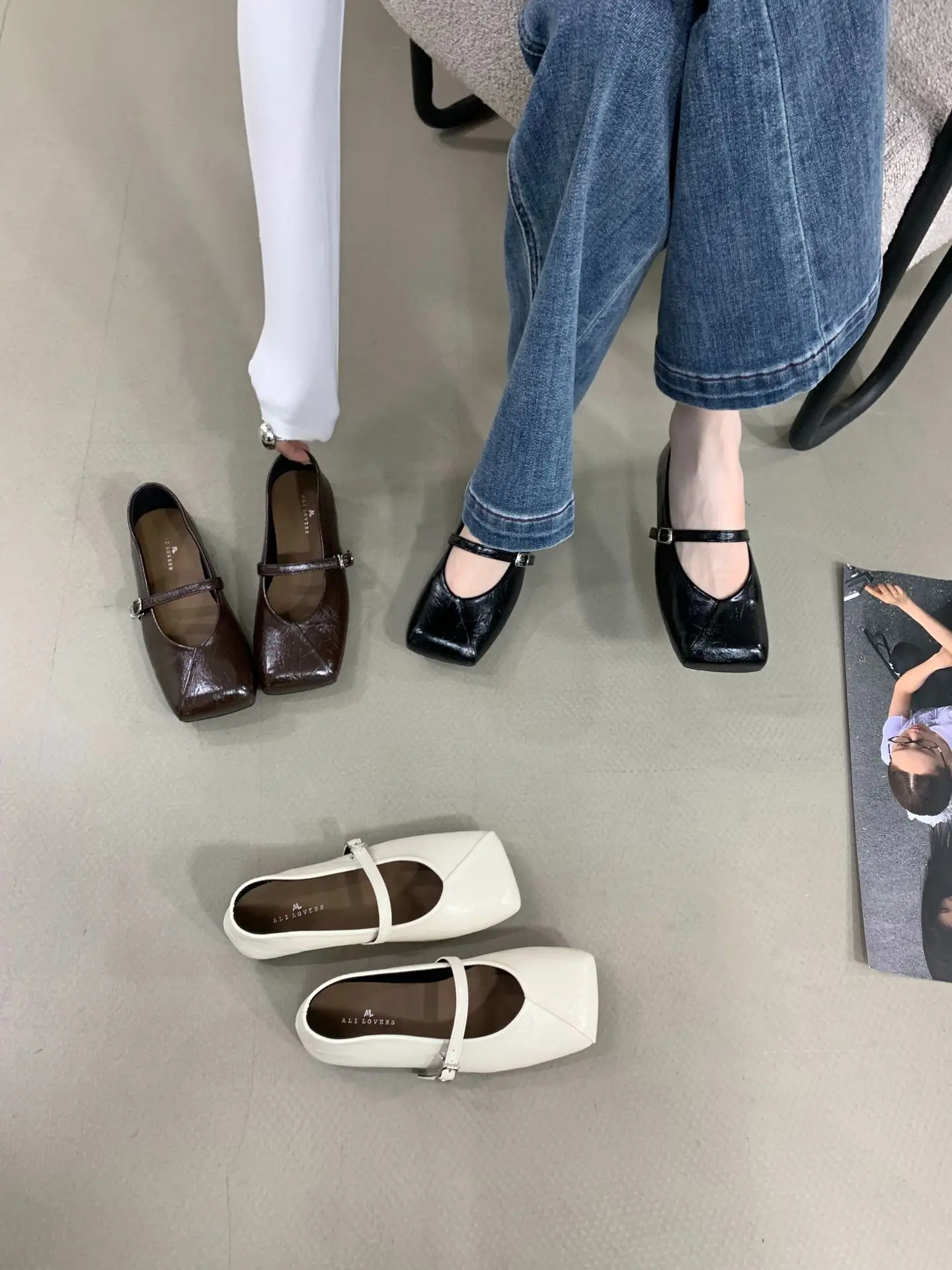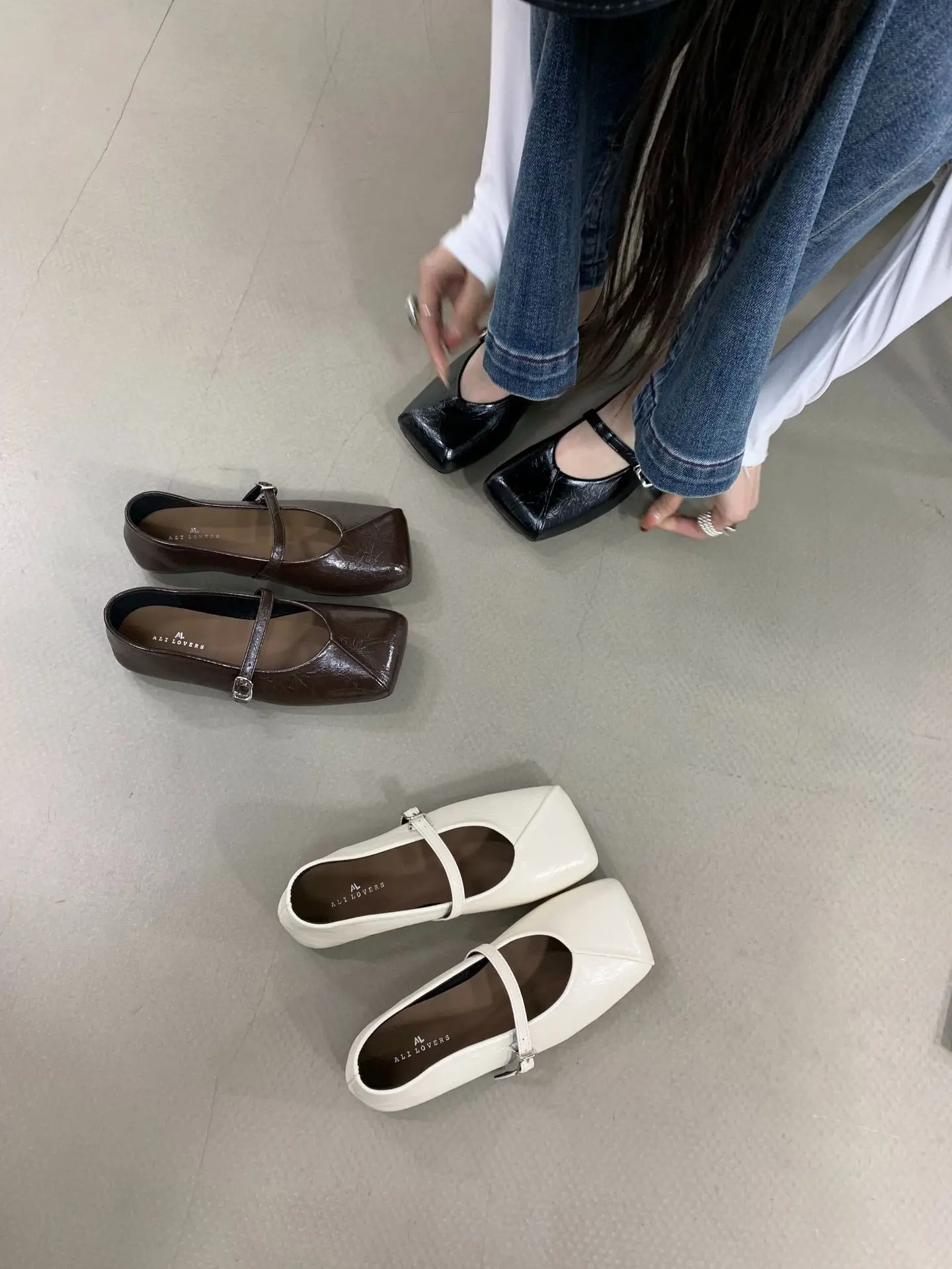 KYLETHOMASW - Summer Shoes Ladies Low Heels Square Toe Shallow Mouth Female Footwear Oxfords Women's Modis 2025 Dress Leather New Cute Rubber