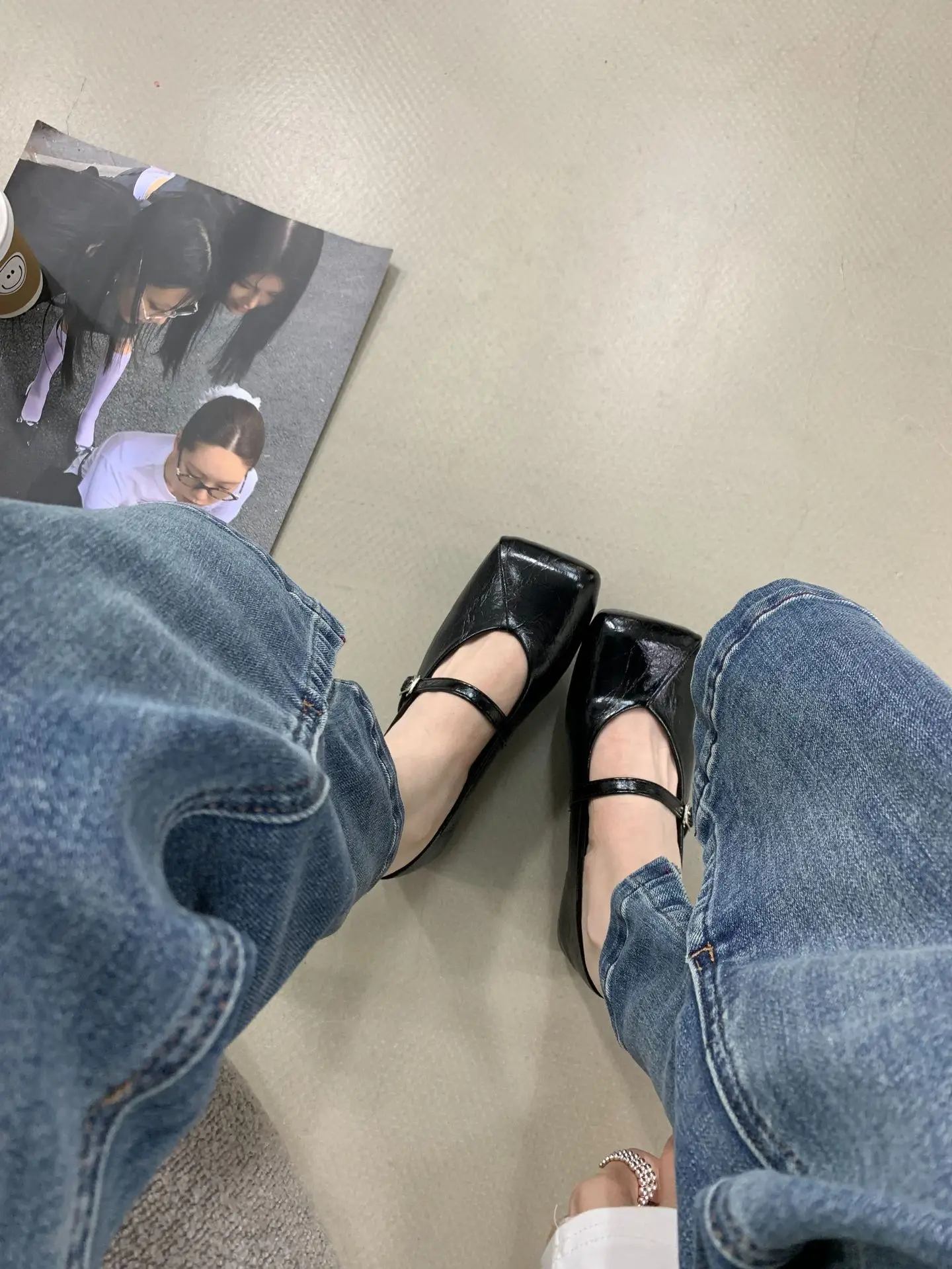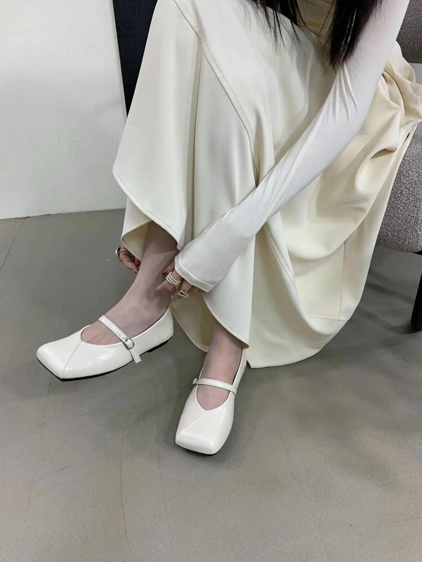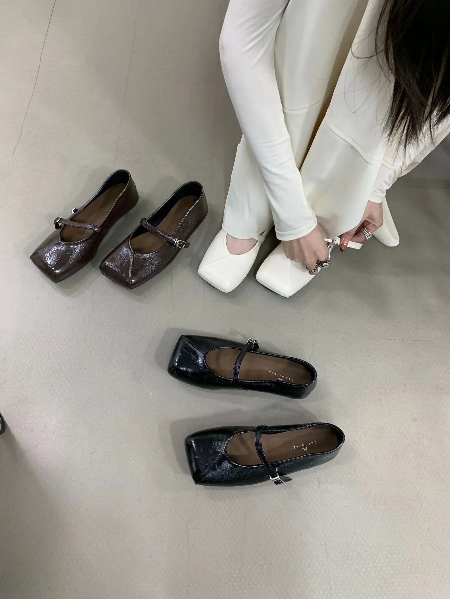 KYLETHOMASW - Summer Shoes Ladies Low Heels Square Toe Shallow Mouth Female Footwear Oxfords Women's Modis 2025 Dress Leather New Cute Rubber