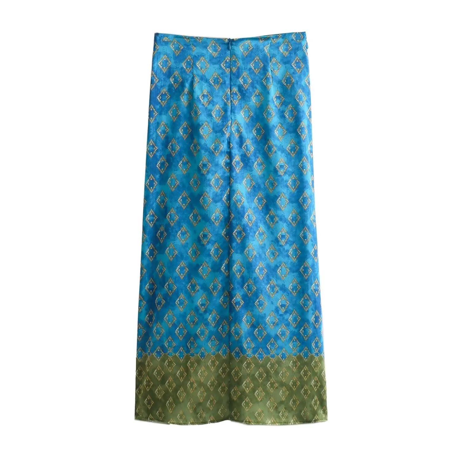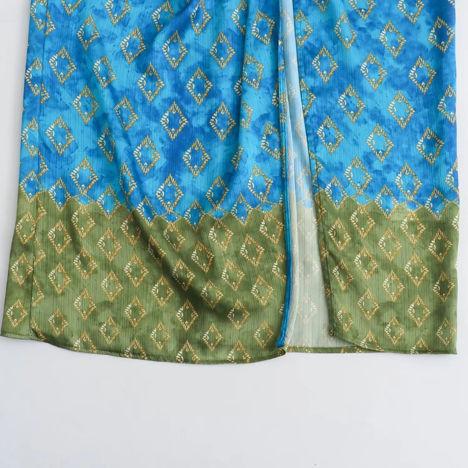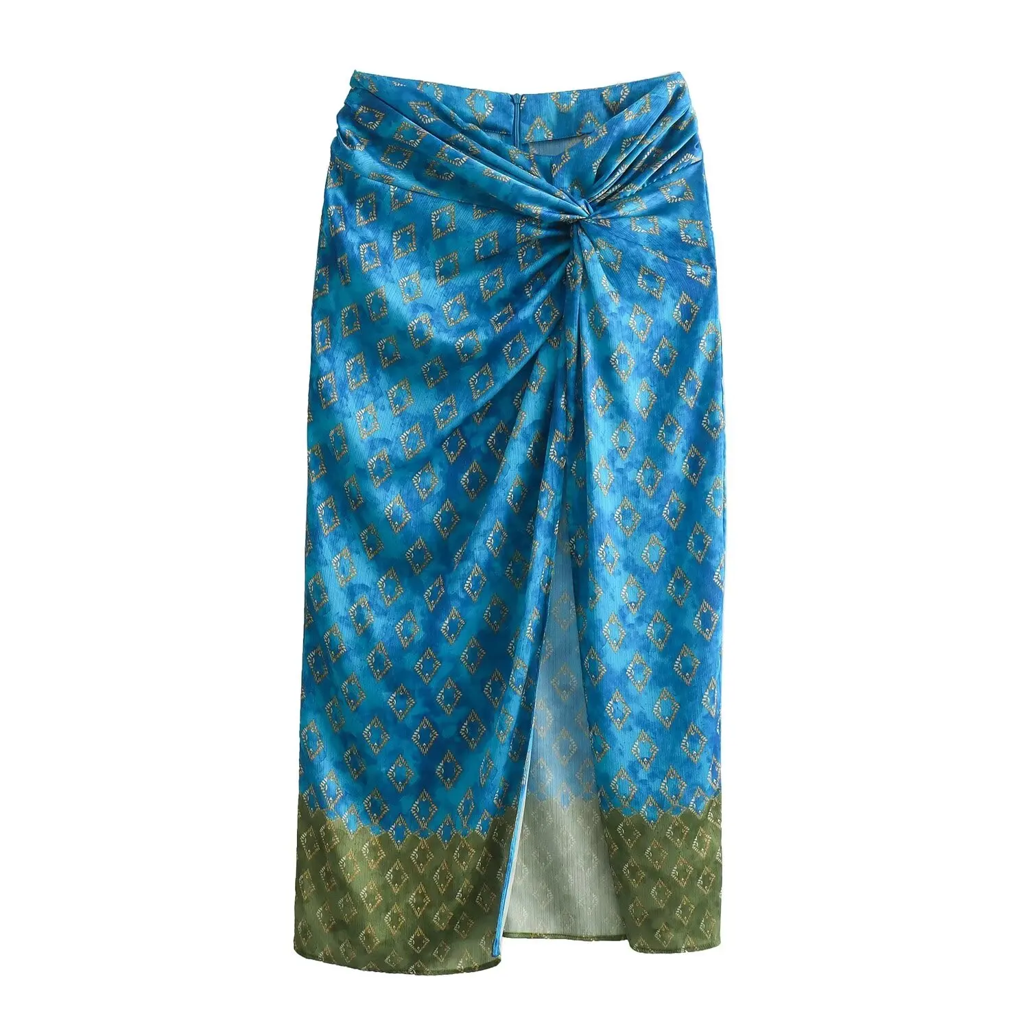 Kylethomasw Summer Vintage Long Skirt for Woman Trendy Printed High Waist Ruched High Slit Dresses Female Boho Slim Fit Midi Skirts