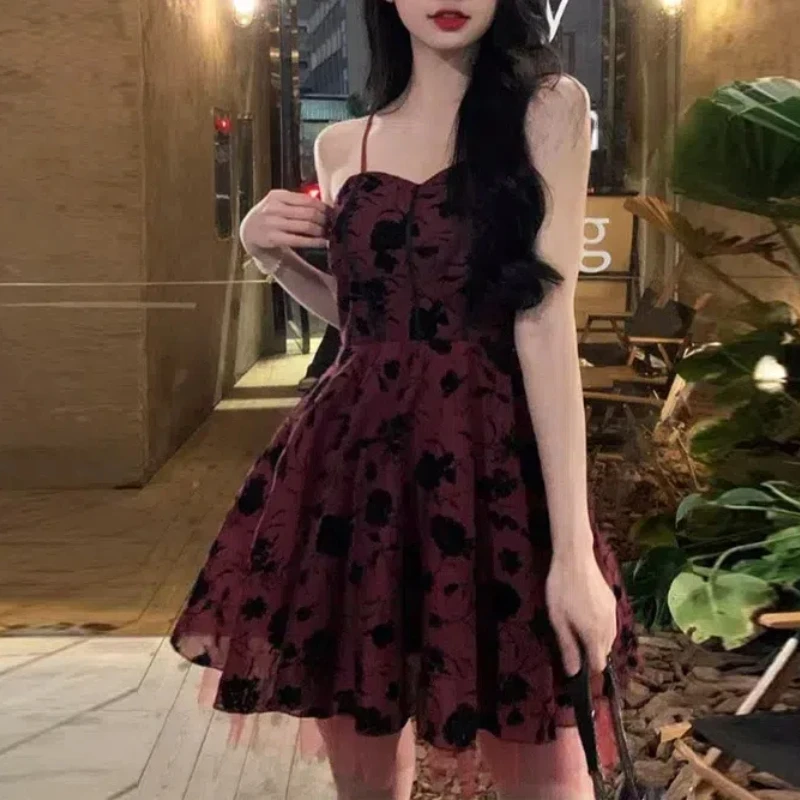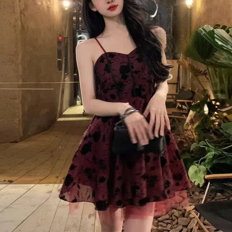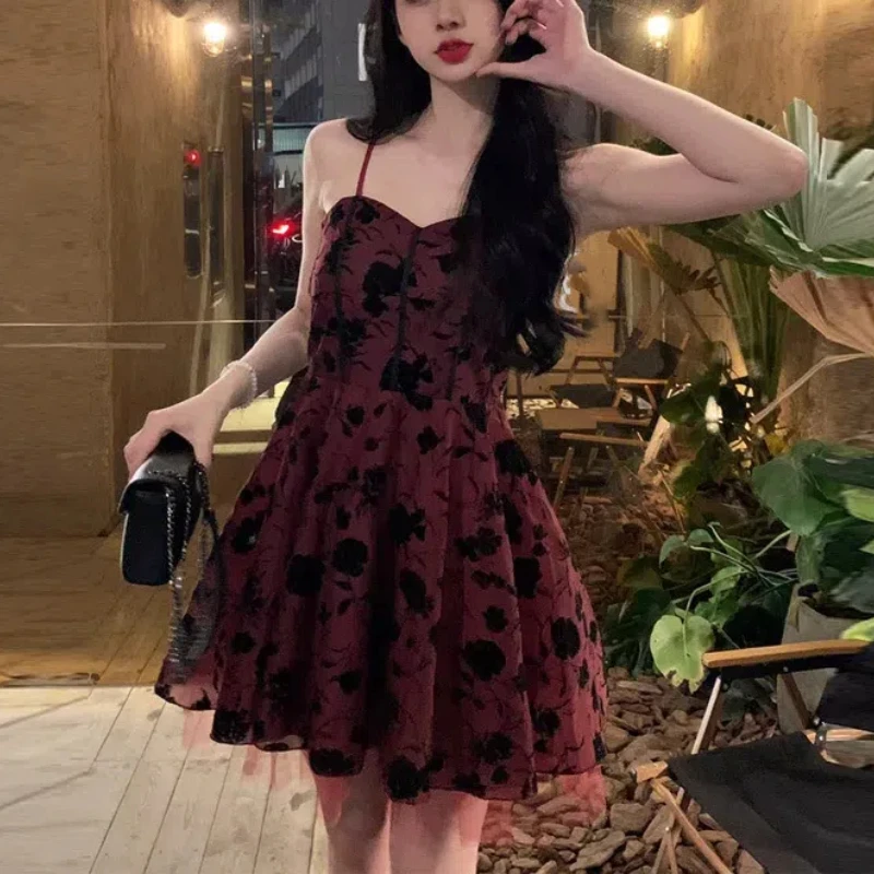 KYLETHOMASW - Summer Women's Clothing Camisole Gauze Pullover Plant&Flowers Printing Sleeveless Casual Sexy All-match Knee Skirts Dresses