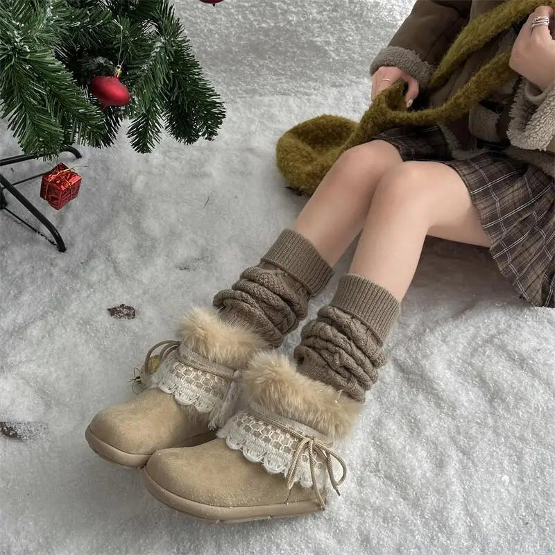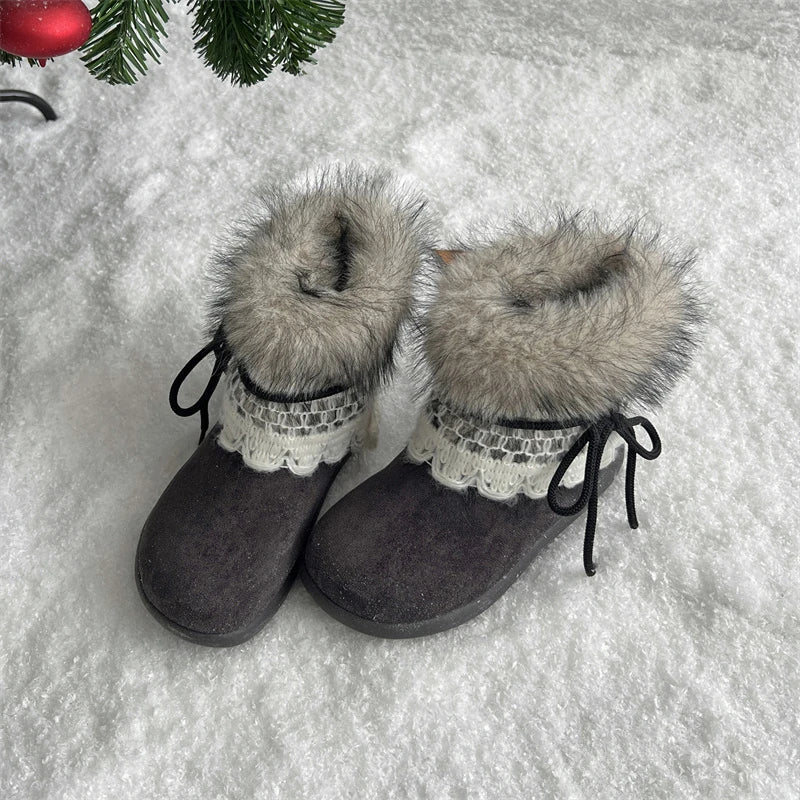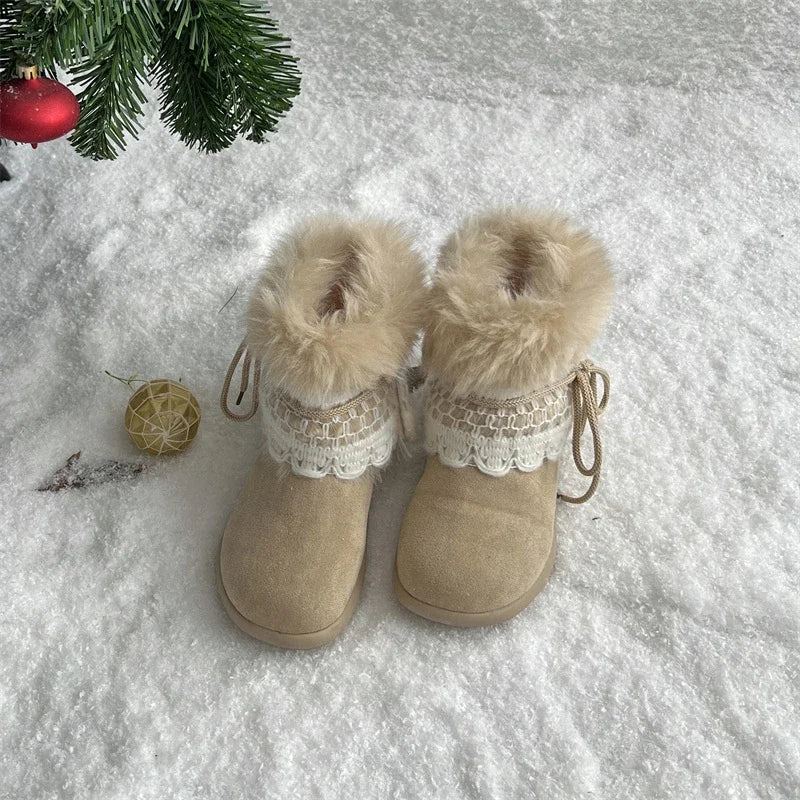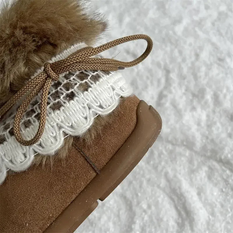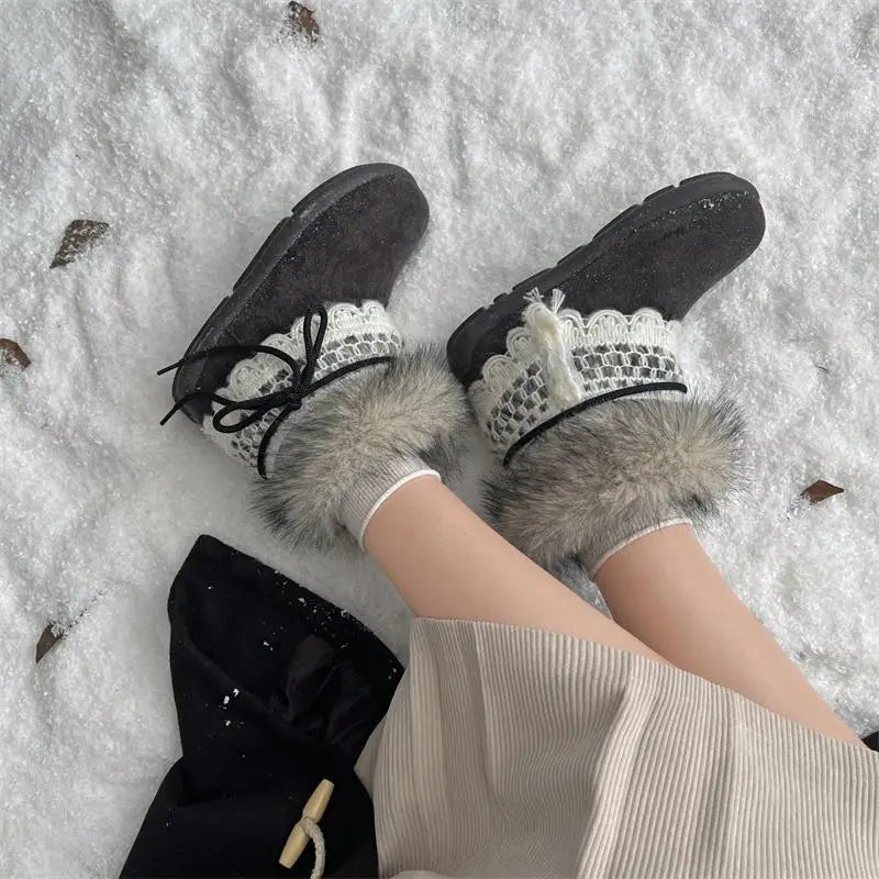 KYLETHOMASW - Sweet Lace Decoration Furry Suede Snow Boots Women 2025 Winter Thick Bottom Fluffy Fur Ankle Boots Warm Plush Designer Shoes