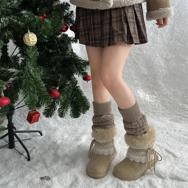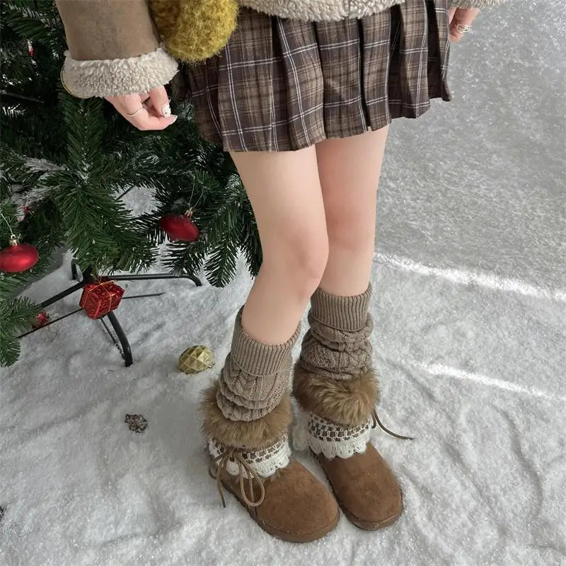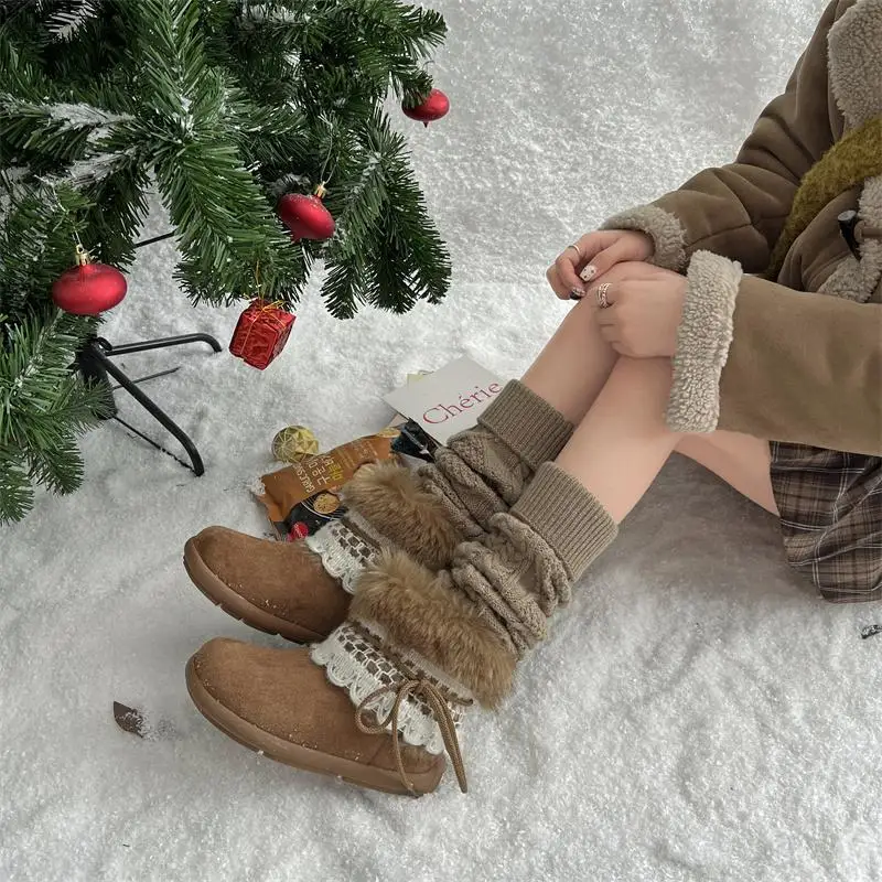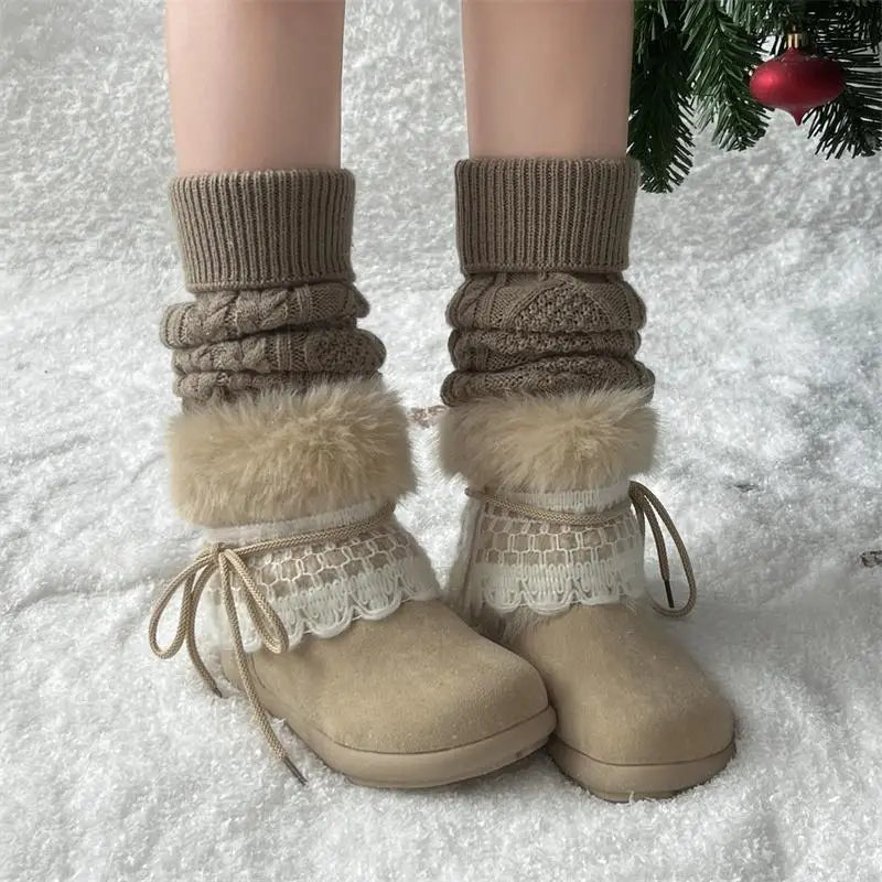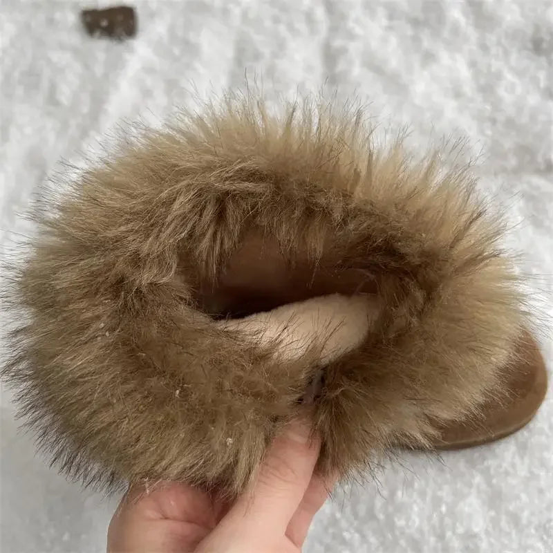 KYLETHOMASW - Sweet Lace Decoration Furry Suede Snow Boots Women 2025 Winter Thick Bottom Fluffy Fur Ankle Boots Warm Plush Designer Shoes