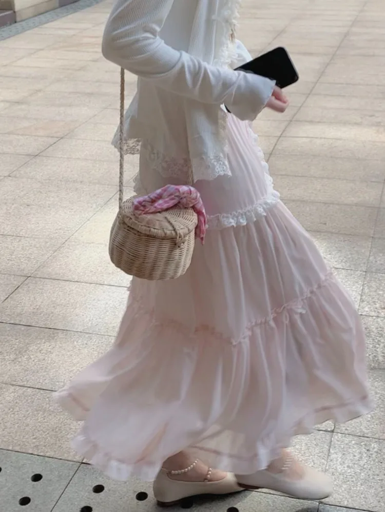 KYLETHOMASW - Sweet Skirts Women Bowknot Lace Patchwork Stretch High Waist Spring 2025 Fashion Elegant Long Skirt Female Casual