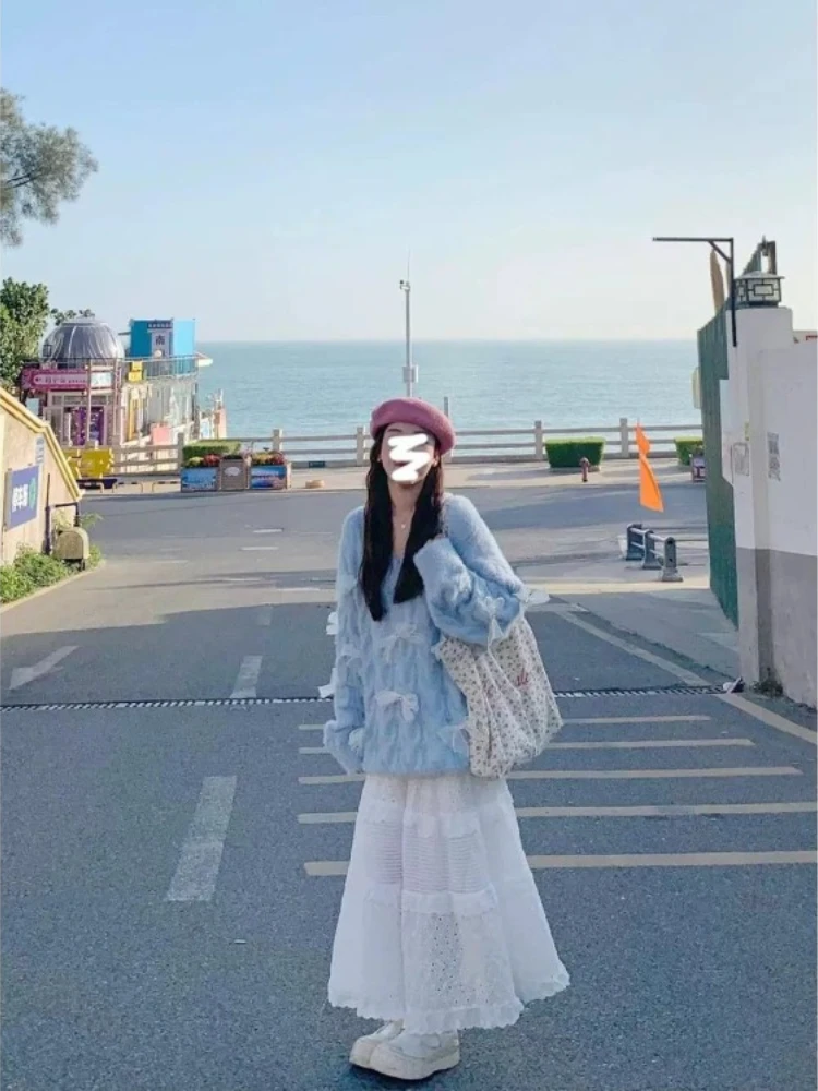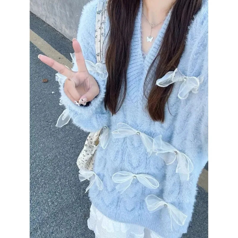 KYLETHOMASW - Sweet Sweater Women Bow Autumn Winter Loose Fashion Long Sleeve Pullover Knitwear Female Casual Jumper Tops Elegant