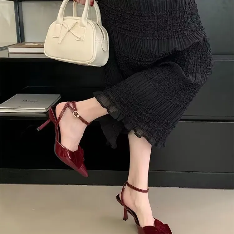 KYLETHOMASW - Sweet Velvet Leather Ankle Strap Buckle Women's Sandals 2025 Summer Heels Diagonal Heels Sandals Shoes for Women