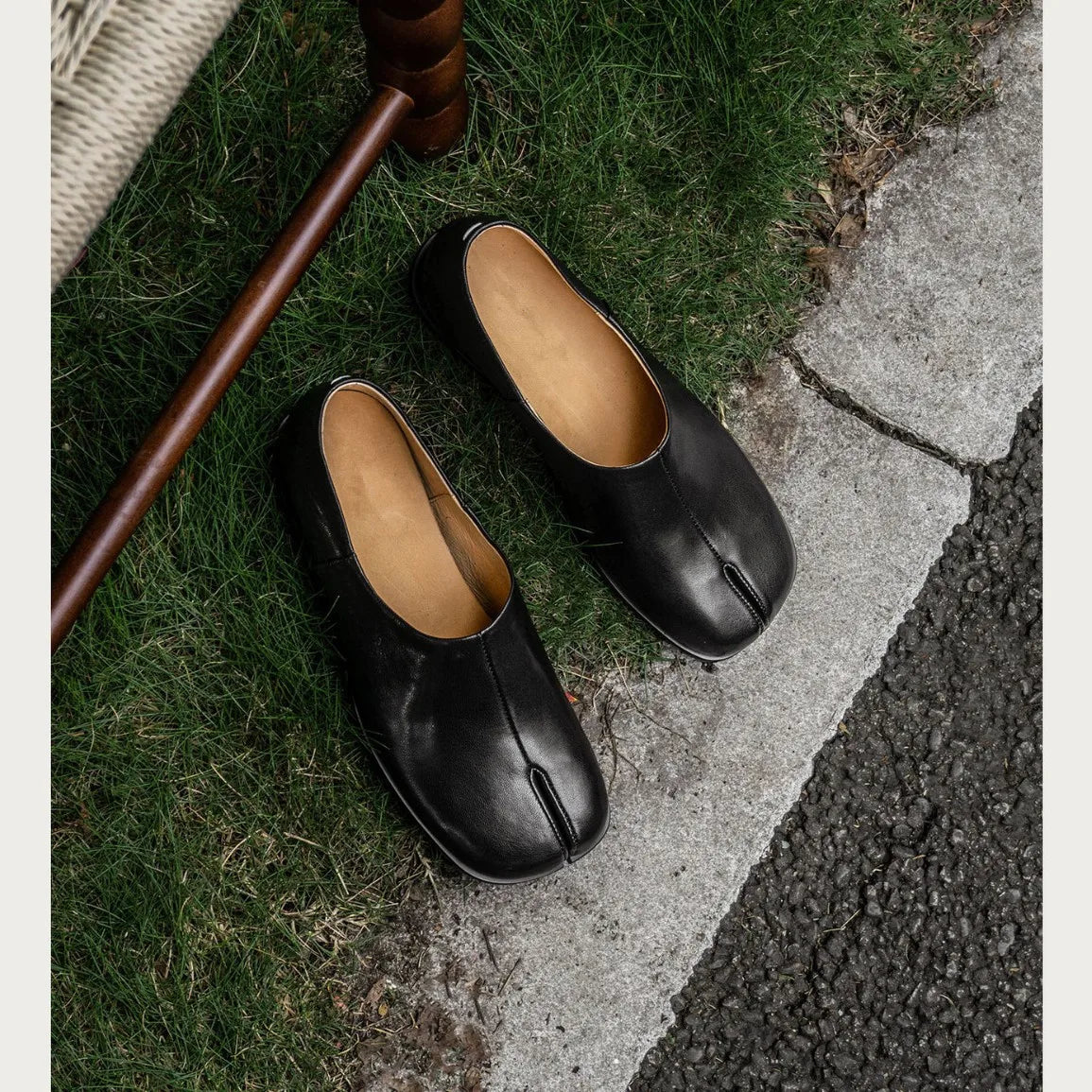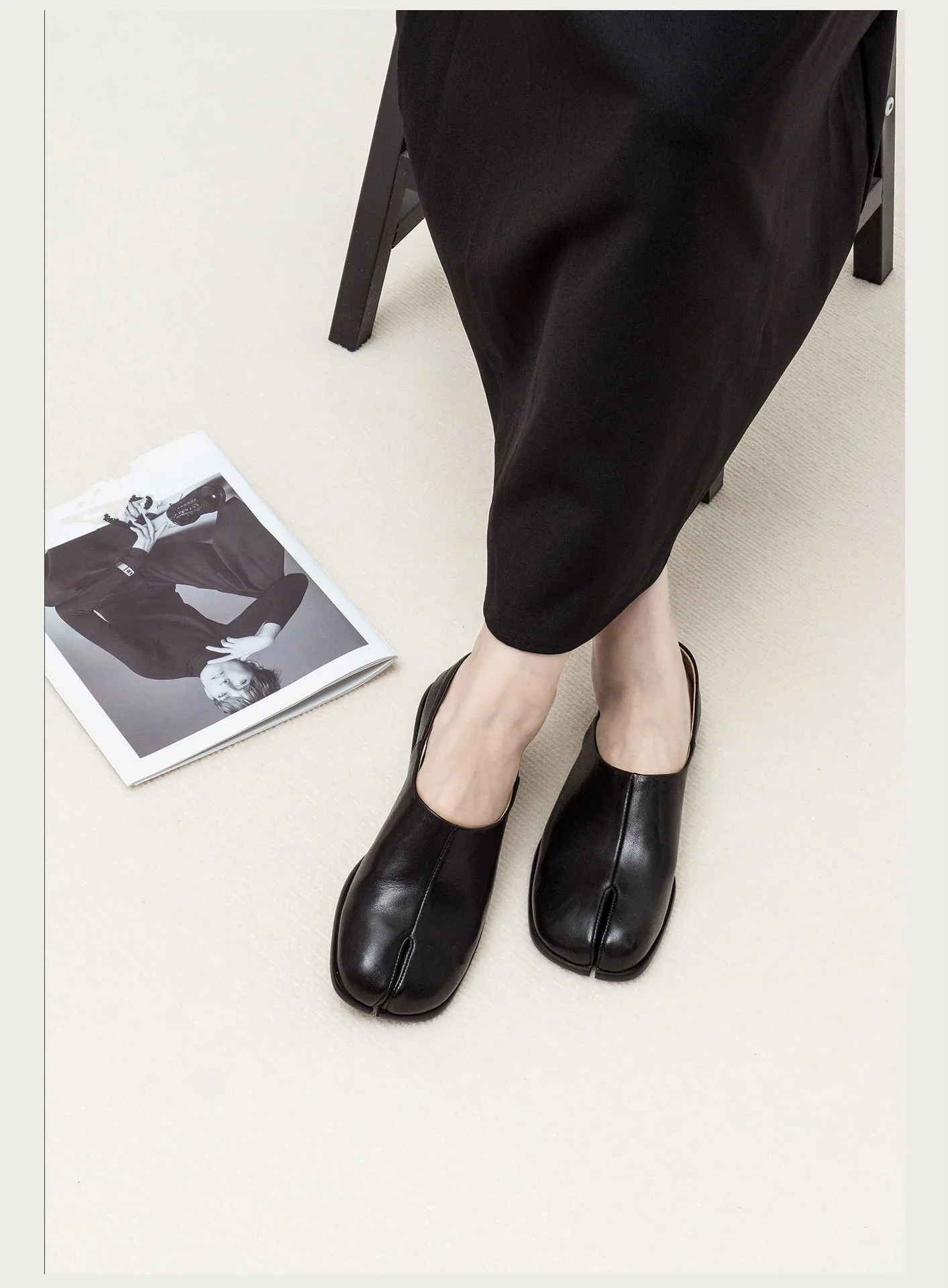 KYLETHOMASW - Tabi Shoes New Ladies Style Split Toe Flat Shoes Genuine Leather Designer Style Fashionable Loafers Women's Casual Shoes