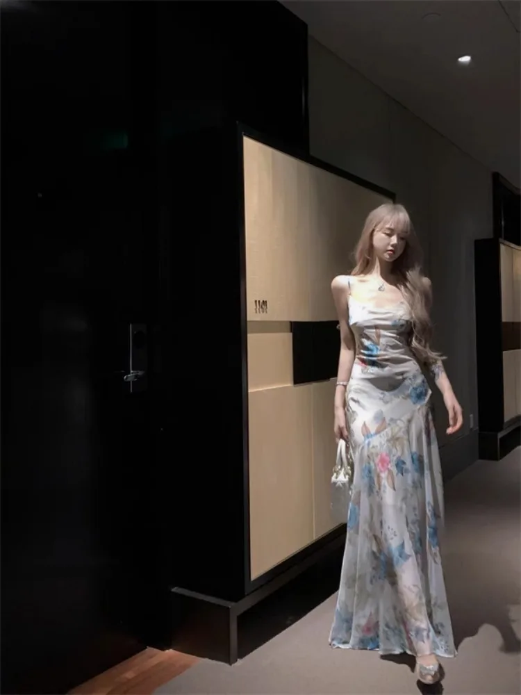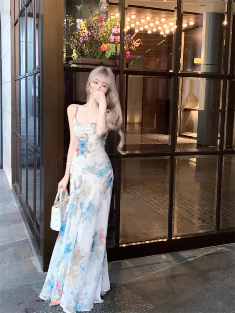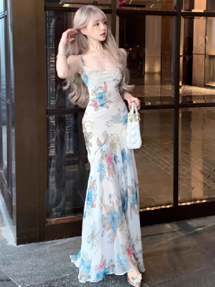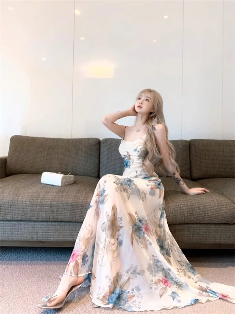 KYLETHOMASW - Temperament Dresses Women Sexy Floral Printed Fashion Sleeveless Slim Vintage Elegant Party Dress Elegant Ladies Backless
