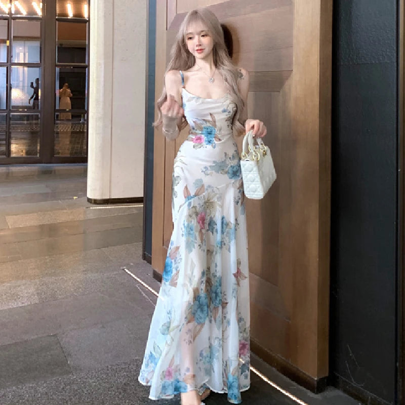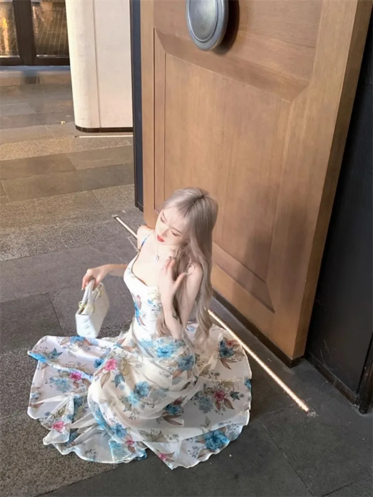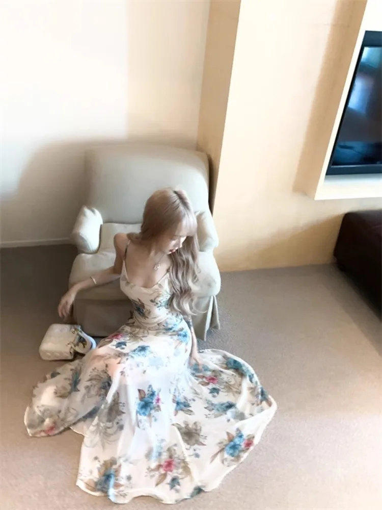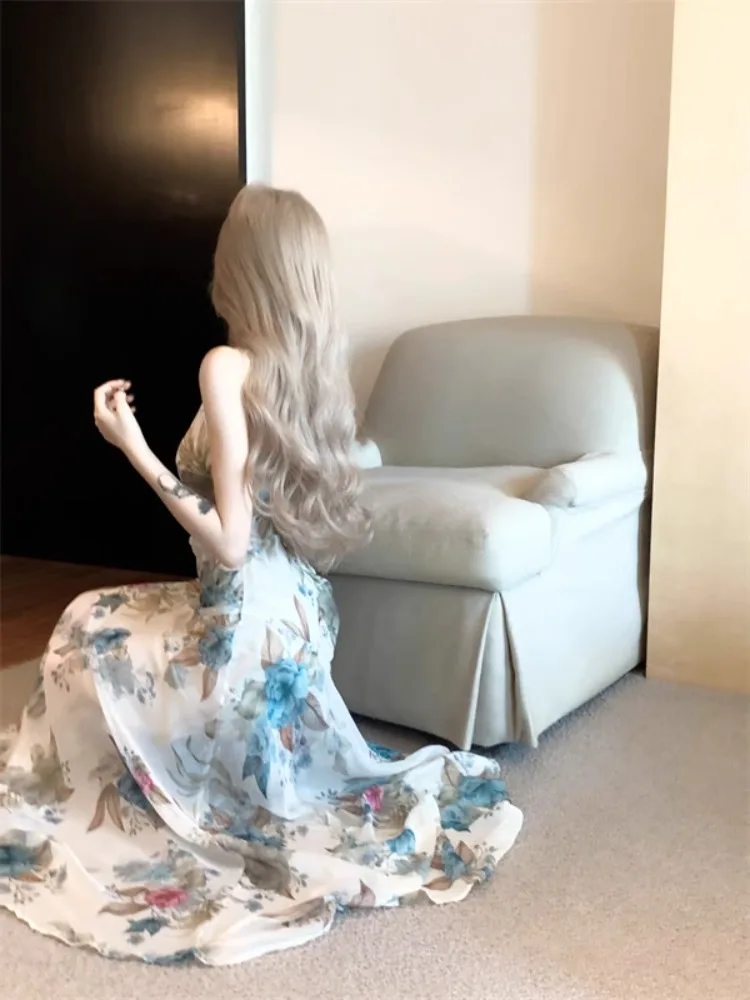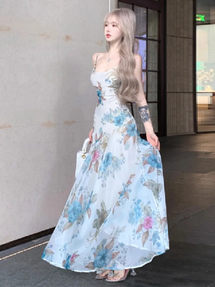 KYLETHOMASW - Temperament Dresses Women Sexy Floral Printed Fashion Sleeveless Slim Vintage Elegant Party Dress Elegant Ladies Backless