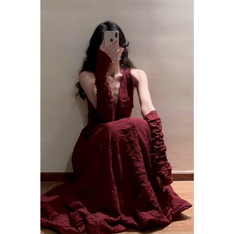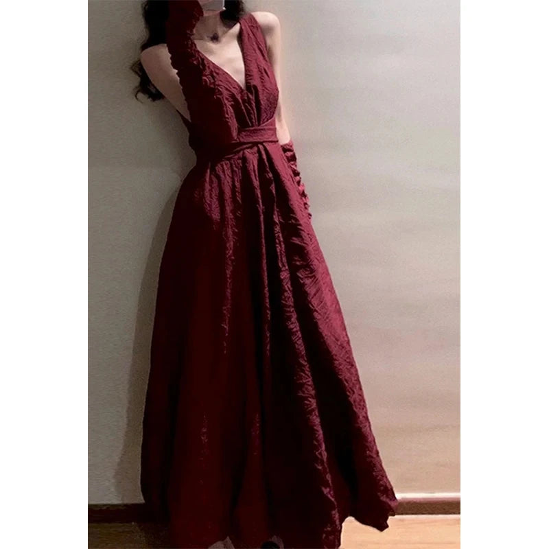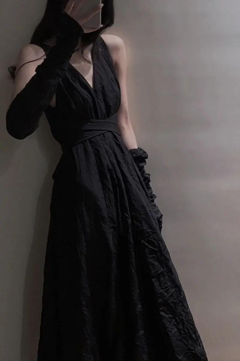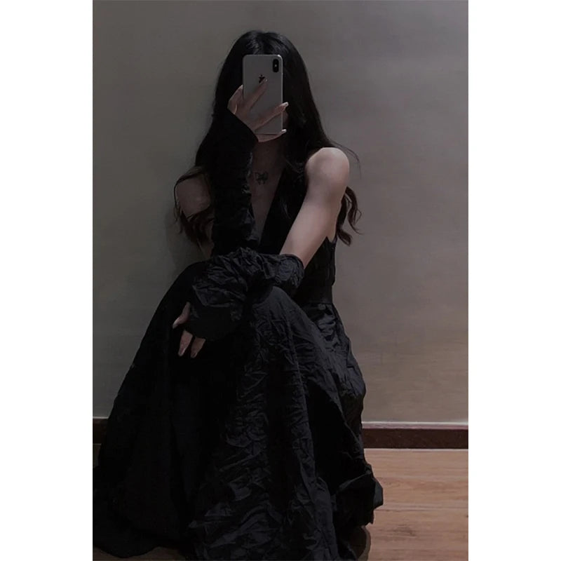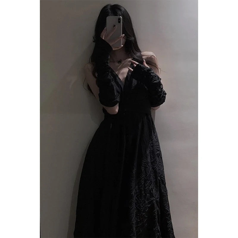 KYLETHOMASW - Vintage Black Midi Dress Women Elegant Party V Neck Dresses Summer Korean Sexy Spaghetti Strap Lace Up Bodycon Vestidos