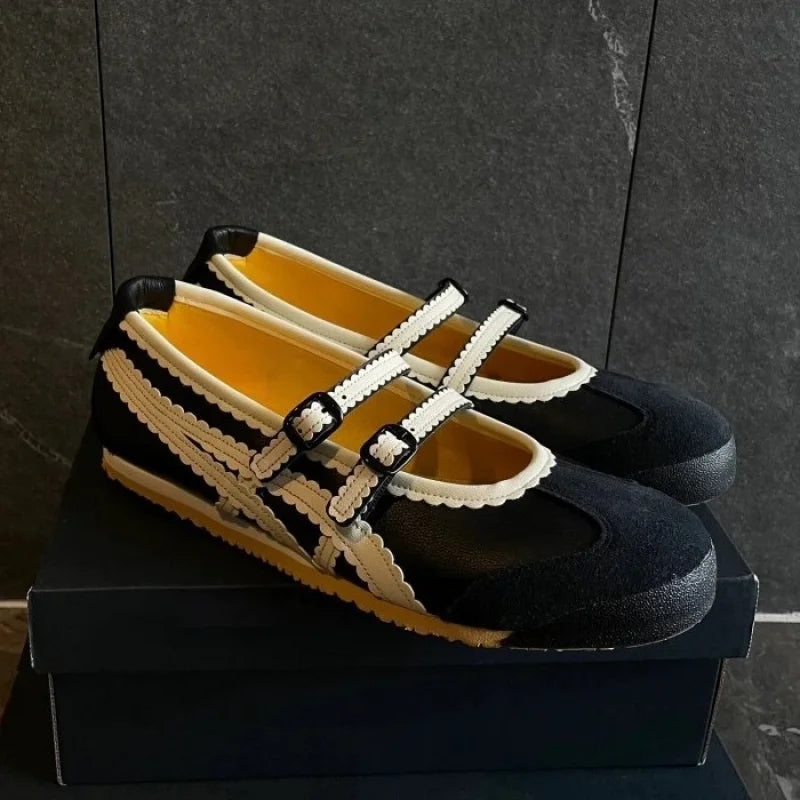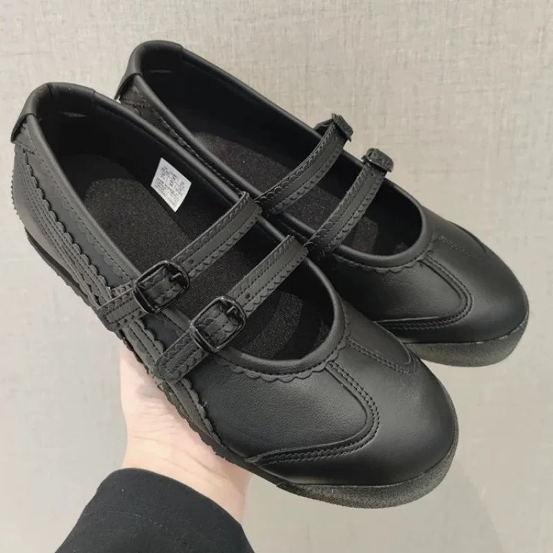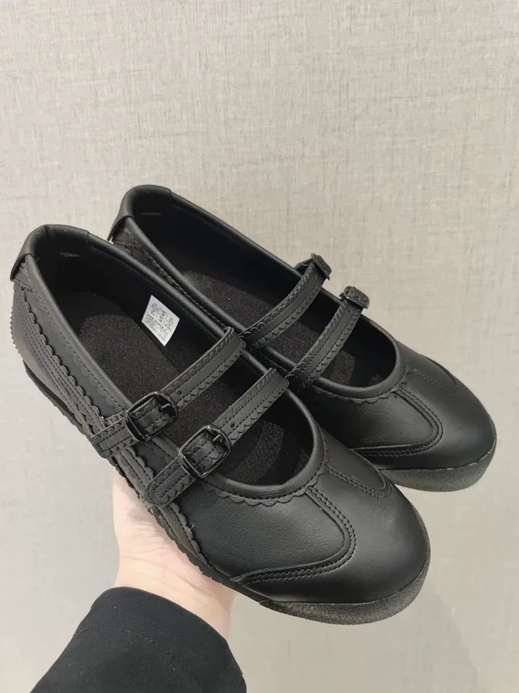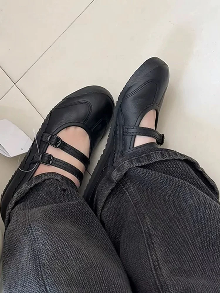 KYLETHOMASW - Vintage Round Toe Shallow Mouth Velcro Sports Flat Ballet Shoes Women Mary Jane Shoes German Training Shoes