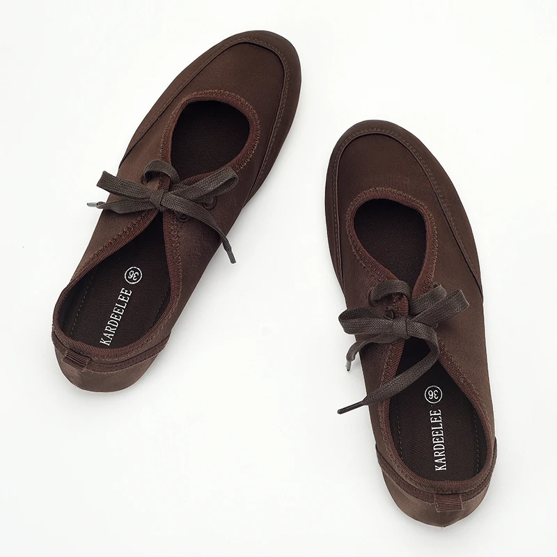 KYLETHOMASW  -  Walking Ballet Flats for Women Comfortable Shoes Casual Streetwear Lace Up Soft Cloth Shoes Ladies Spring Autumn Chic Loafers