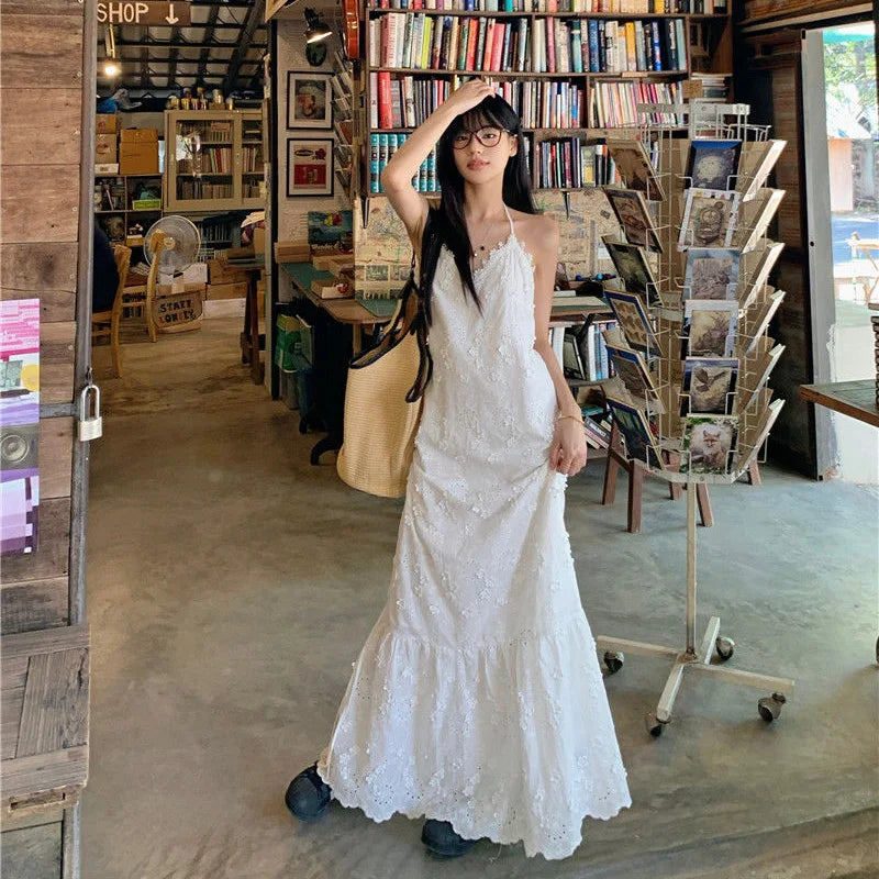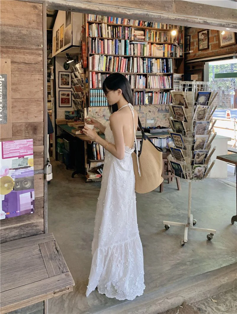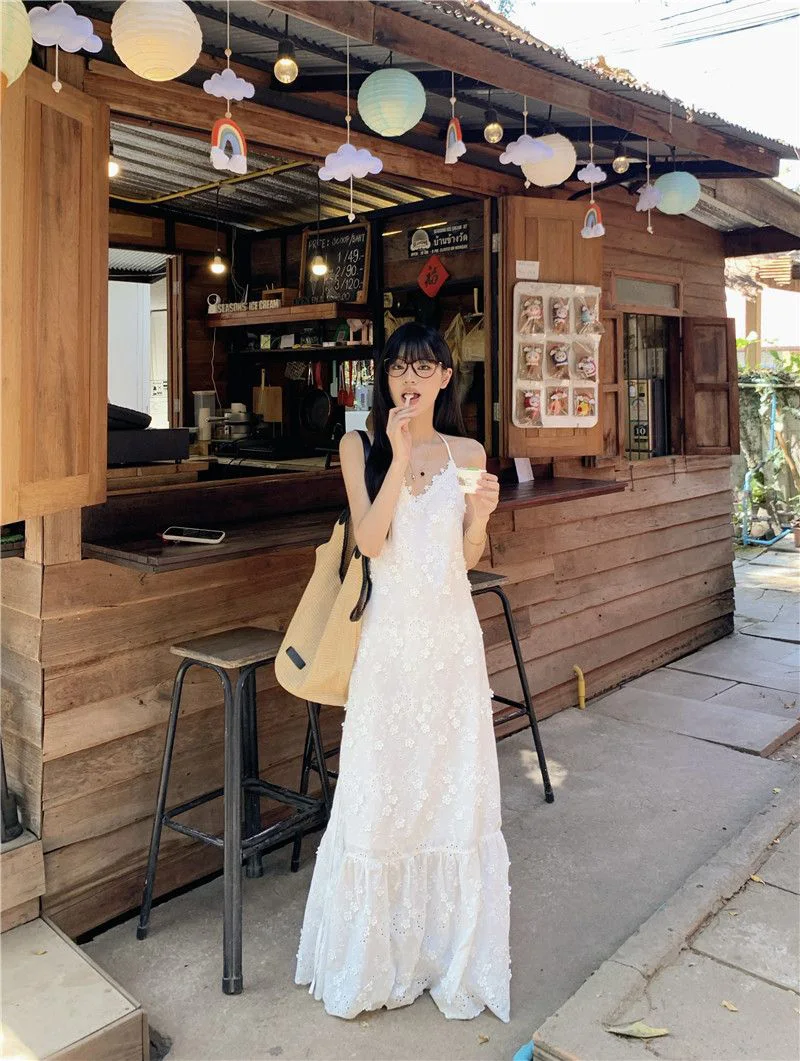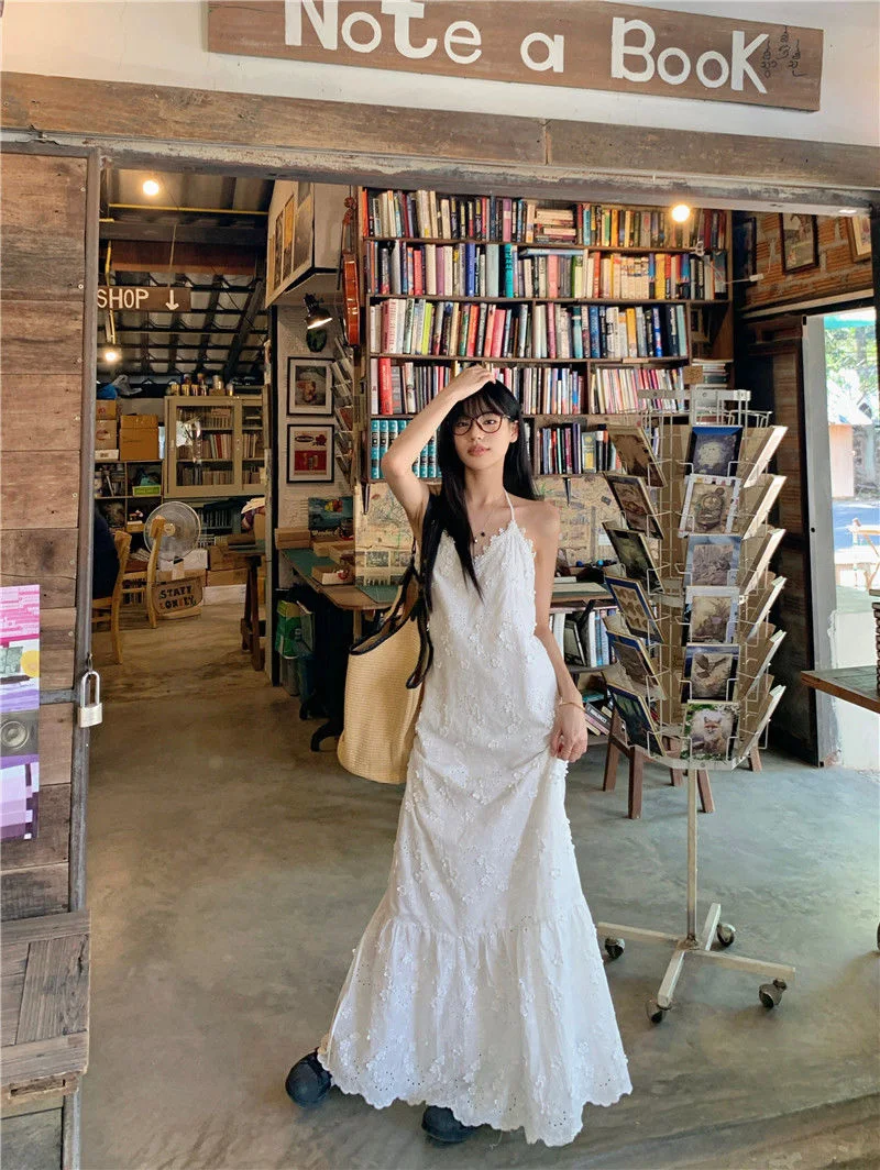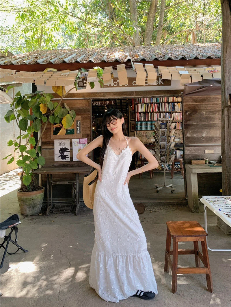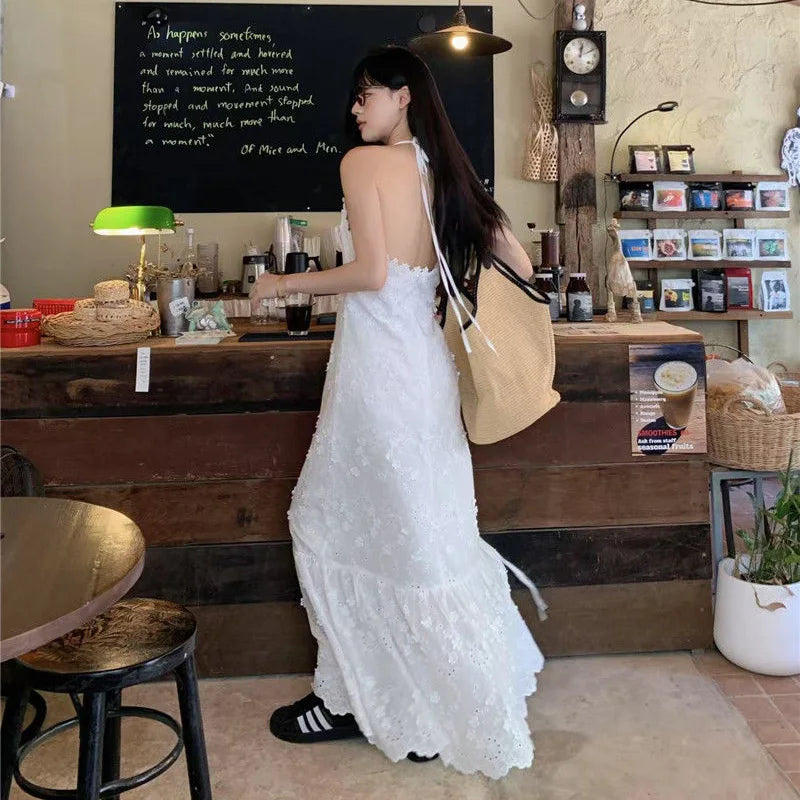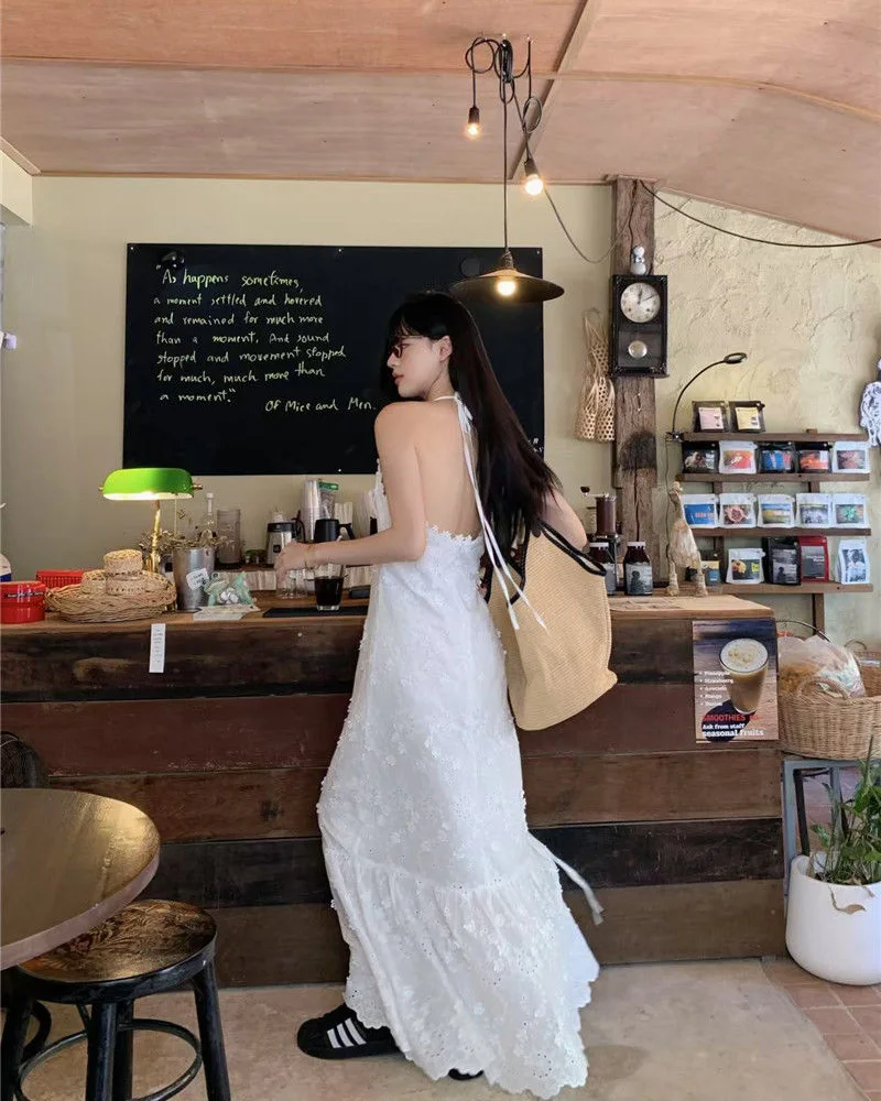 KYLETHOMASW  -  White Lace Camis Dress Women Summer Beach Vacation Backless A Line Dress Korean Fashion Harajuku Sexy Neck Mounted Vestidos New