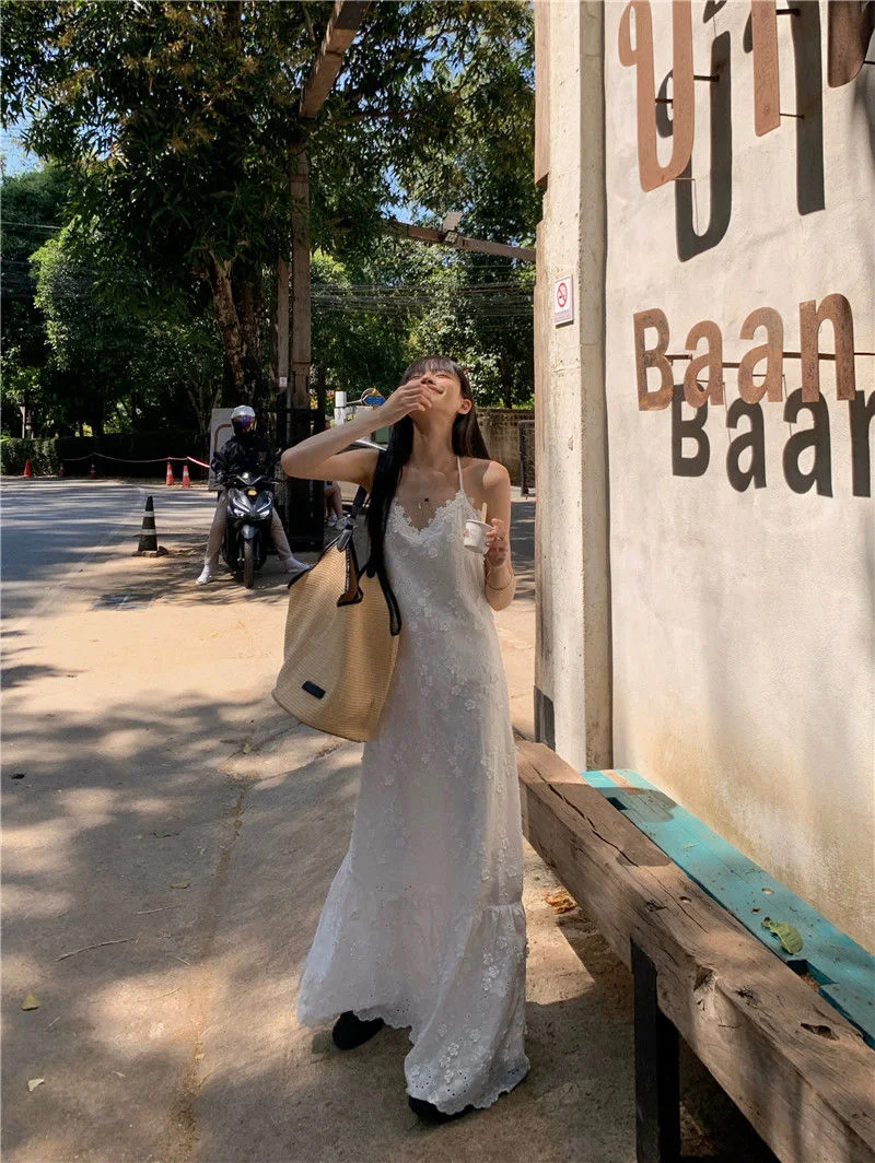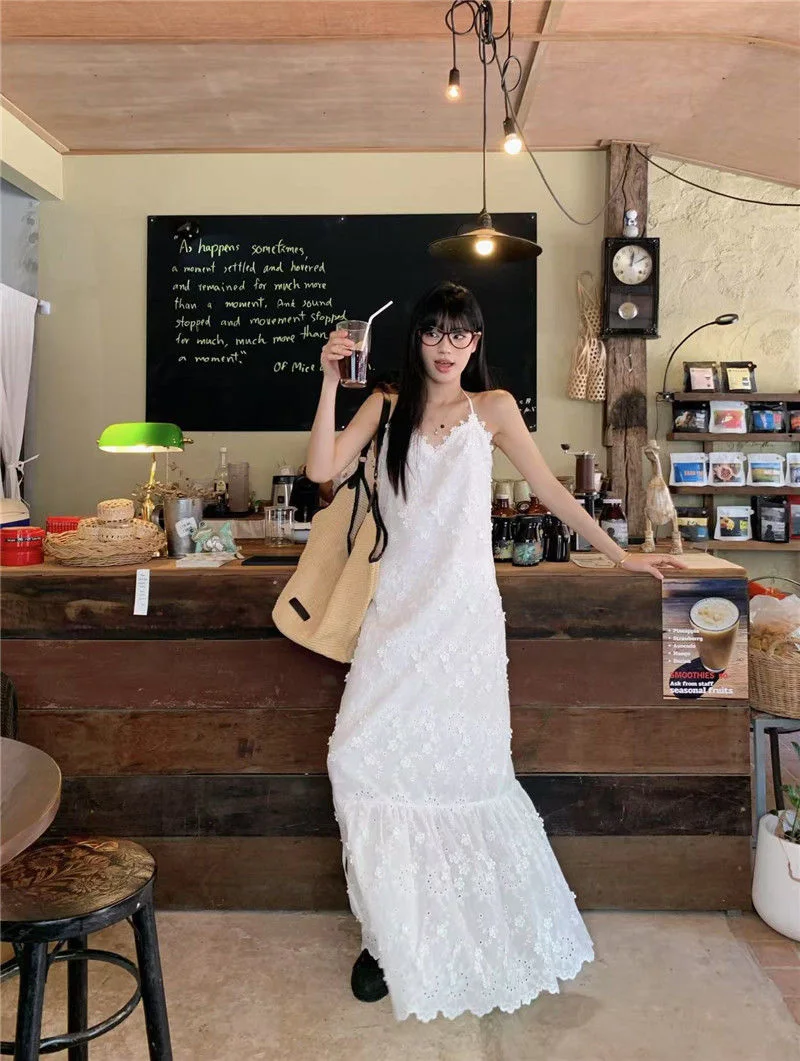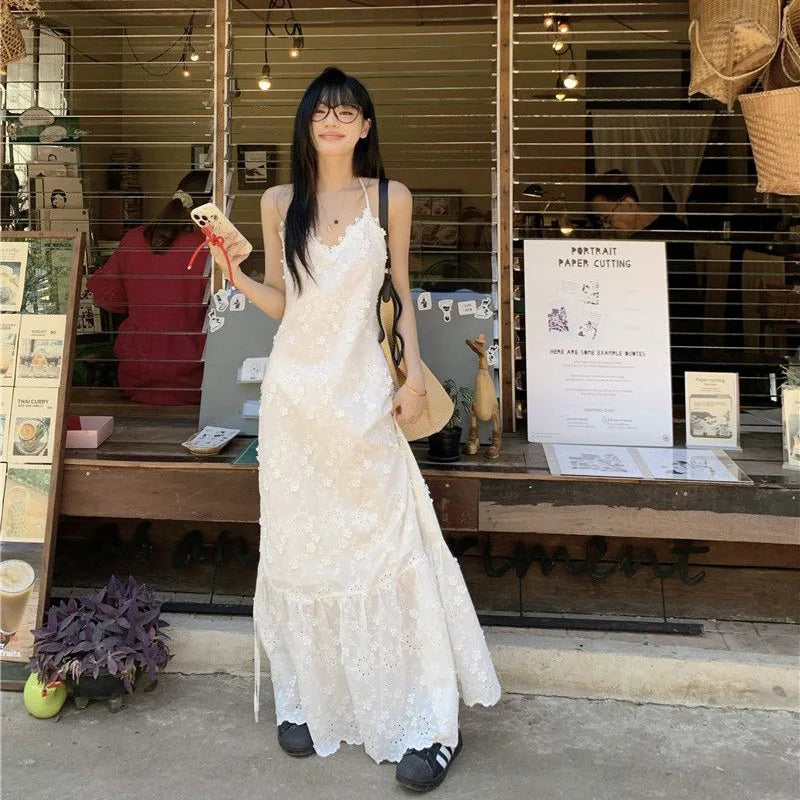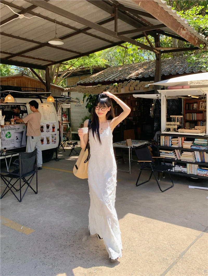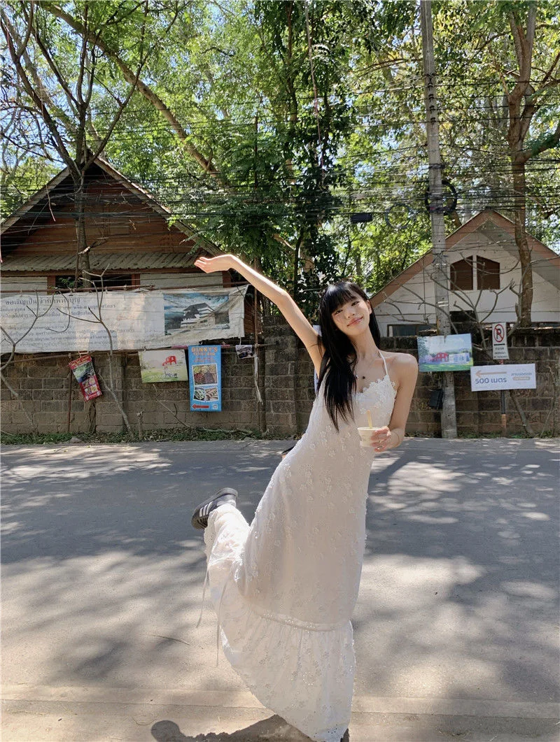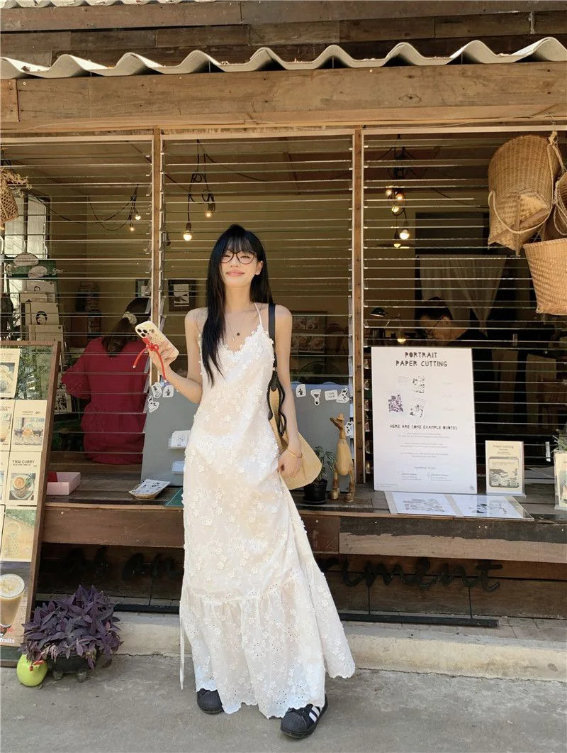 KYLETHOMASW  -  White Lace Camis Dress Women Summer Beach Vacation Backless A Line Dress Korean Fashion Harajuku Sexy Neck Mounted Vestidos New