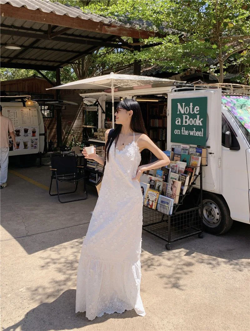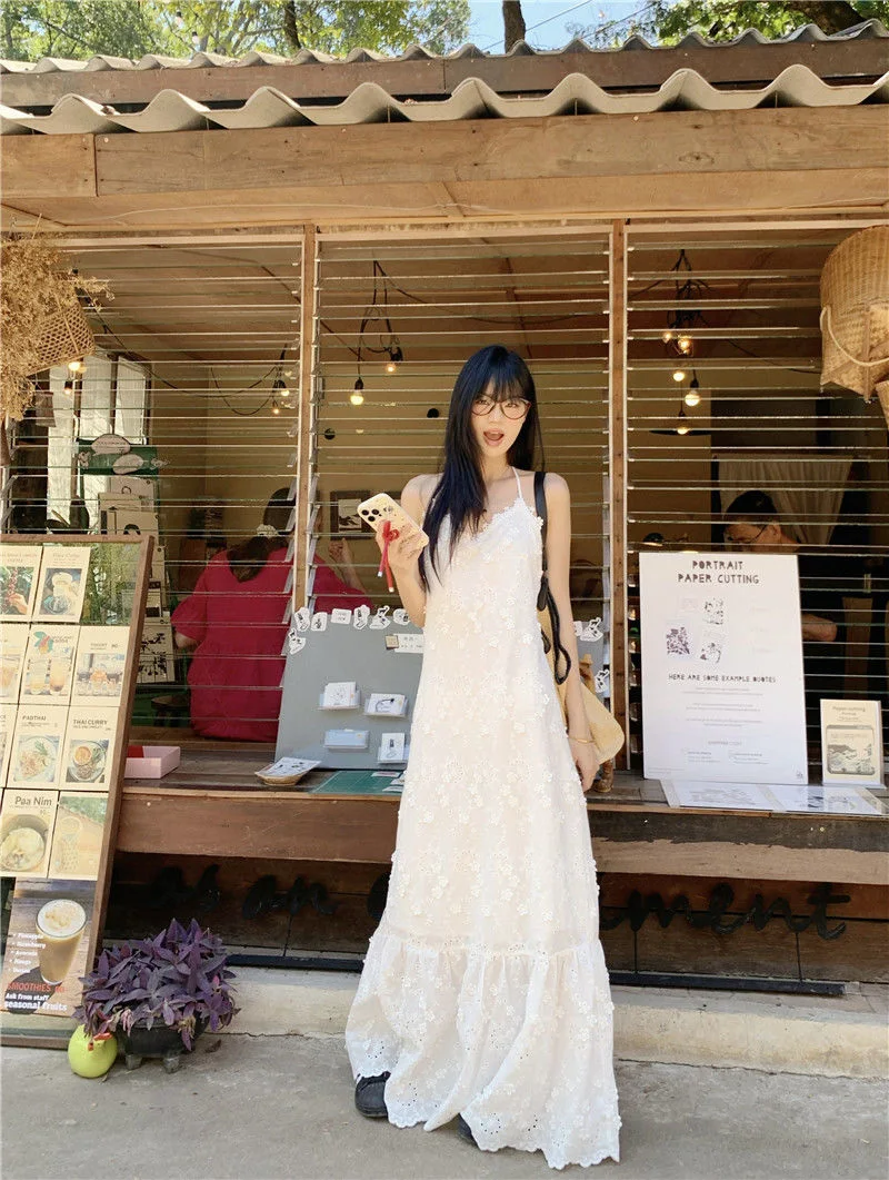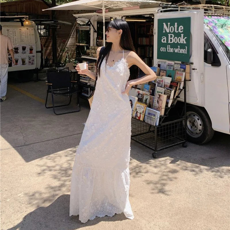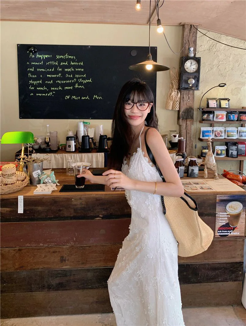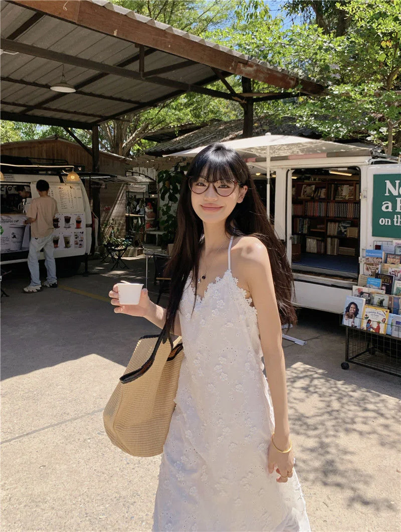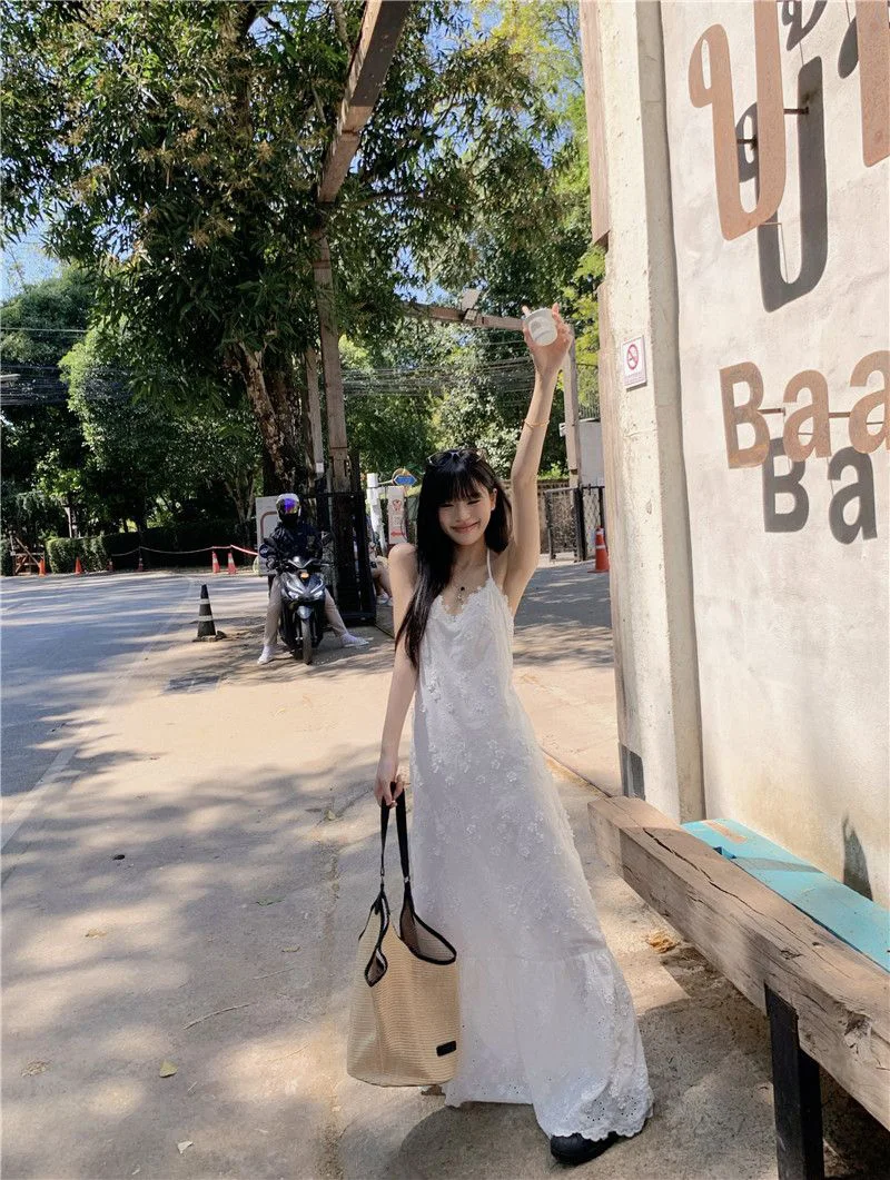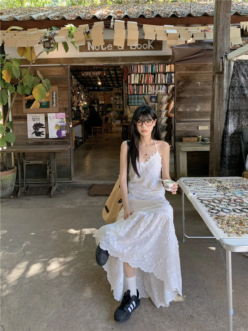 KYLETHOMASW  -  White Lace Camis Dress Women Summer Beach Vacation Backless A Line Dress Korean Fashion Harajuku Sexy Neck Mounted Vestidos New