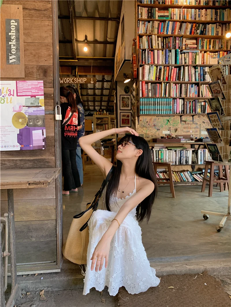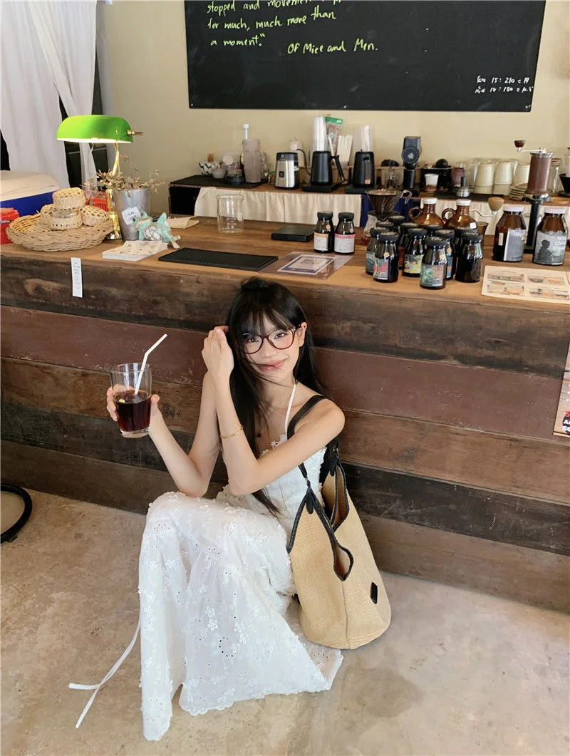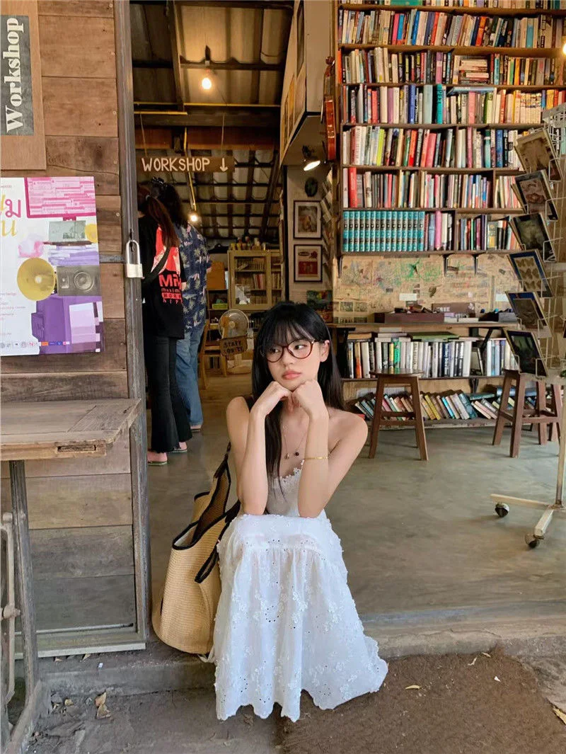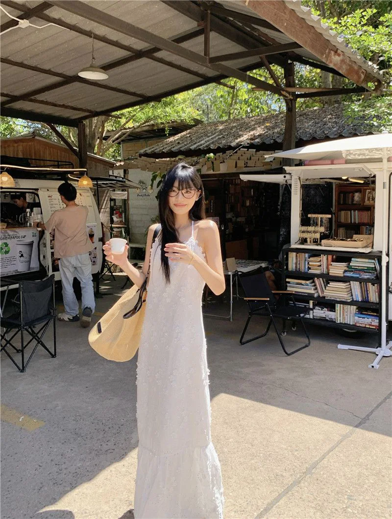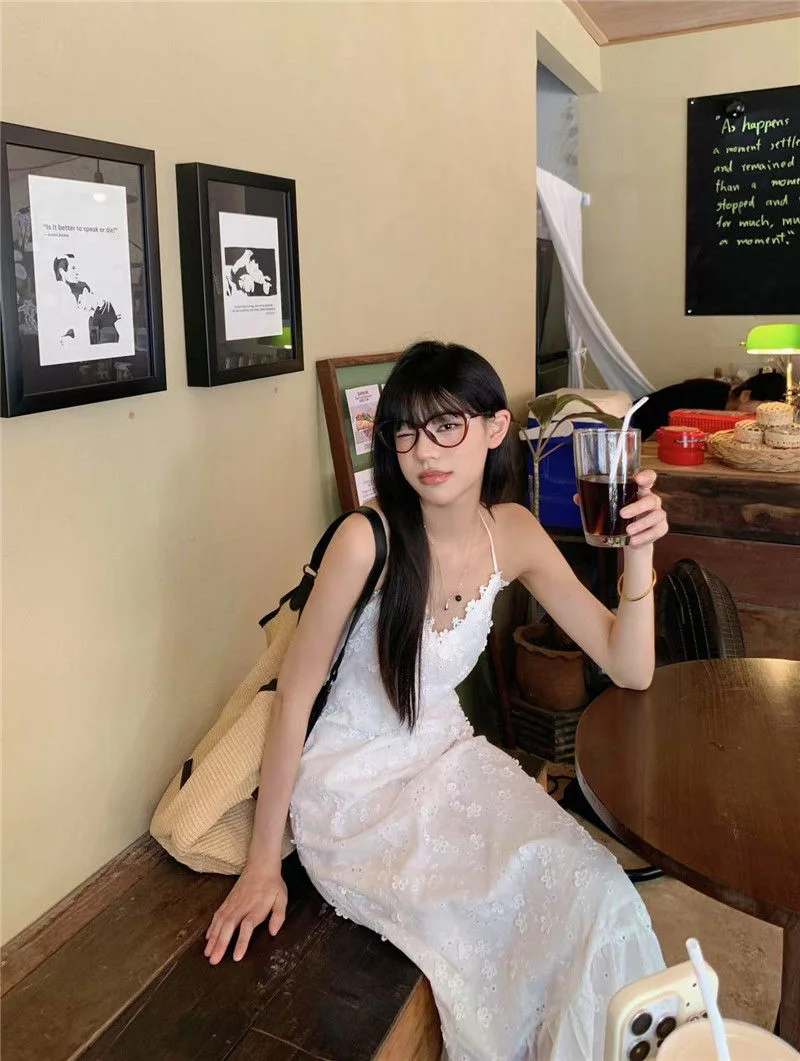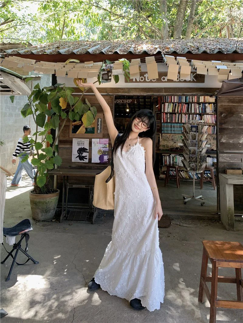 KYLETHOMASW  -  White Lace Camis Dress Women Summer Beach Vacation Backless A Line Dress Korean Fashion Harajuku Sexy Neck Mounted Vestidos New