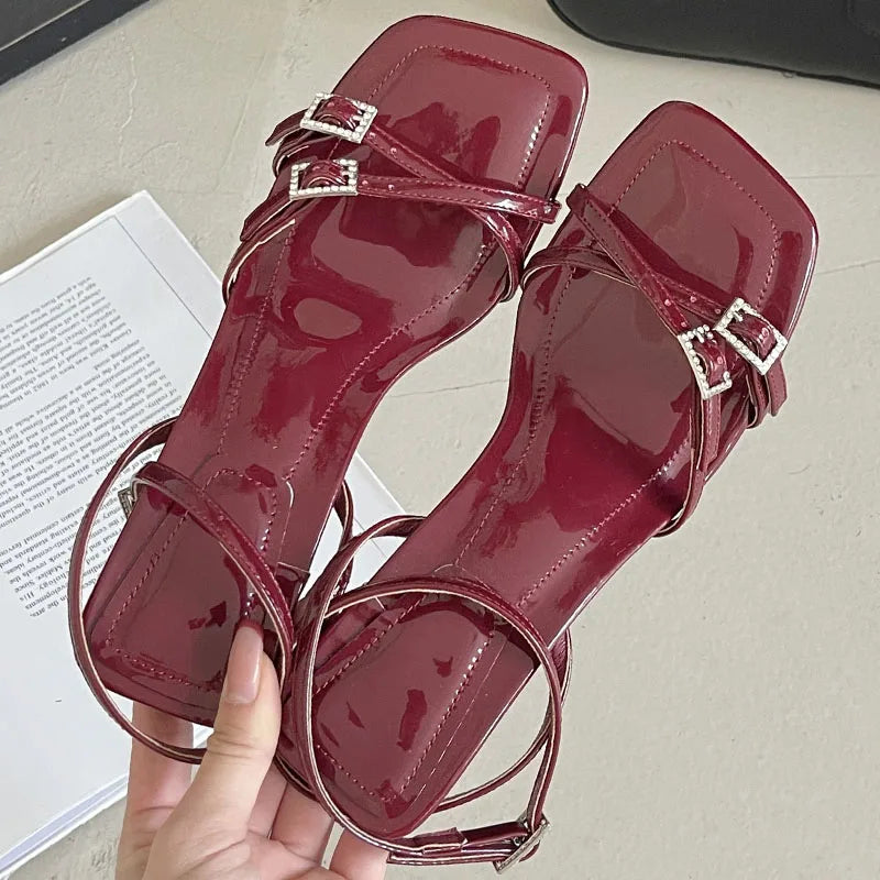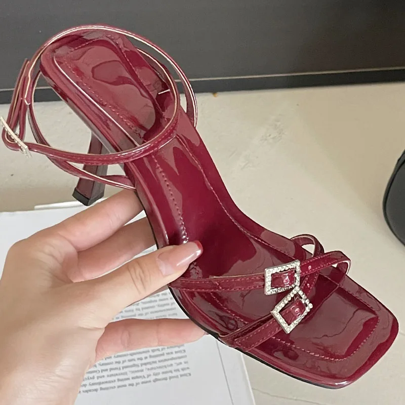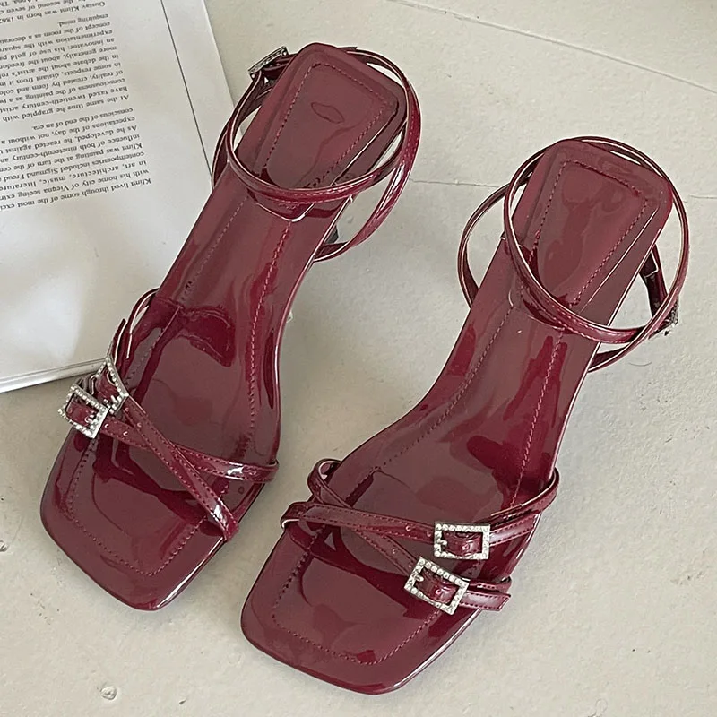 KYLETHOMASW - Wine Red Footwear New In Women Heeled Sandals Shoes 2025 Female Fashion Buckle Ladies High Heels Sandals Pumps Shoes Big Size