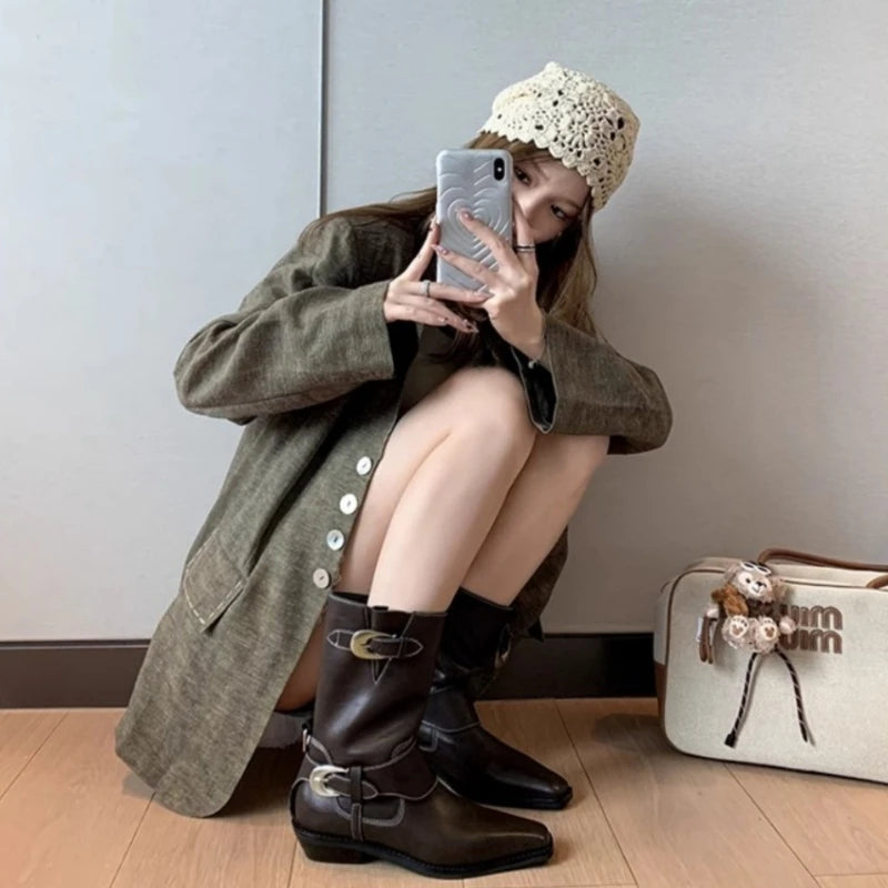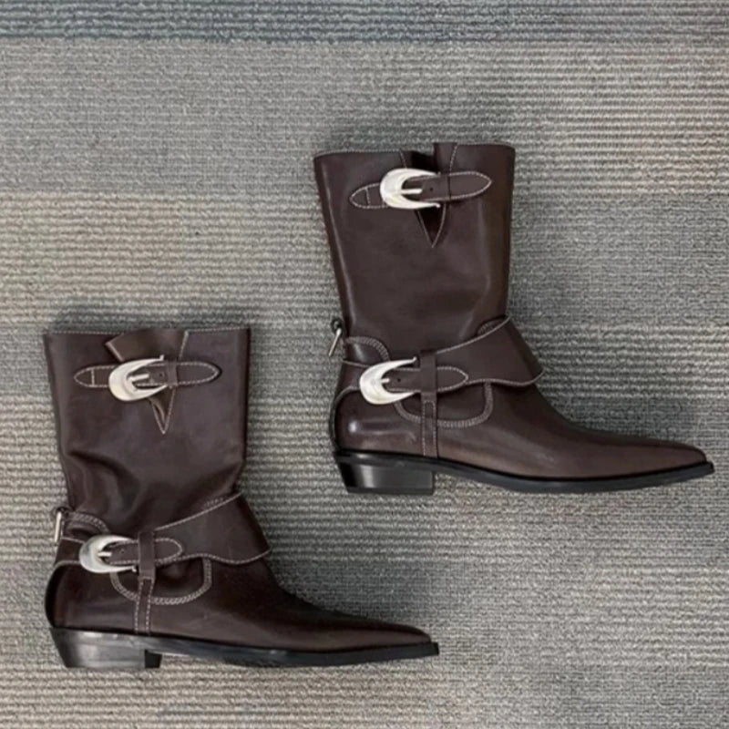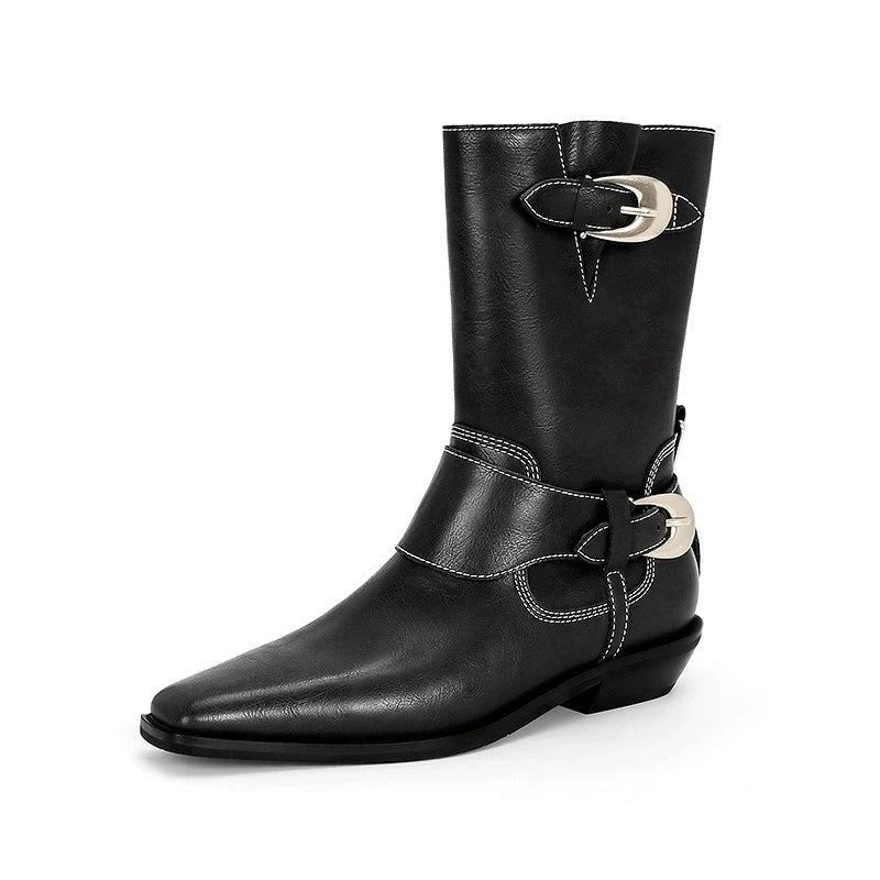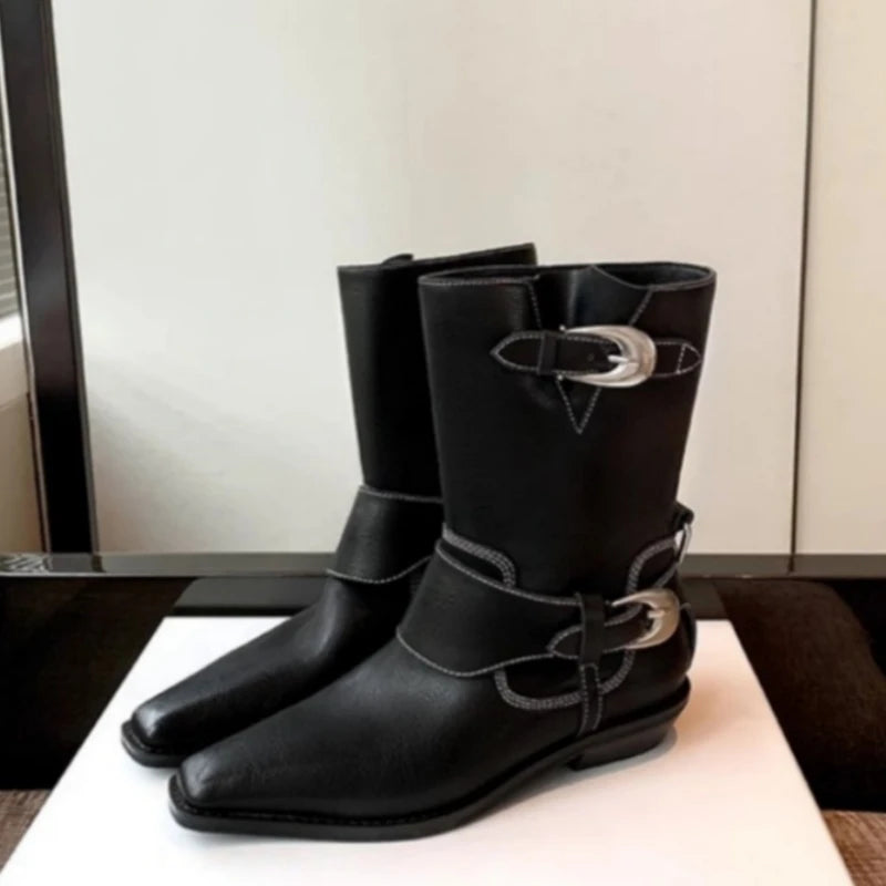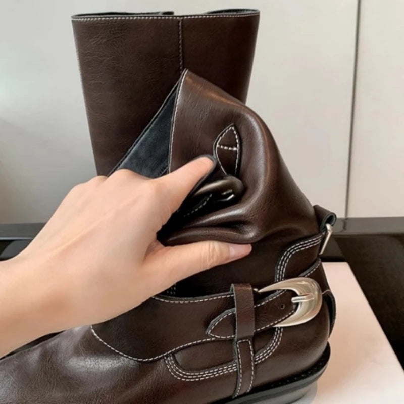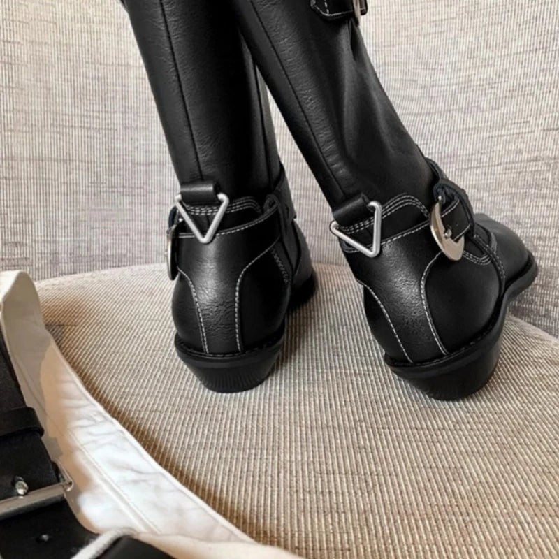 KYLETHOMASW  -  Winter Women Biker Boots Fashion Belt Buckle Ladies Elegant Platform Short Booties Casual Women's Knight Booties botas mujer