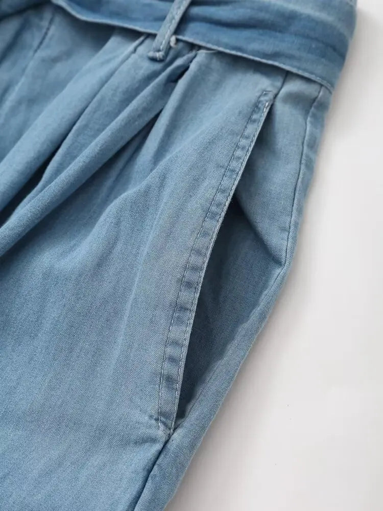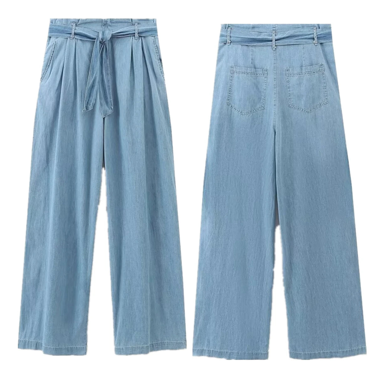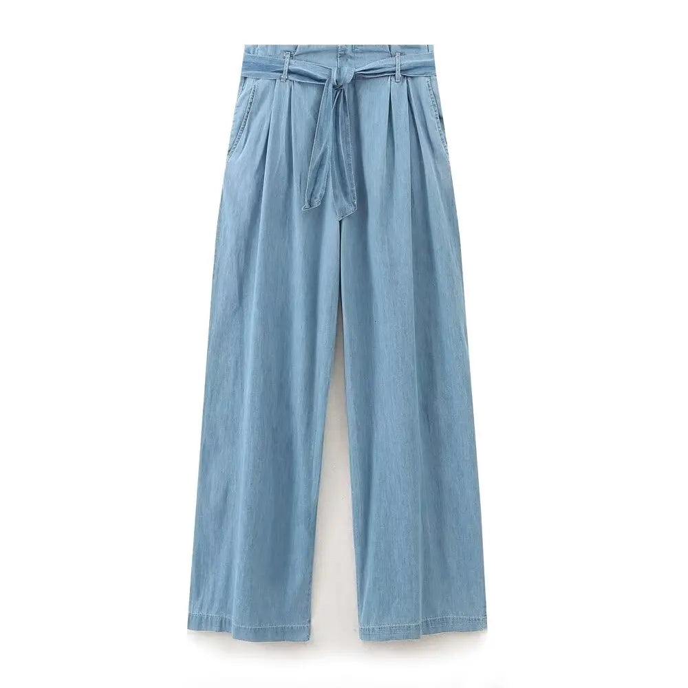 KYLETHOMASW  -  With Belt Casual Blue Loose Jeans Wide Leg Pants Women Minimalist And Fashionable Sky Trousers Women