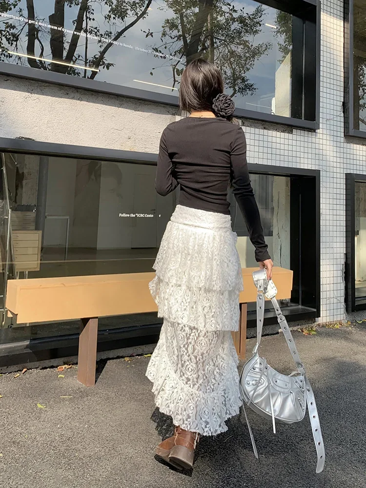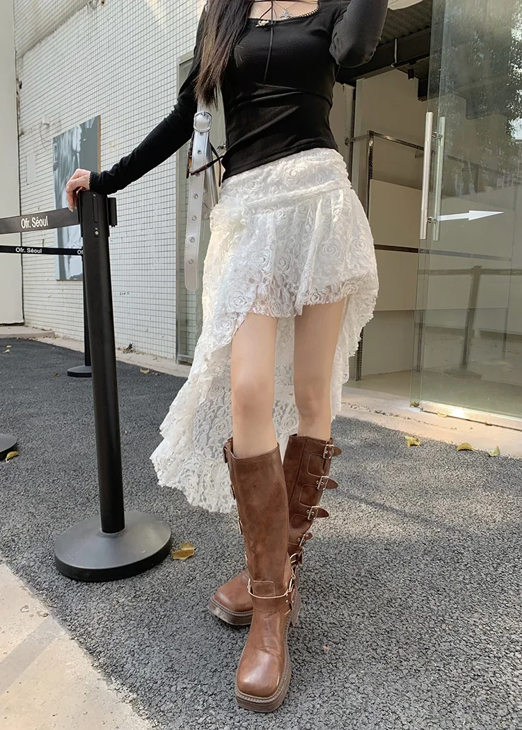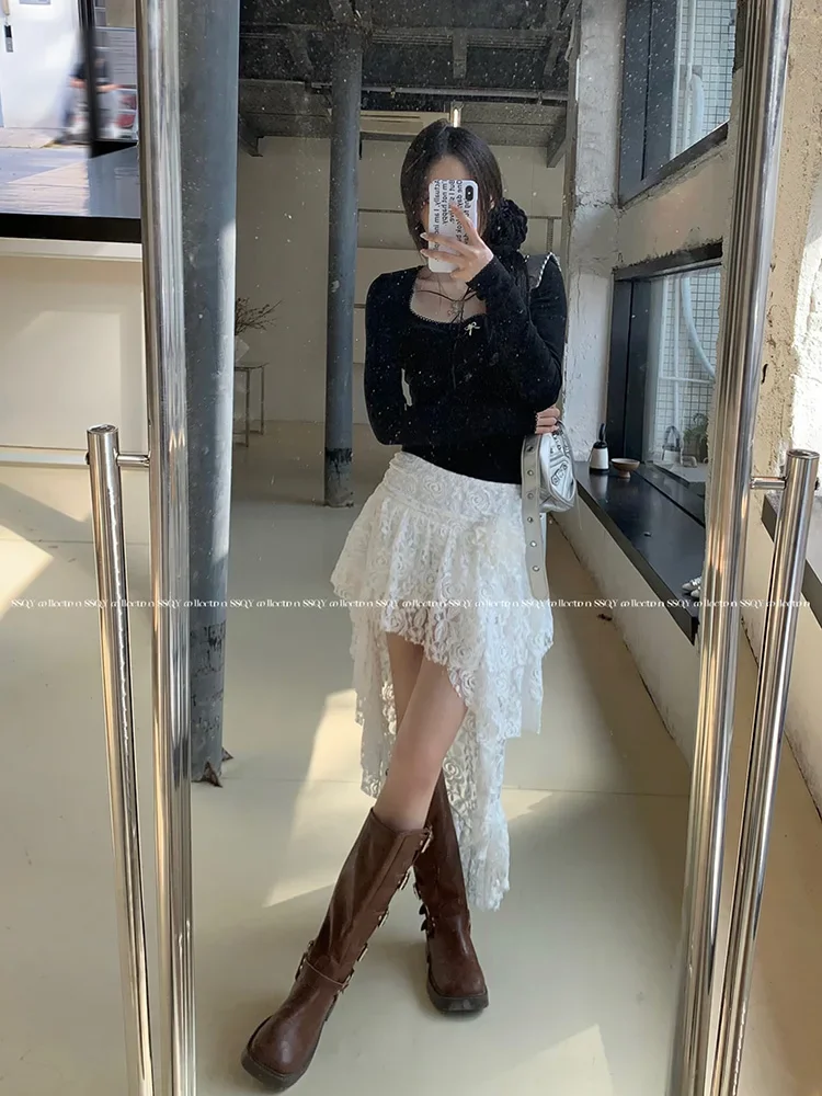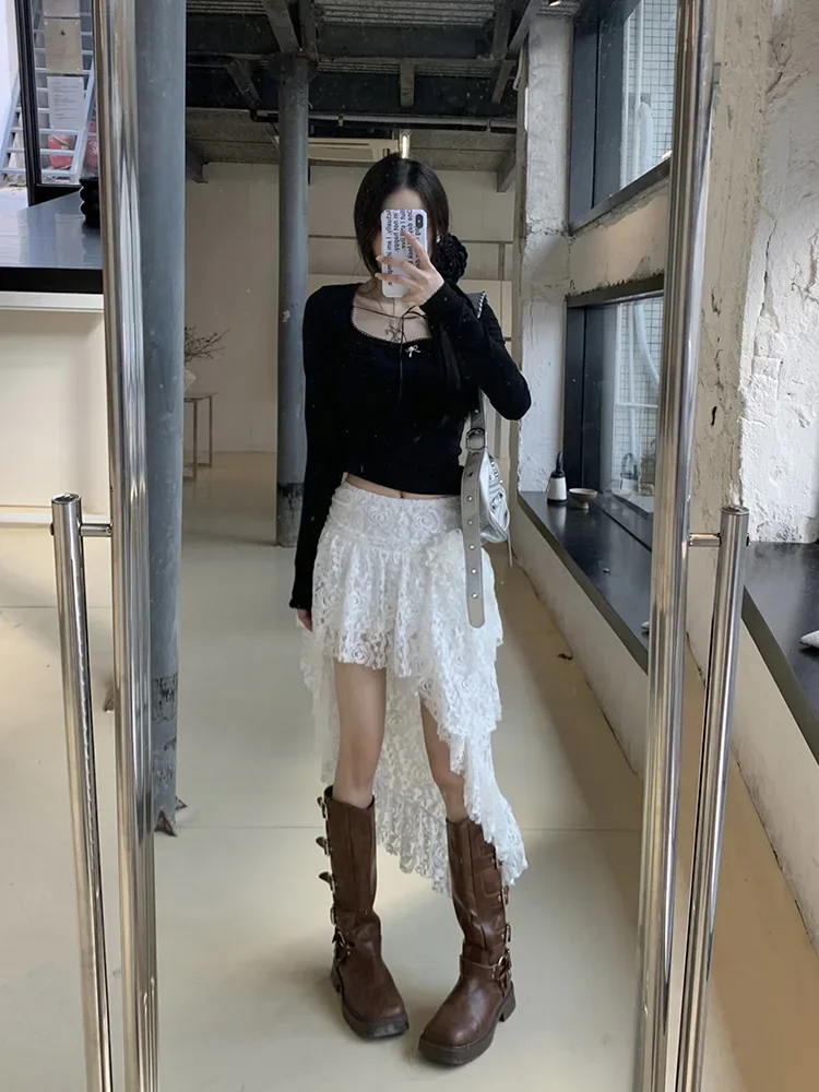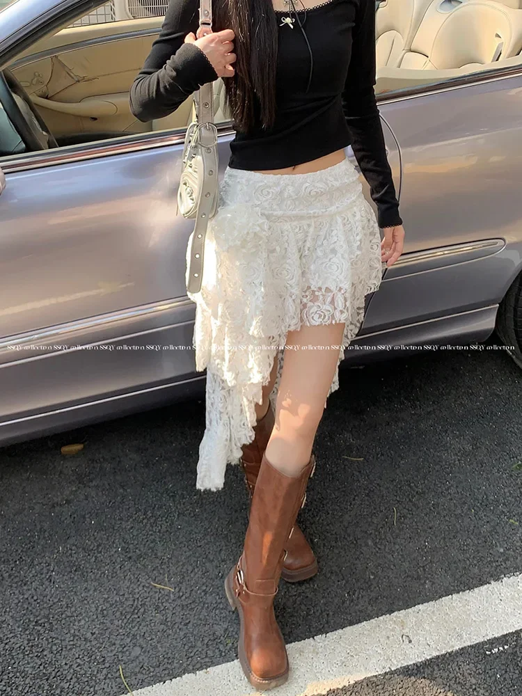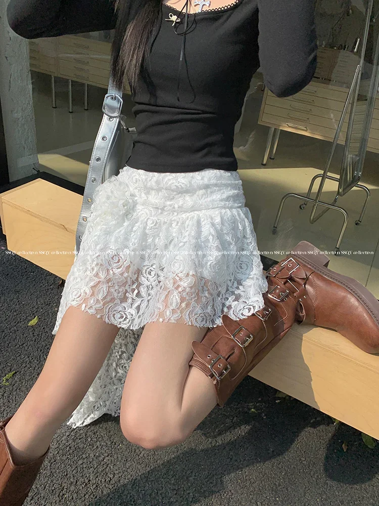 Kylethomasw Women New Fashion Flower Lace Irregular Skirt Y2K Aesthetic Kawaii Gothic Sexy Mini Skirts Summer Sexy Club Streetwear