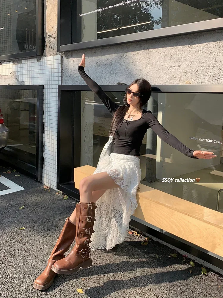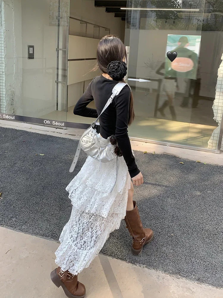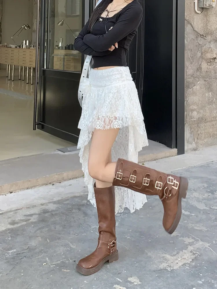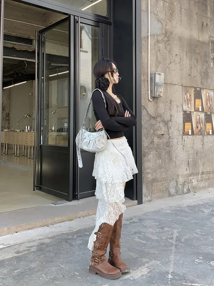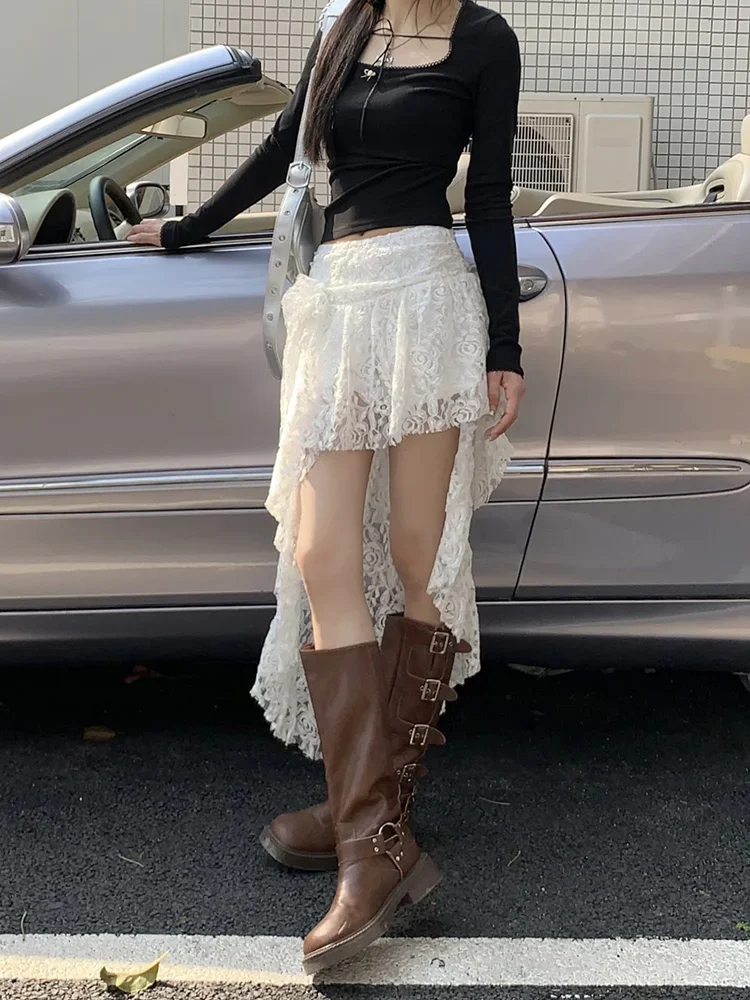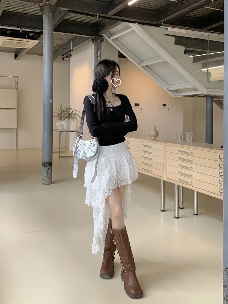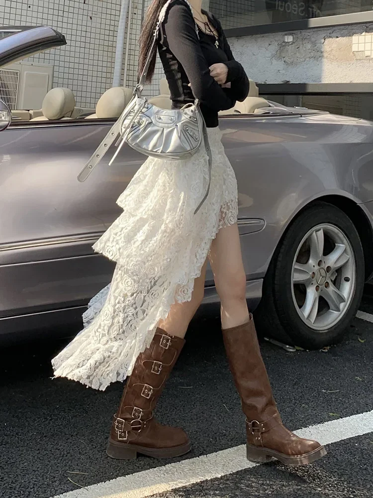 Kylethomasw Women New Fashion Flower Lace Irregular Skirt Y2K Aesthetic Kawaii Gothic Sexy Mini Skirts Summer Sexy Club Streetwear