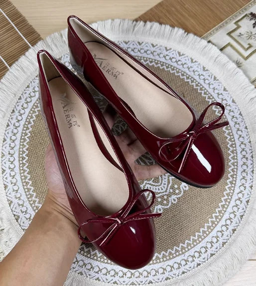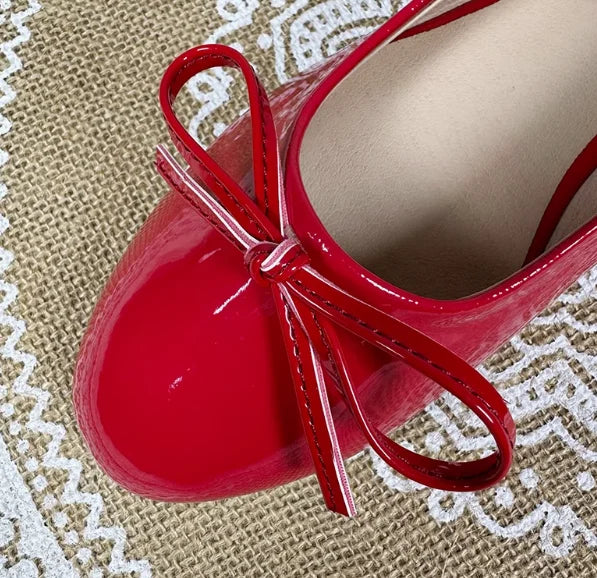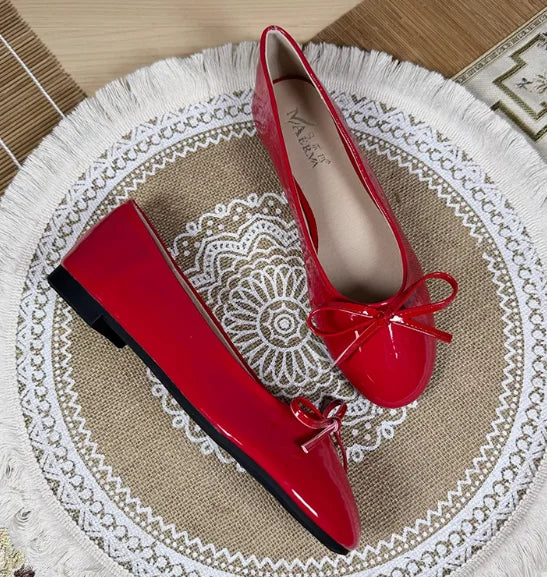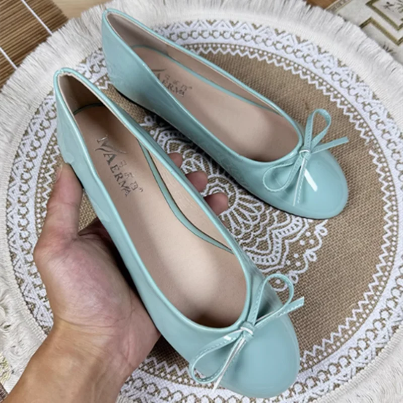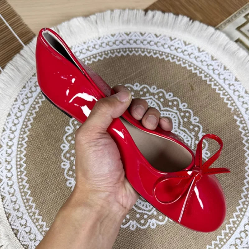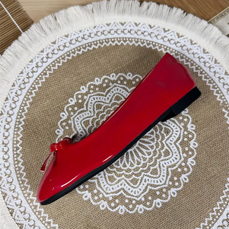 KYLETHOMASW - Women Round Toe Ballet Flats Spongy Bottom Hot New 2024 Italian Shoes Patent Leather Classic Bow-Knot Dressing Slip-On 34 48 47