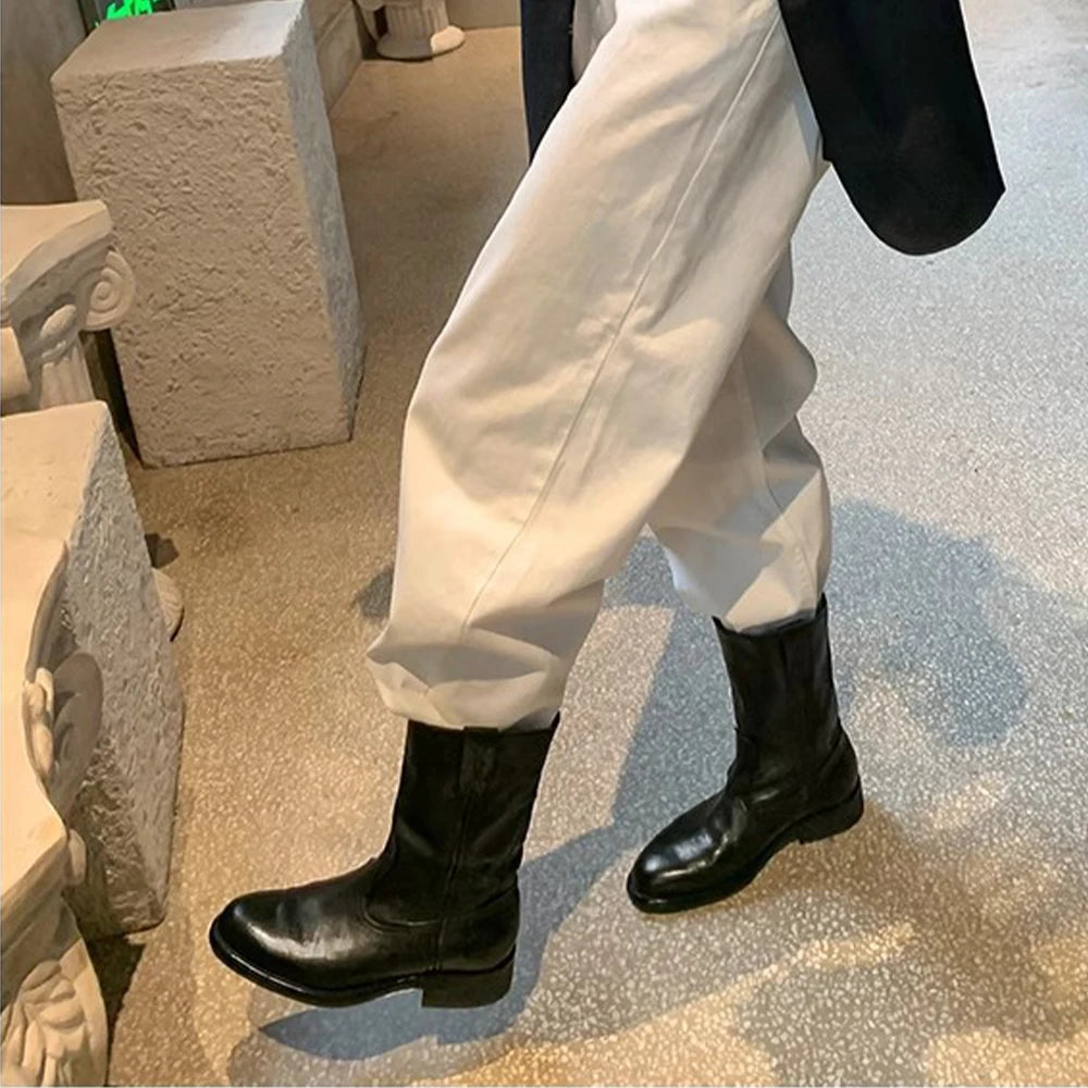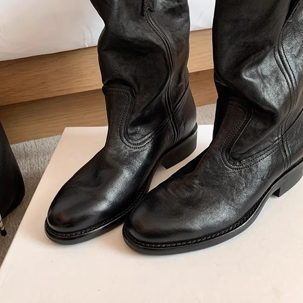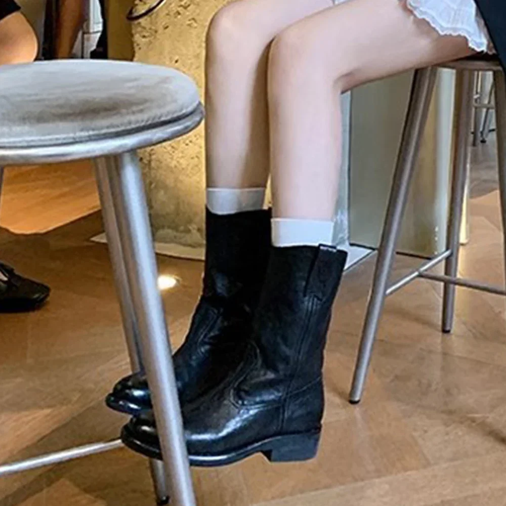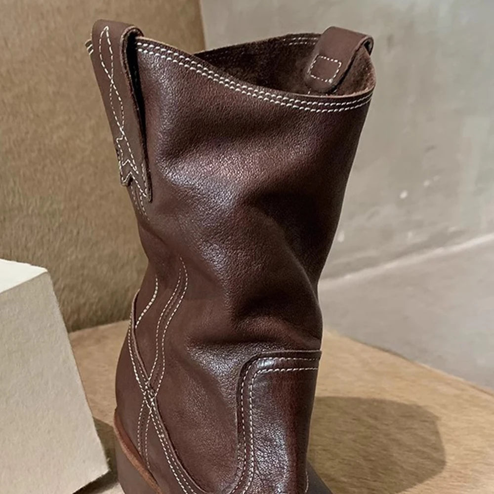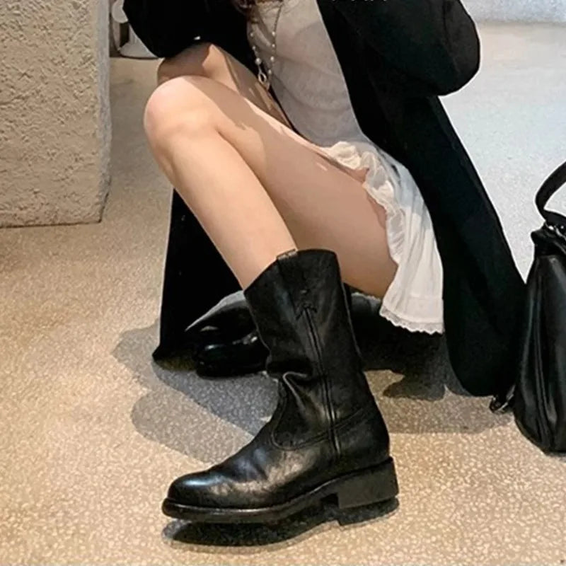 KYLETHOMASW - Women's Cowboy Boots Mid Calf Boots Western Short Embroidered Round Toe Low Heel Slip on Comfort Dress Slouchy Booties