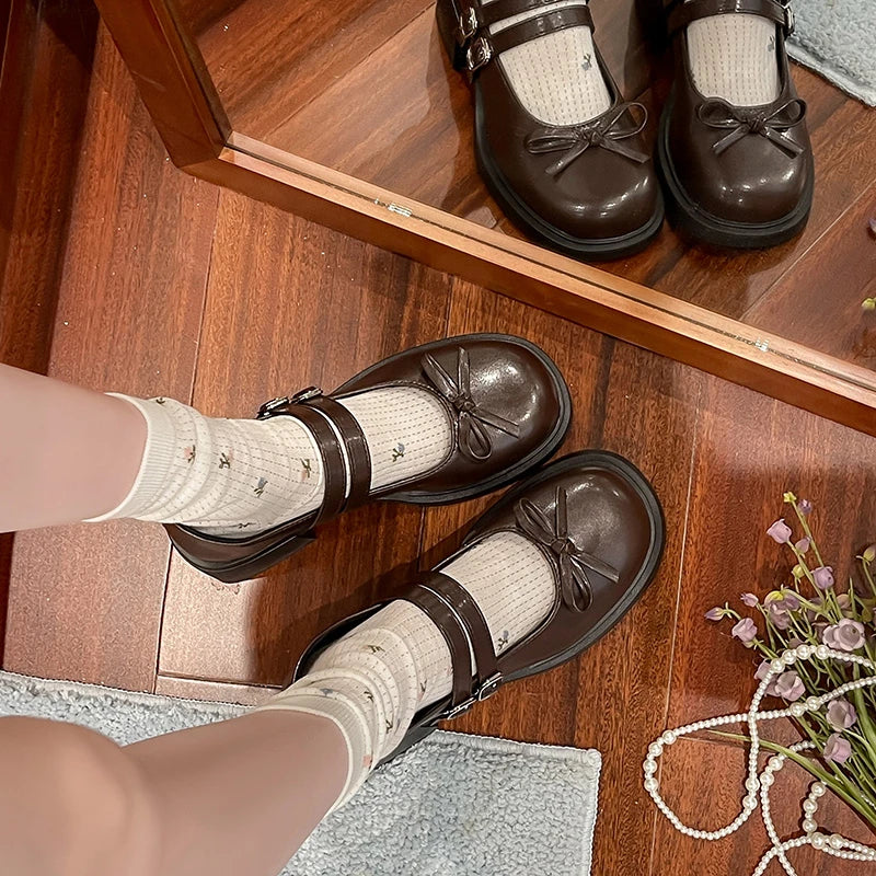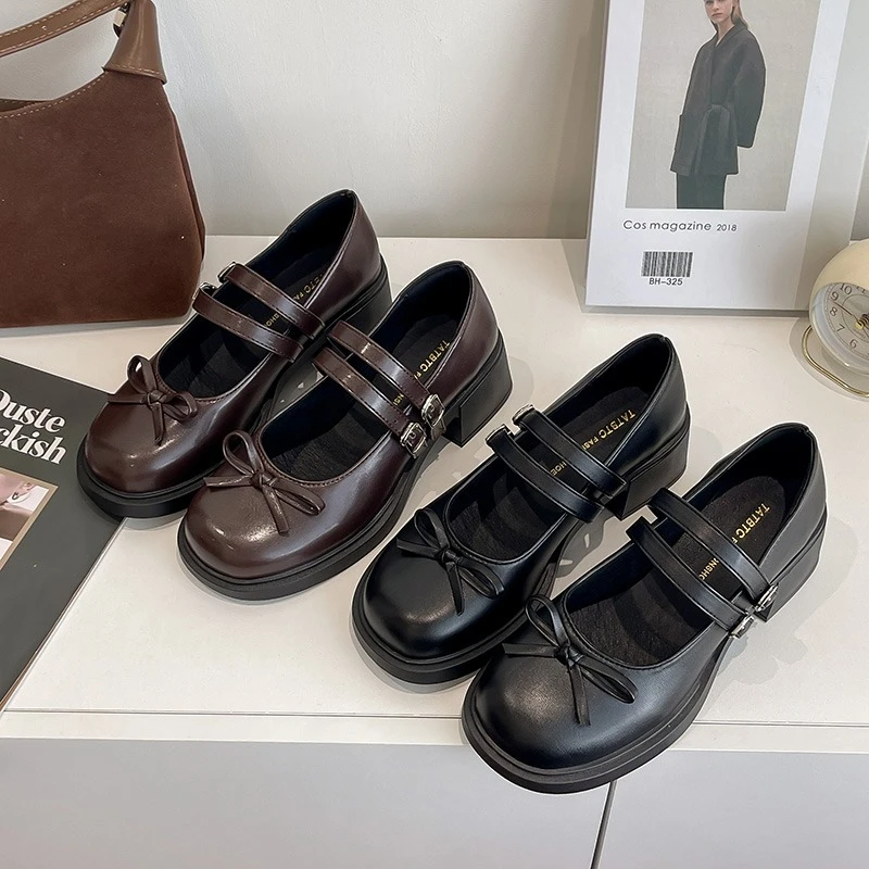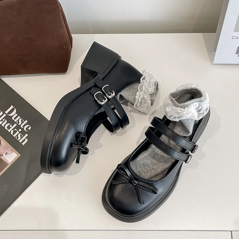 KYLETHOMASW - Women's Dresses Mary Jane Shoes Elegant Fashion Ladies Causal Uniform Performance Shoes Lolita Bowknot Woman Low-heeled Shoes
