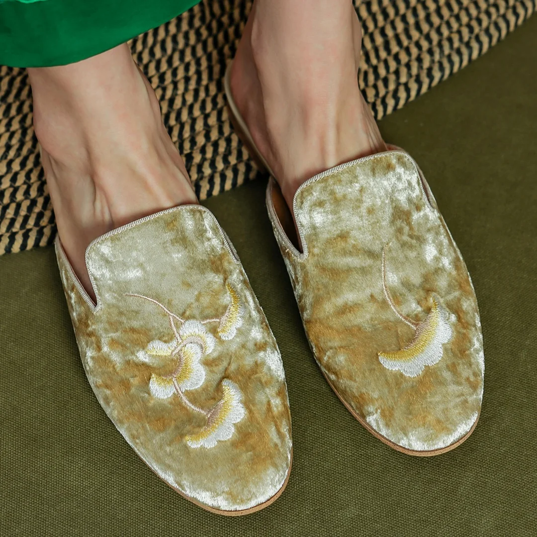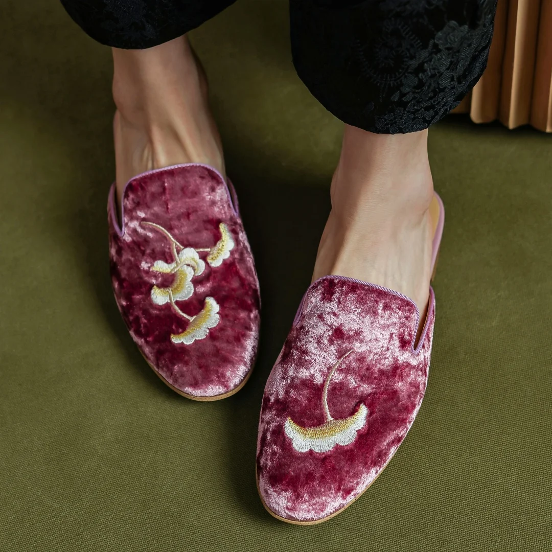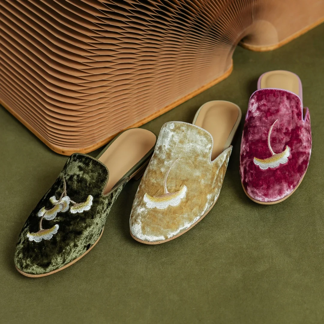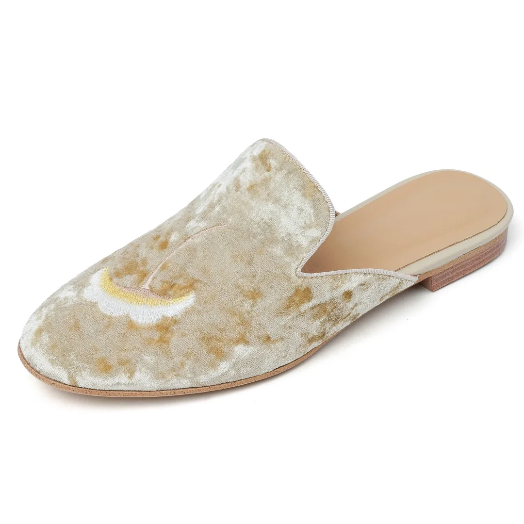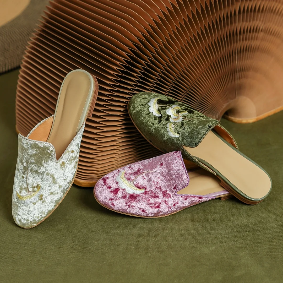 KYLETHOMASW - Women's embroidery velvet slip-on flats summer mules round toe pigskin inside sheepskin insole casual female sandals shoes woman