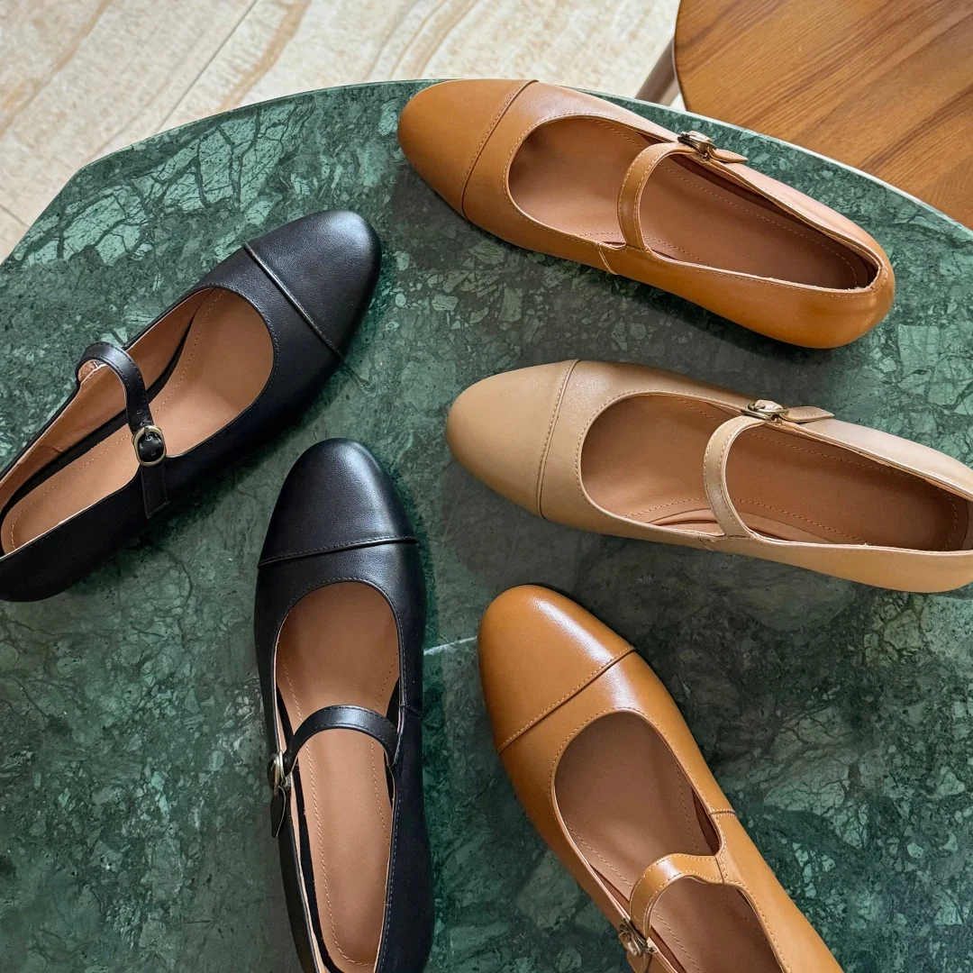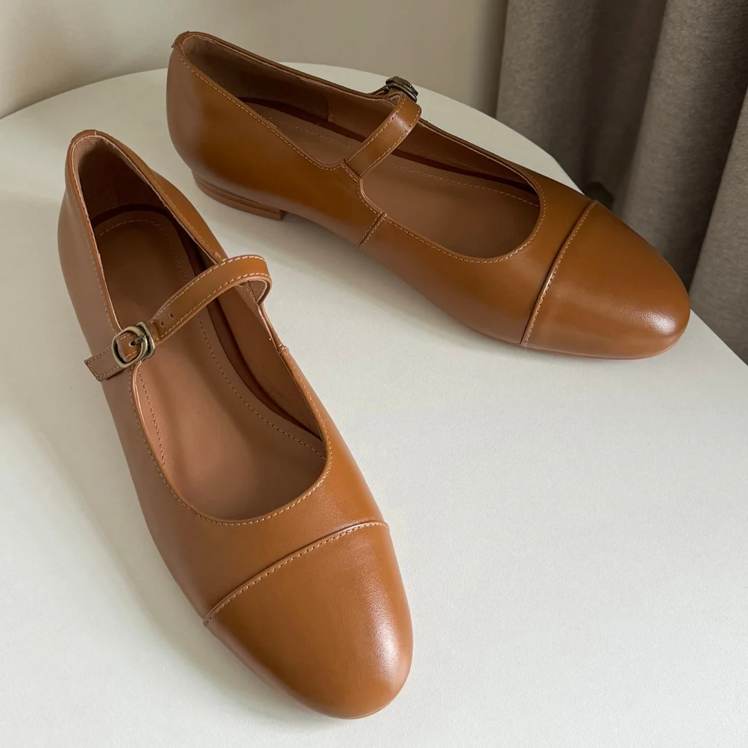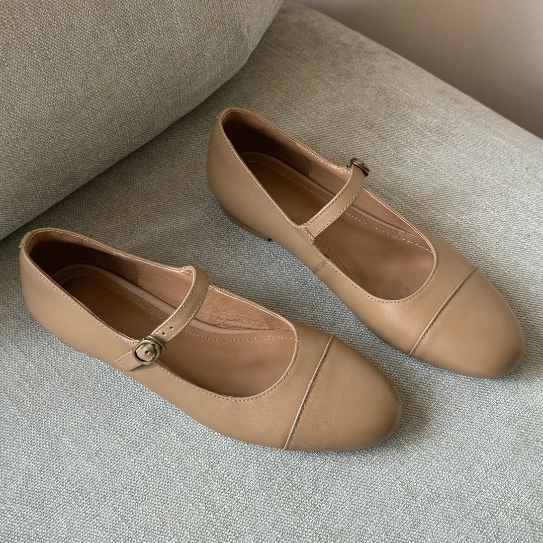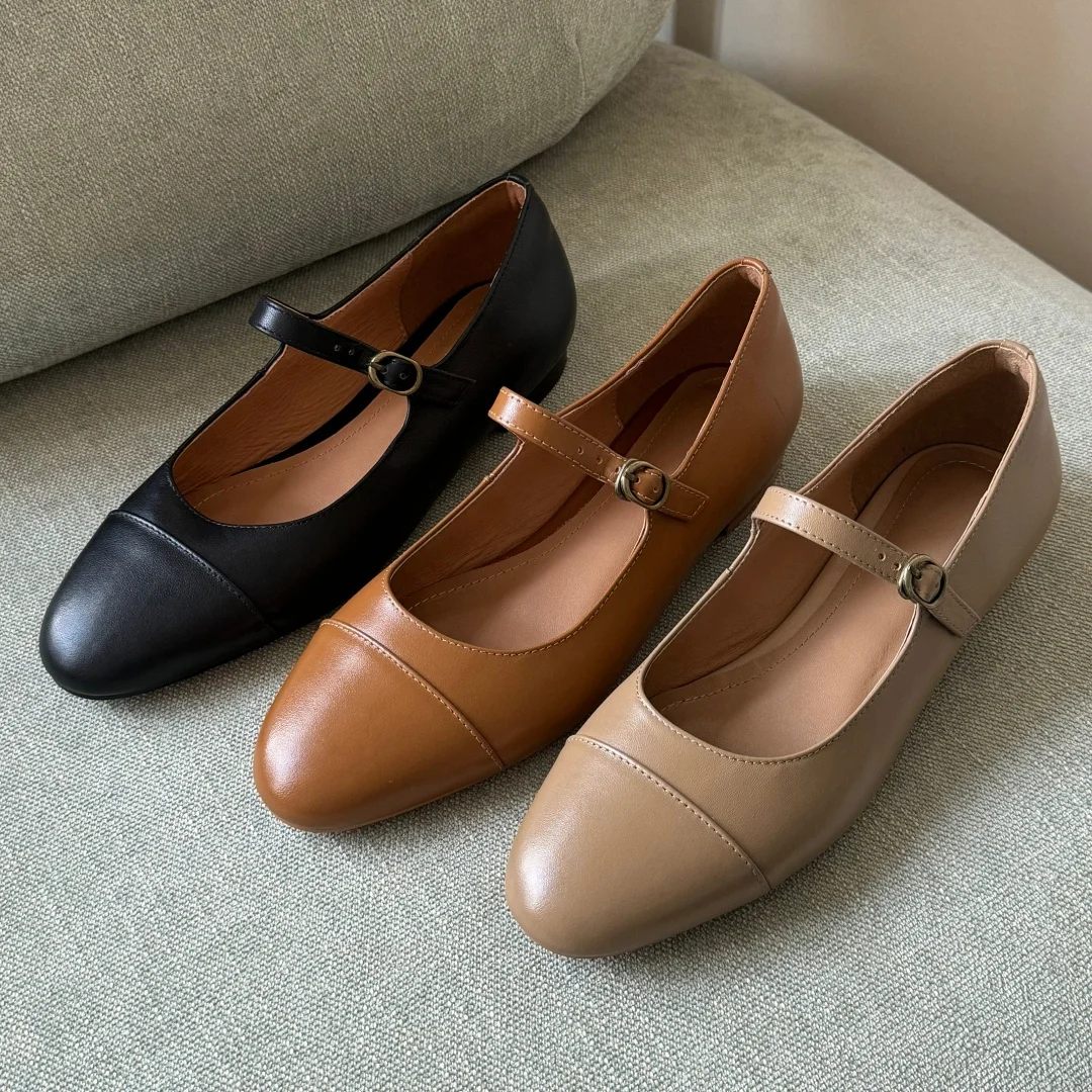 KYLETHOMASW - Women's genuine leather round toe slip-on Mary Jane flats soft comfortable casual female daily footwear shoes for woman 2024 new