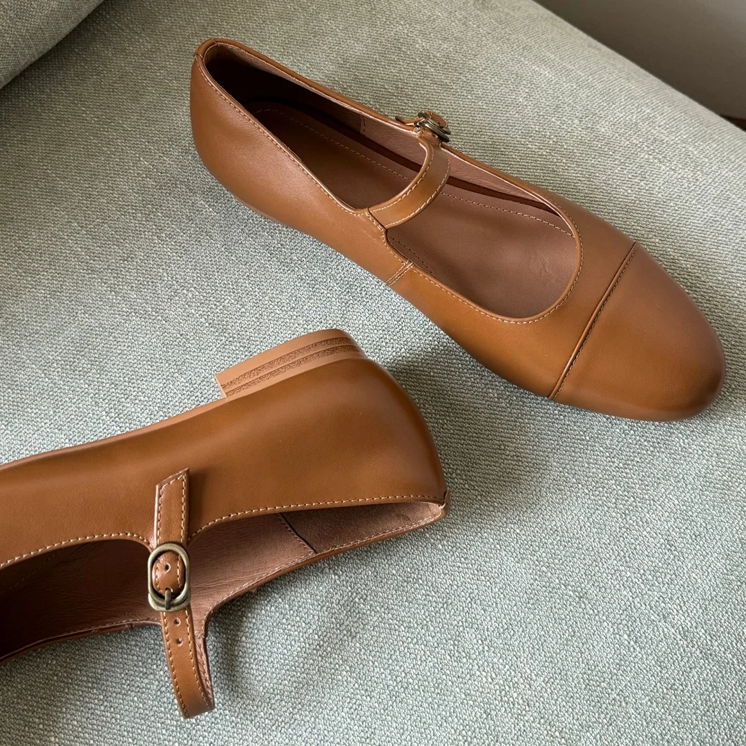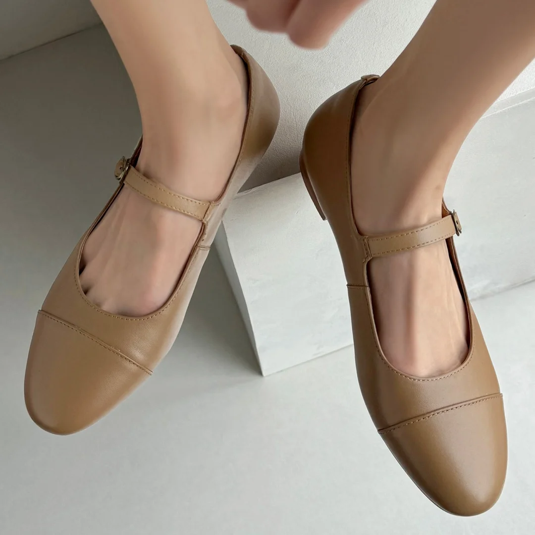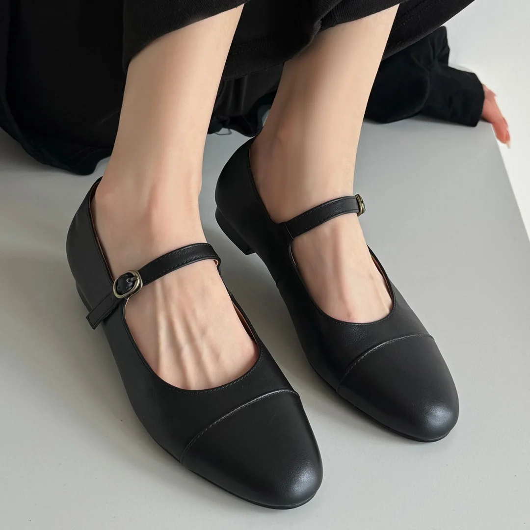 KYLETHOMASW - Women's genuine leather round toe slip-on Mary Jane flats soft comfortable casual female daily footwear shoes for woman 2024 new