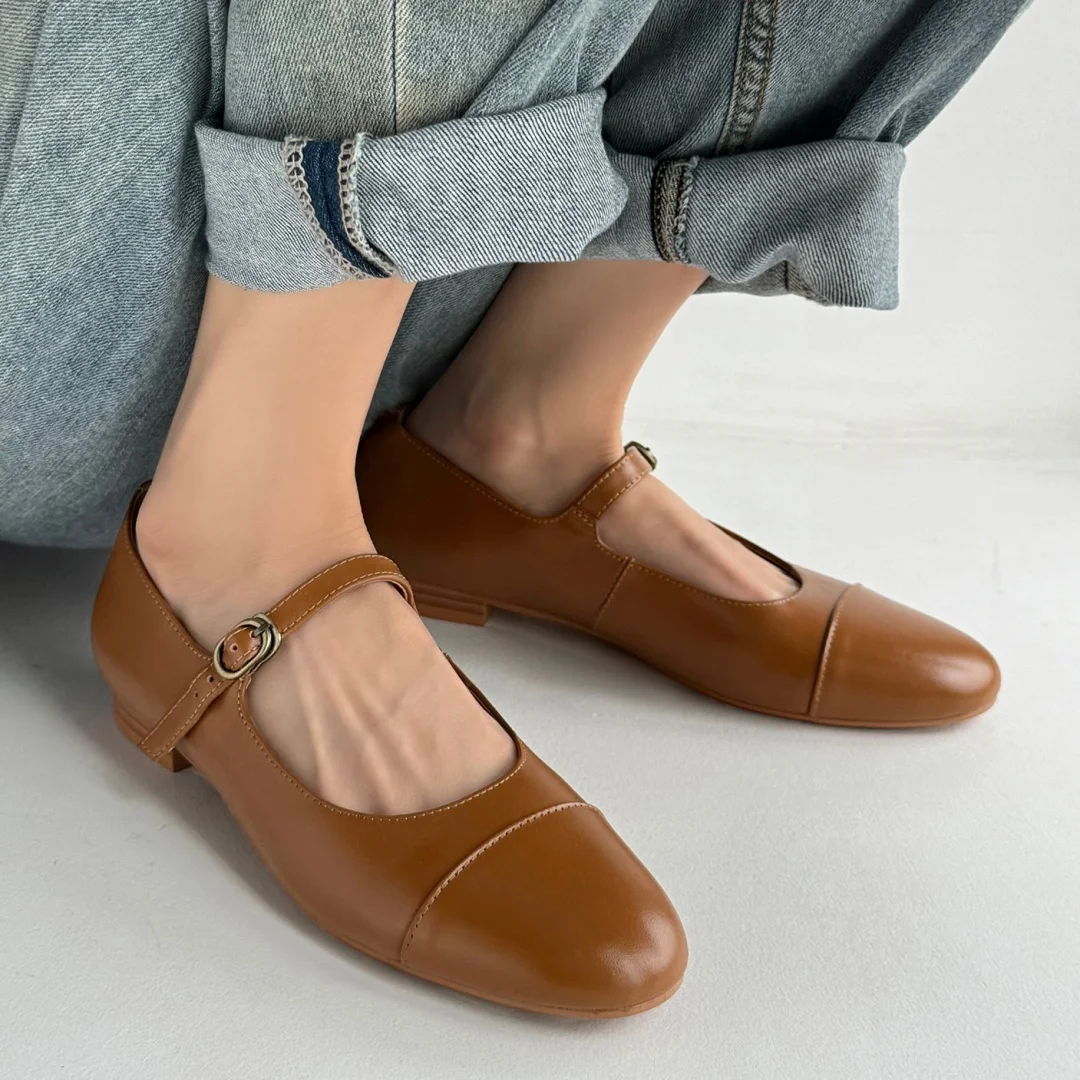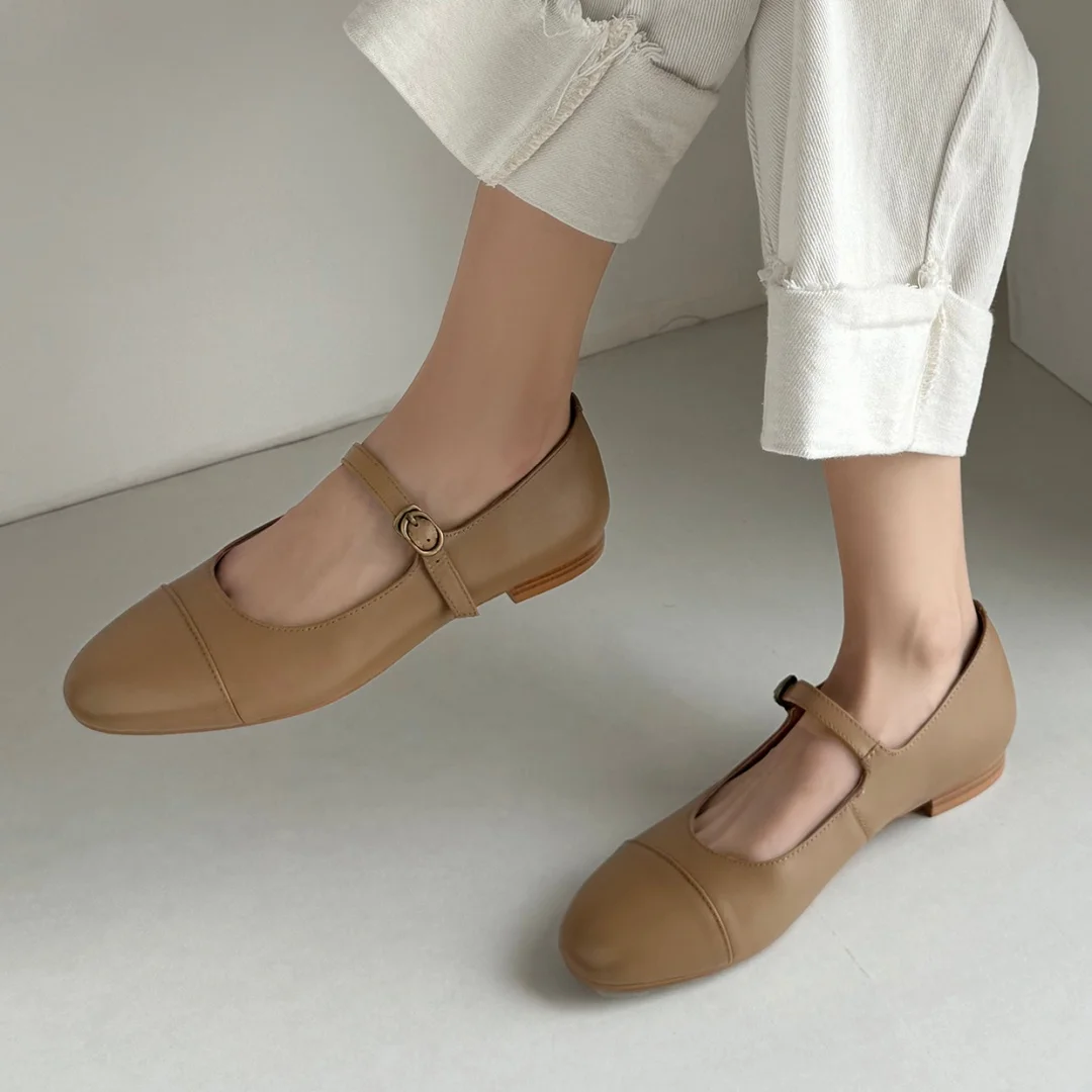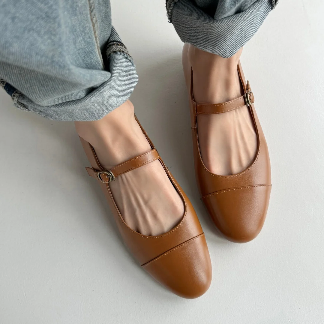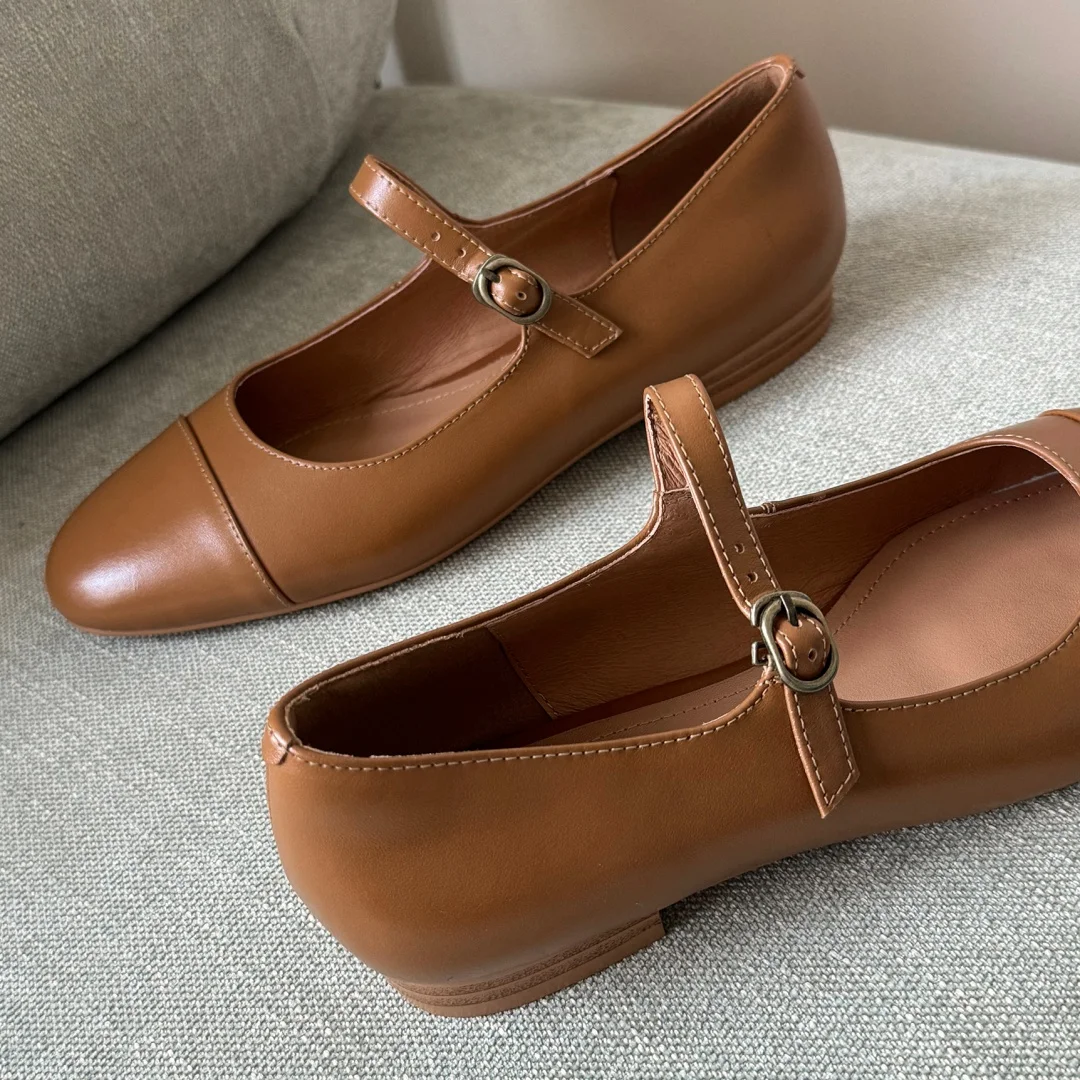 KYLETHOMASW - Women's genuine leather round toe slip-on Mary Jane flats soft comfortable casual female daily footwear shoes for woman 2024 new