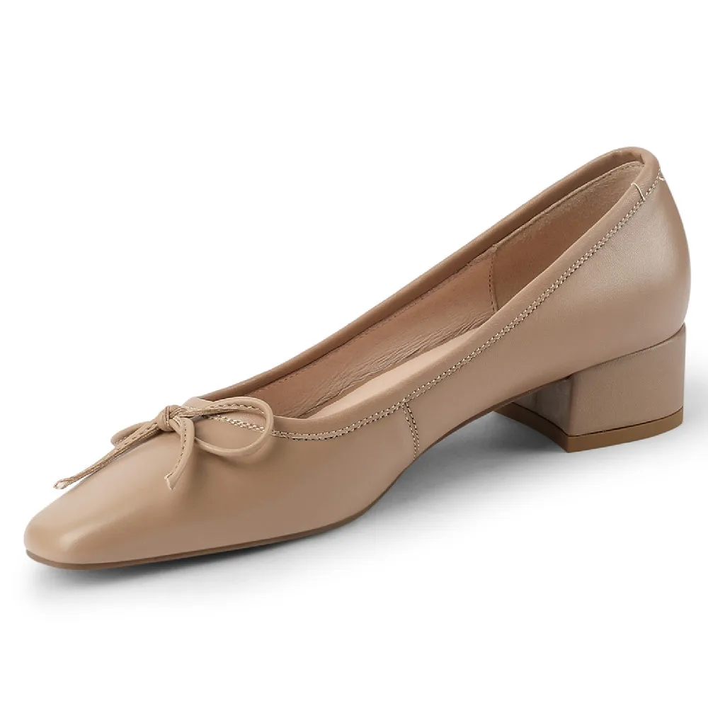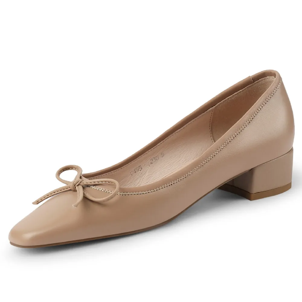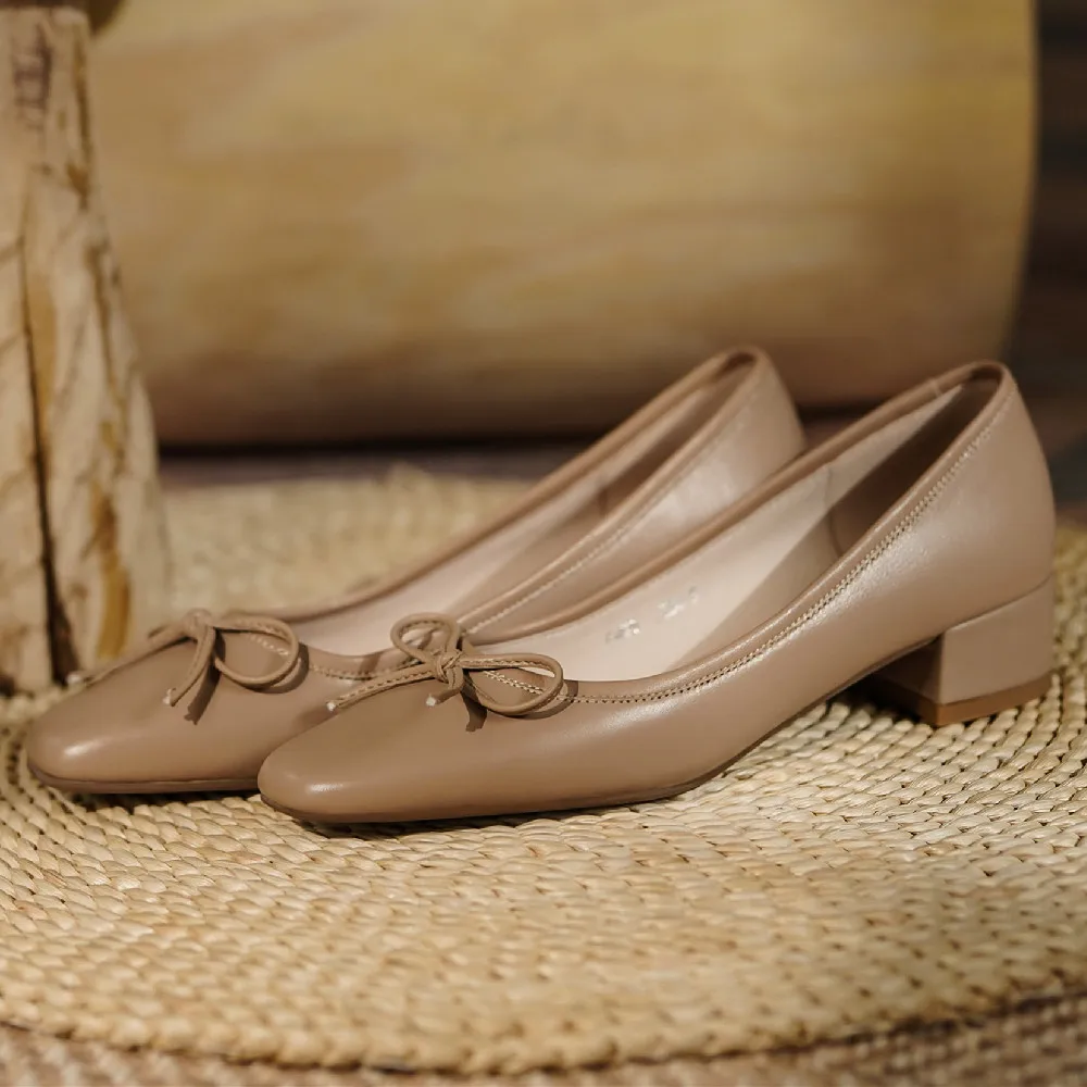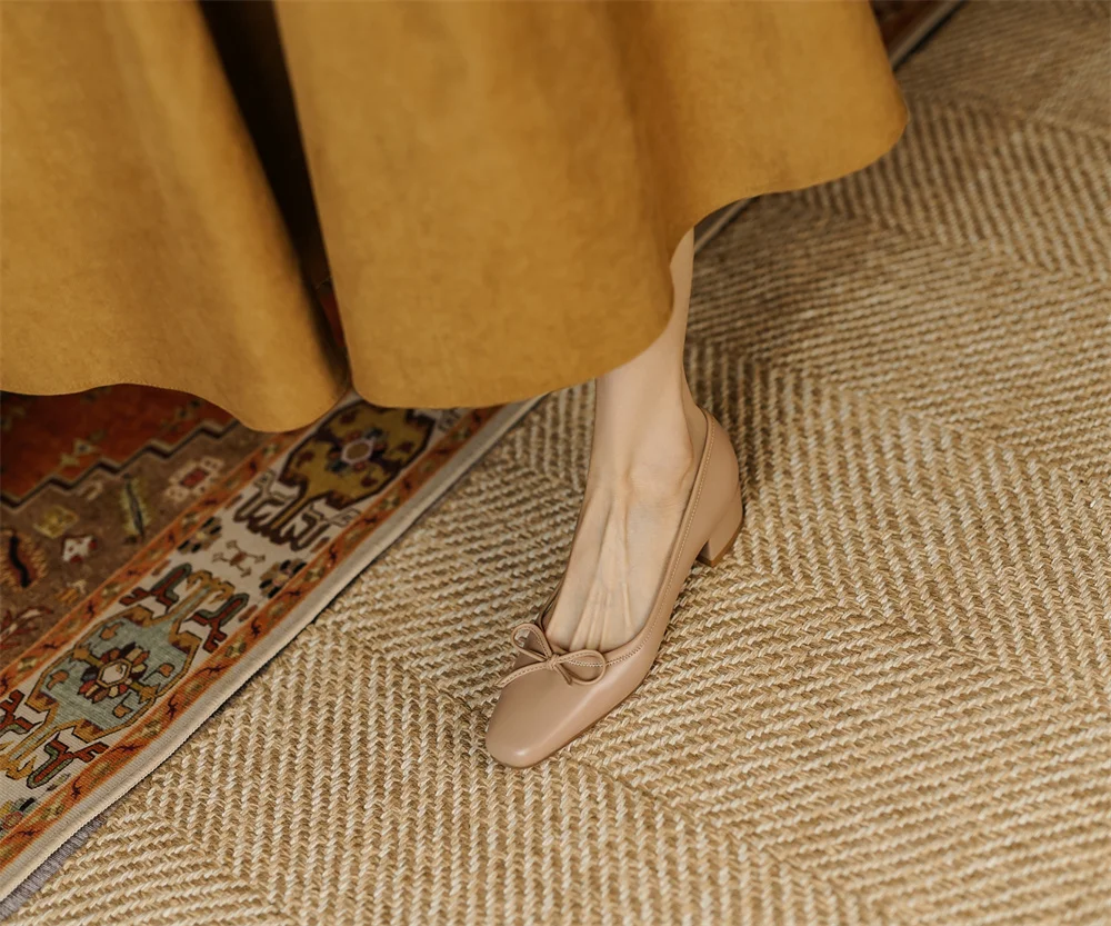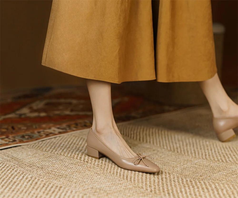 KYLETHOMASW - Women's genuine leather square toe slip-on flats daily shoes for women sweet bowtie casual ladies korean style shoes for women
