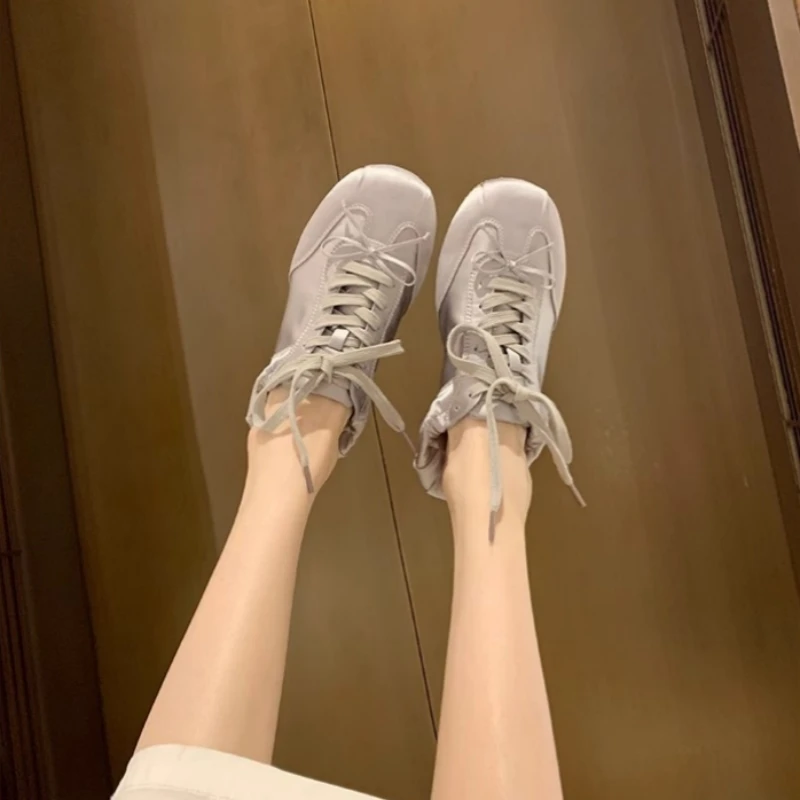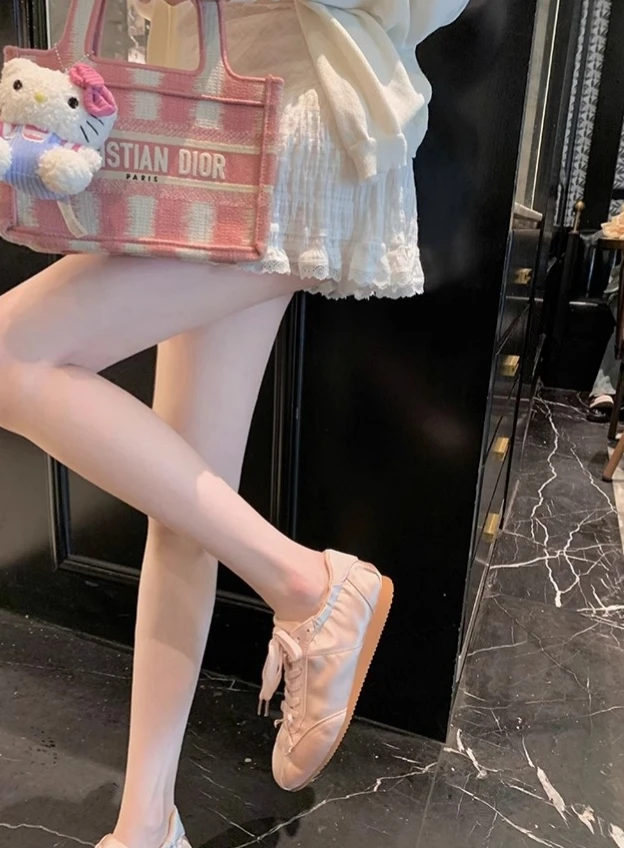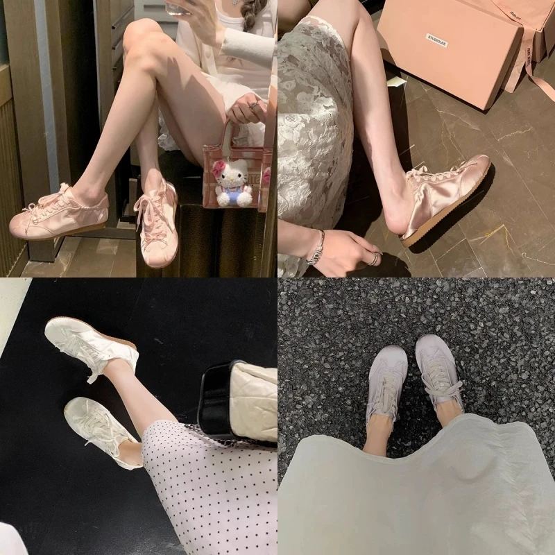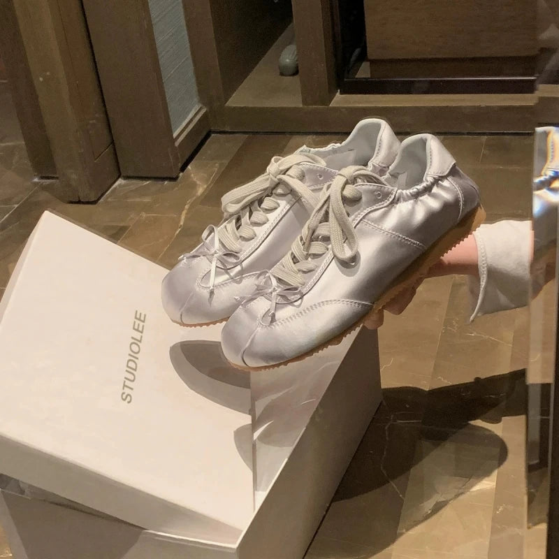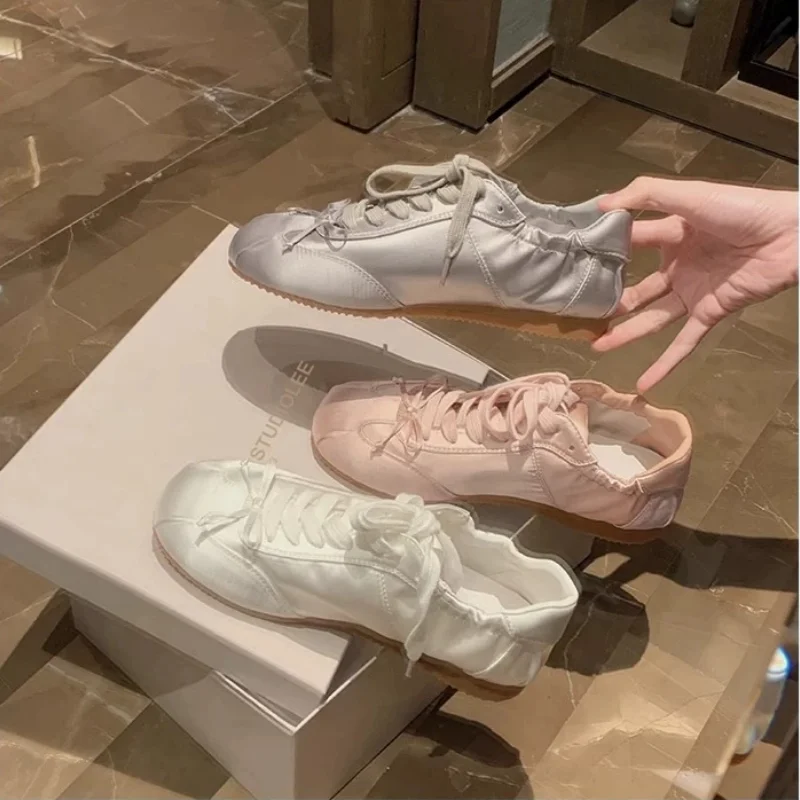 KYLETHOMASW - Women's German Training Shoes 2025 Summer Pearl Mesh Breathable Forrest Gump Shoes Soft Sole Silver and White