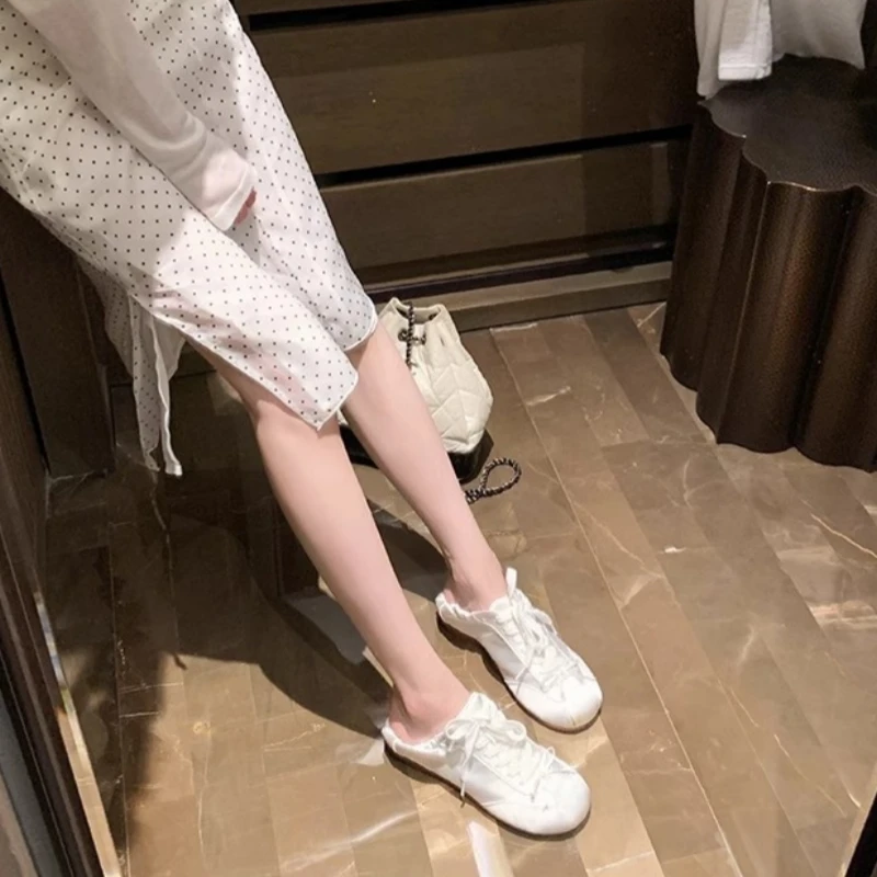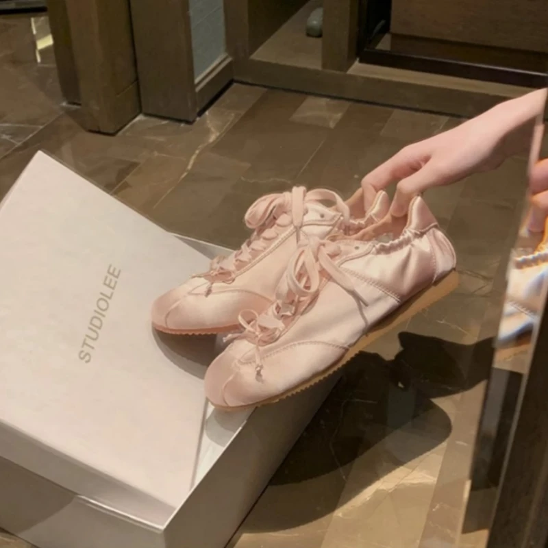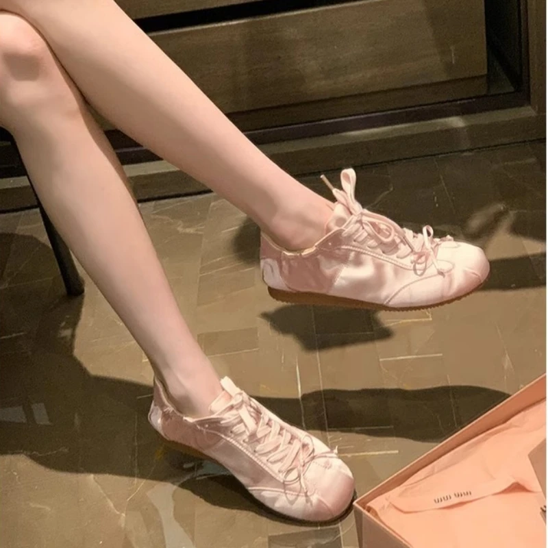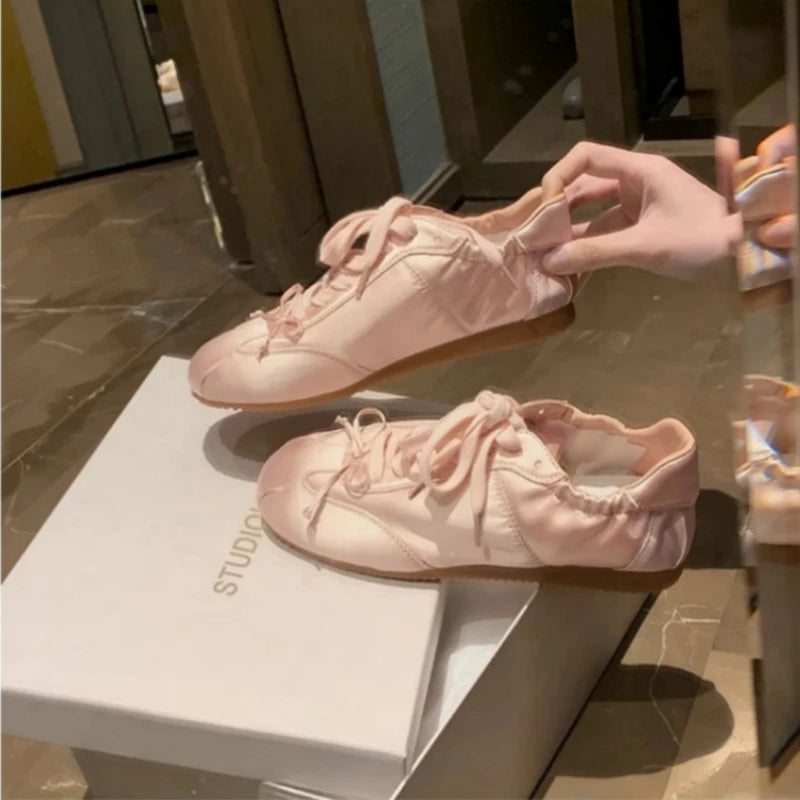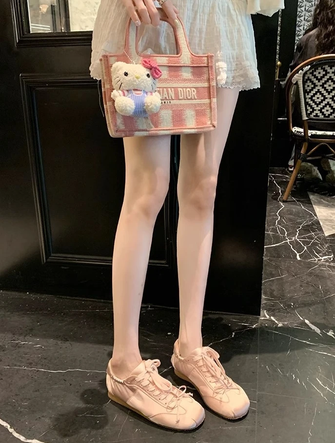 KYLETHOMASW - Women's German Training Shoes 2025 Summer Pearl Mesh Breathable Forrest Gump Shoes Soft Sole Silver and White