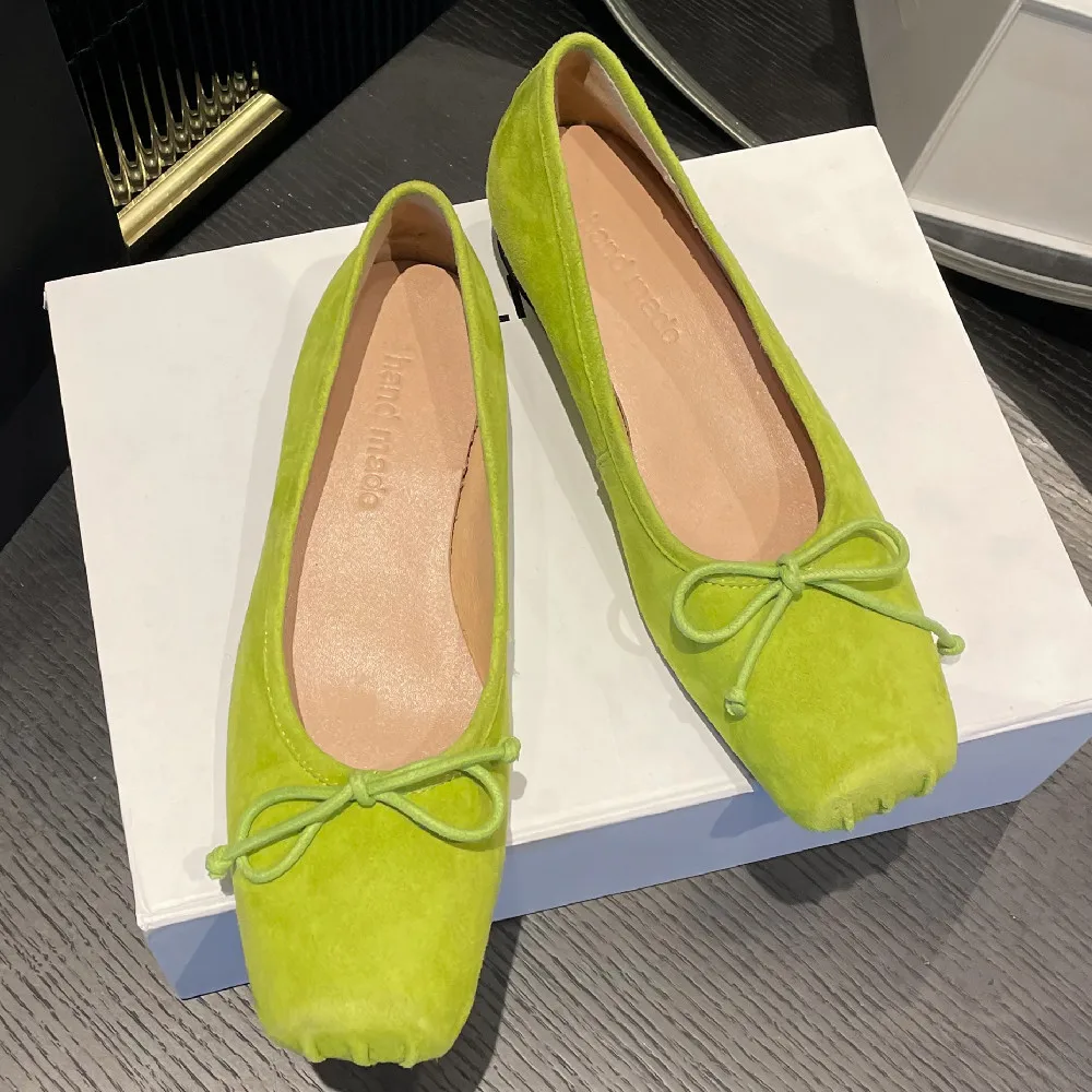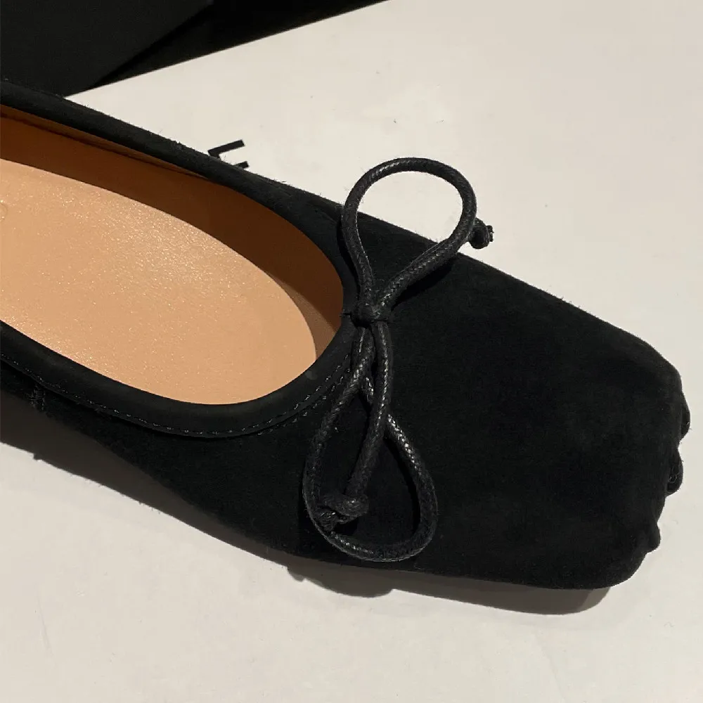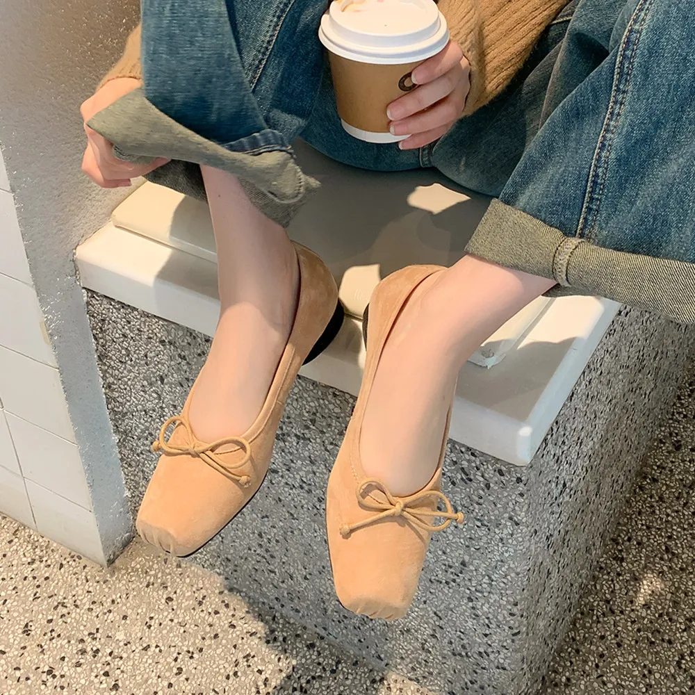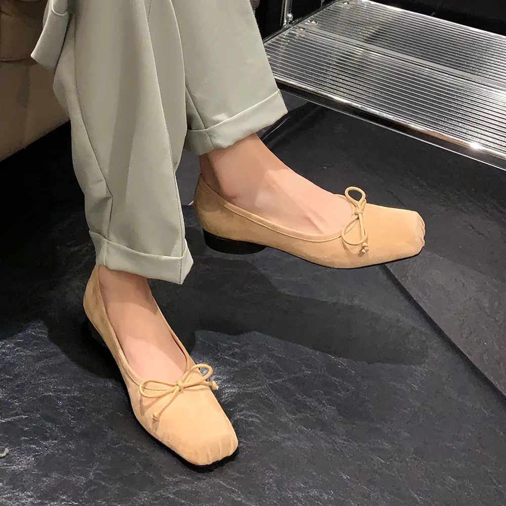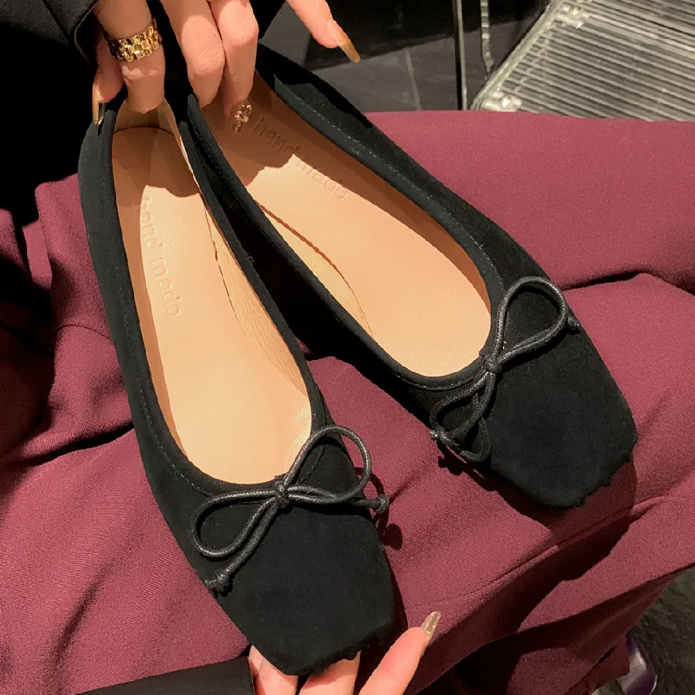 Kylethomasw - Women's natural suede leather square toe slip-on ballet flats sweet bowtie casual female ballerians soft comfort shoes for women