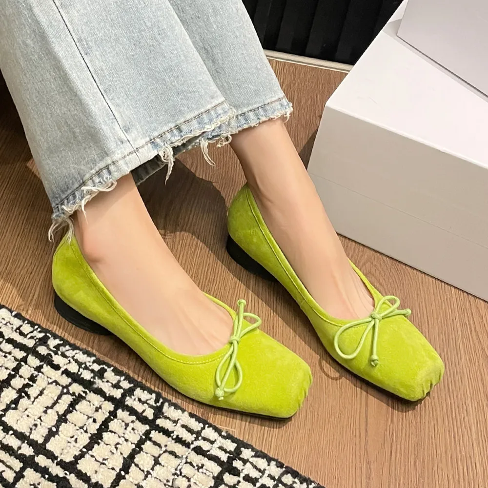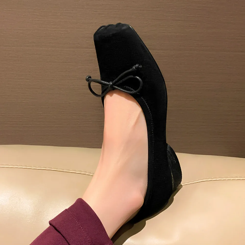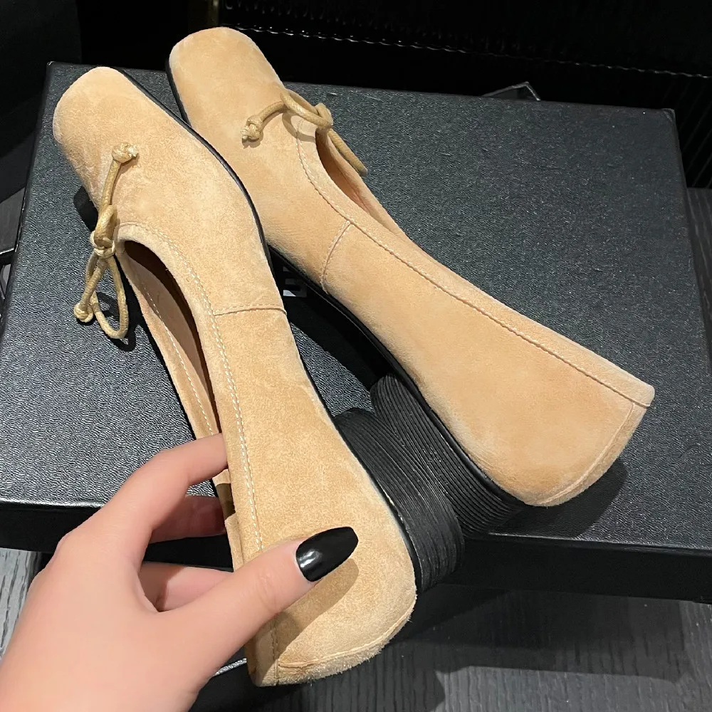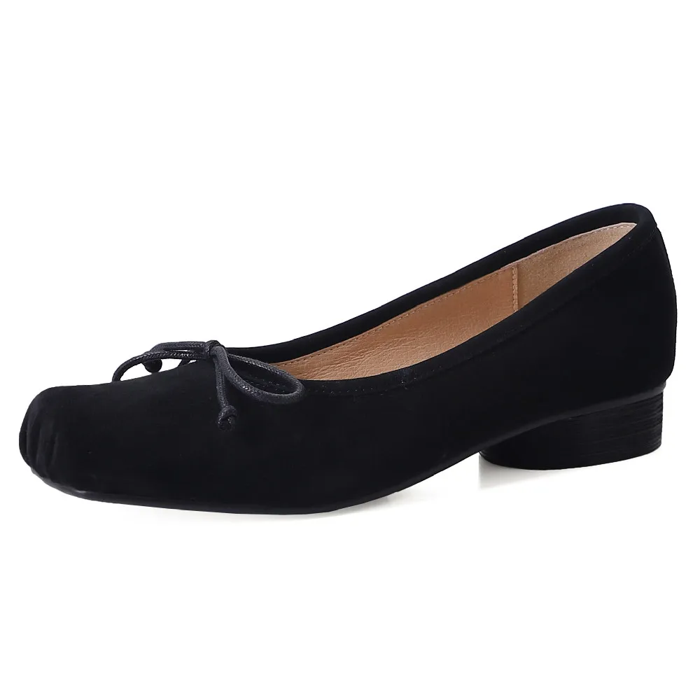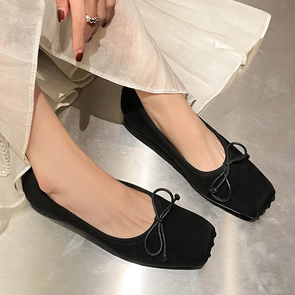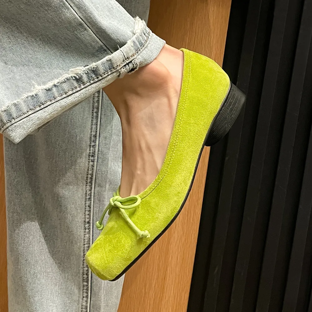 Kylethomasw - Women's natural suede leather square toe slip-on ballet flats sweet bowtie casual female ballerians soft comfort shoes for women