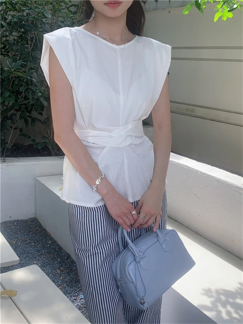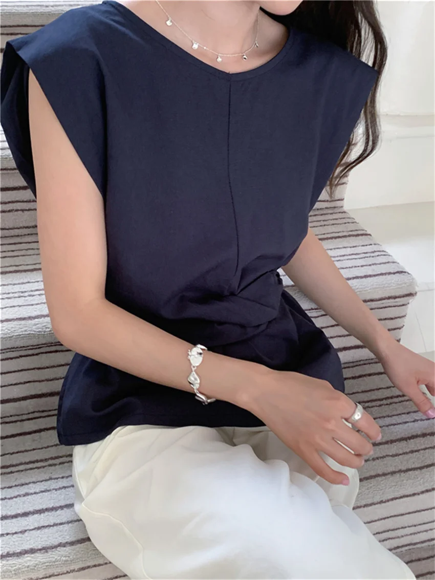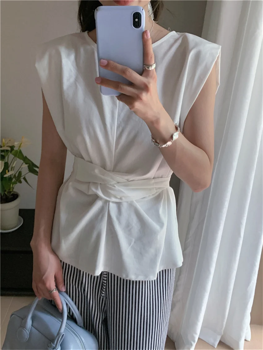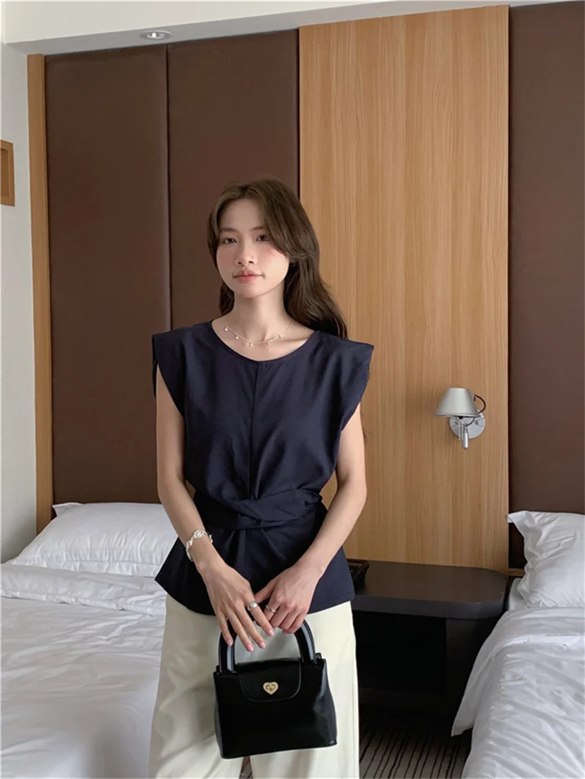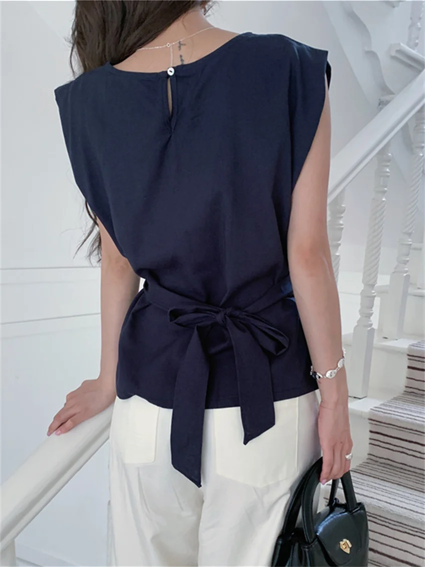 KYLETHOMASW - Work Wear Blouses Chic Women Solid Minimalist Summer Casual Sleeveless Daily Fashion New 2024 Elegant Office Lady