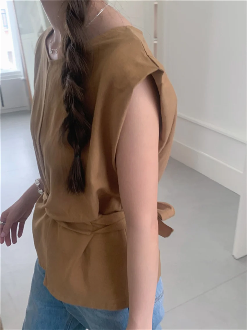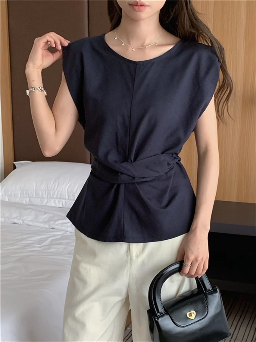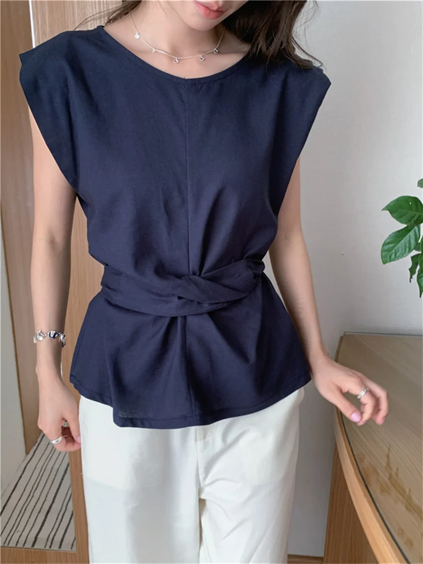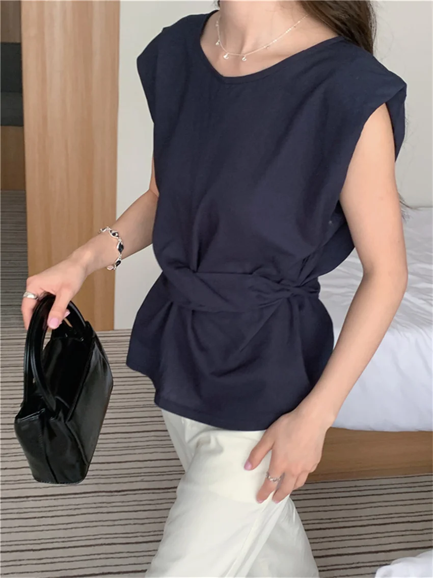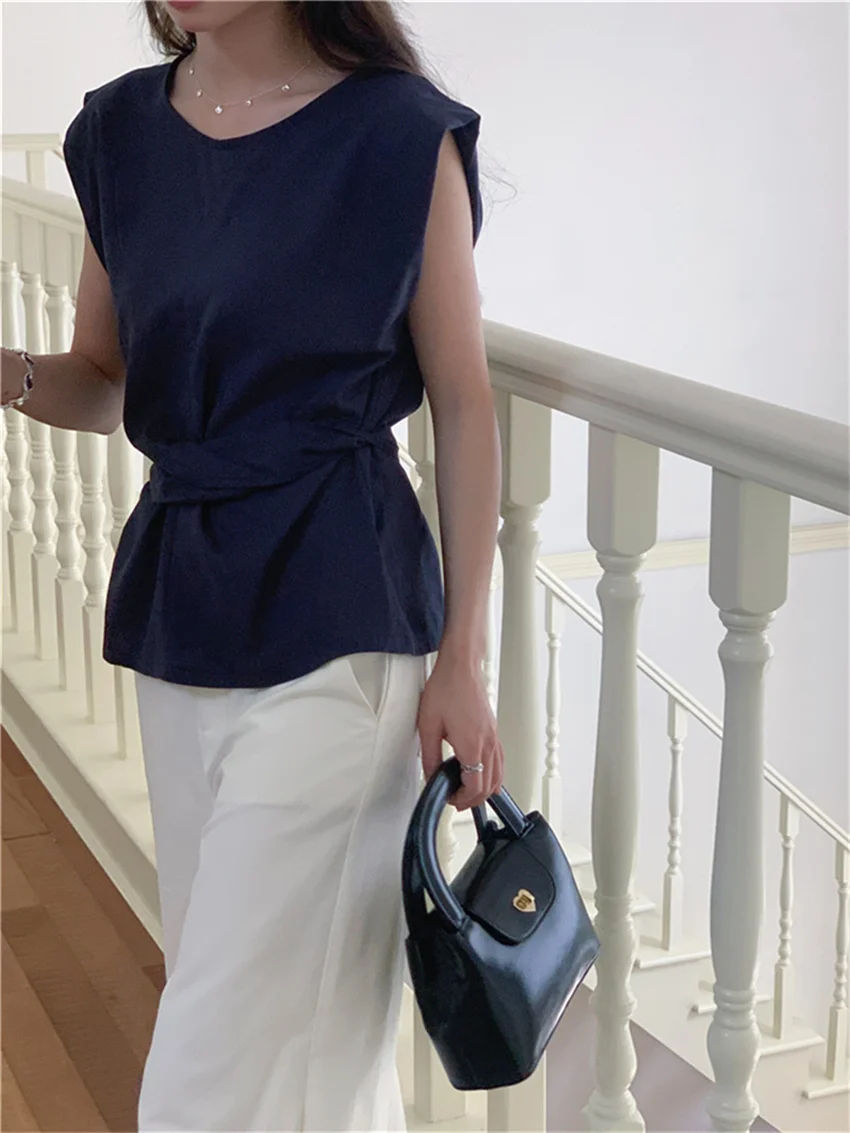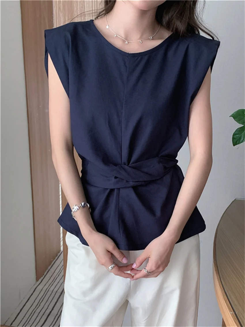 KYLETHOMASW - Work Wear Blouses Chic Women Solid Minimalist Summer Casual Sleeveless Daily Fashion New 2024 Elegant Office Lady