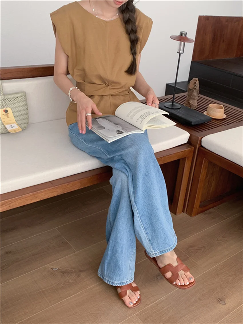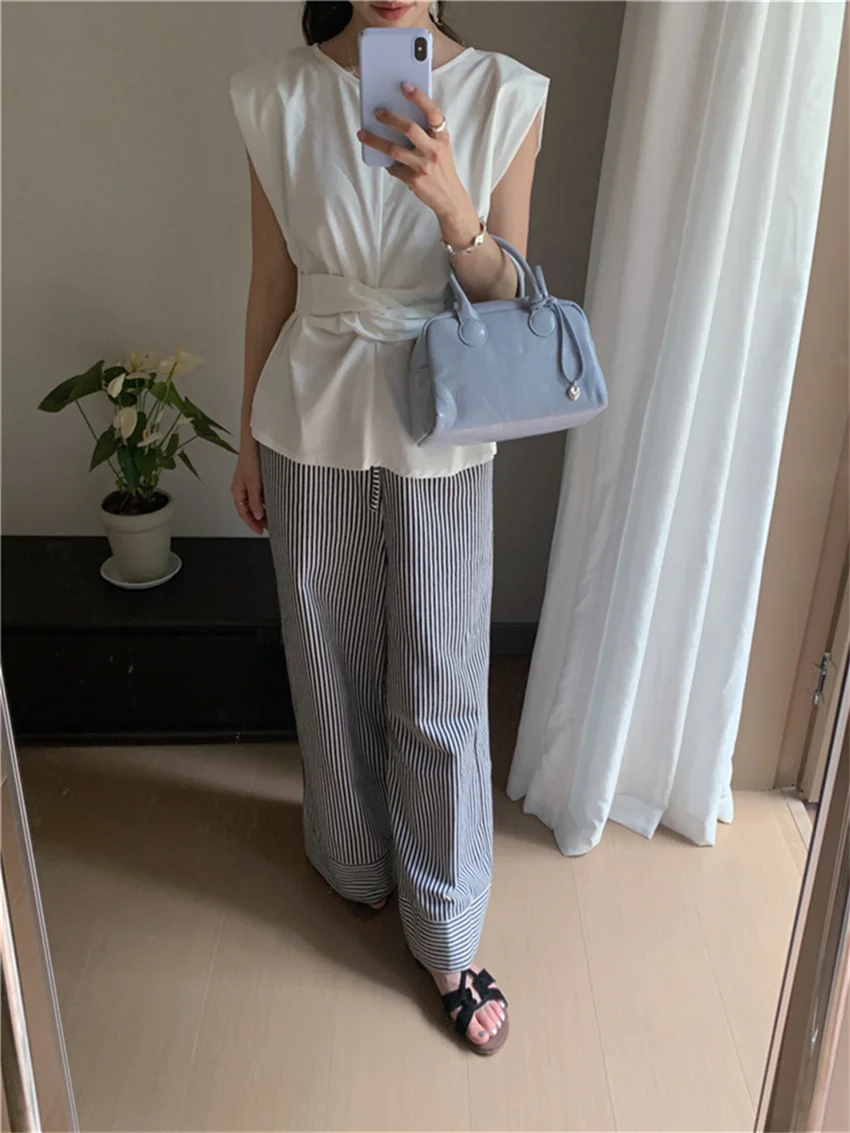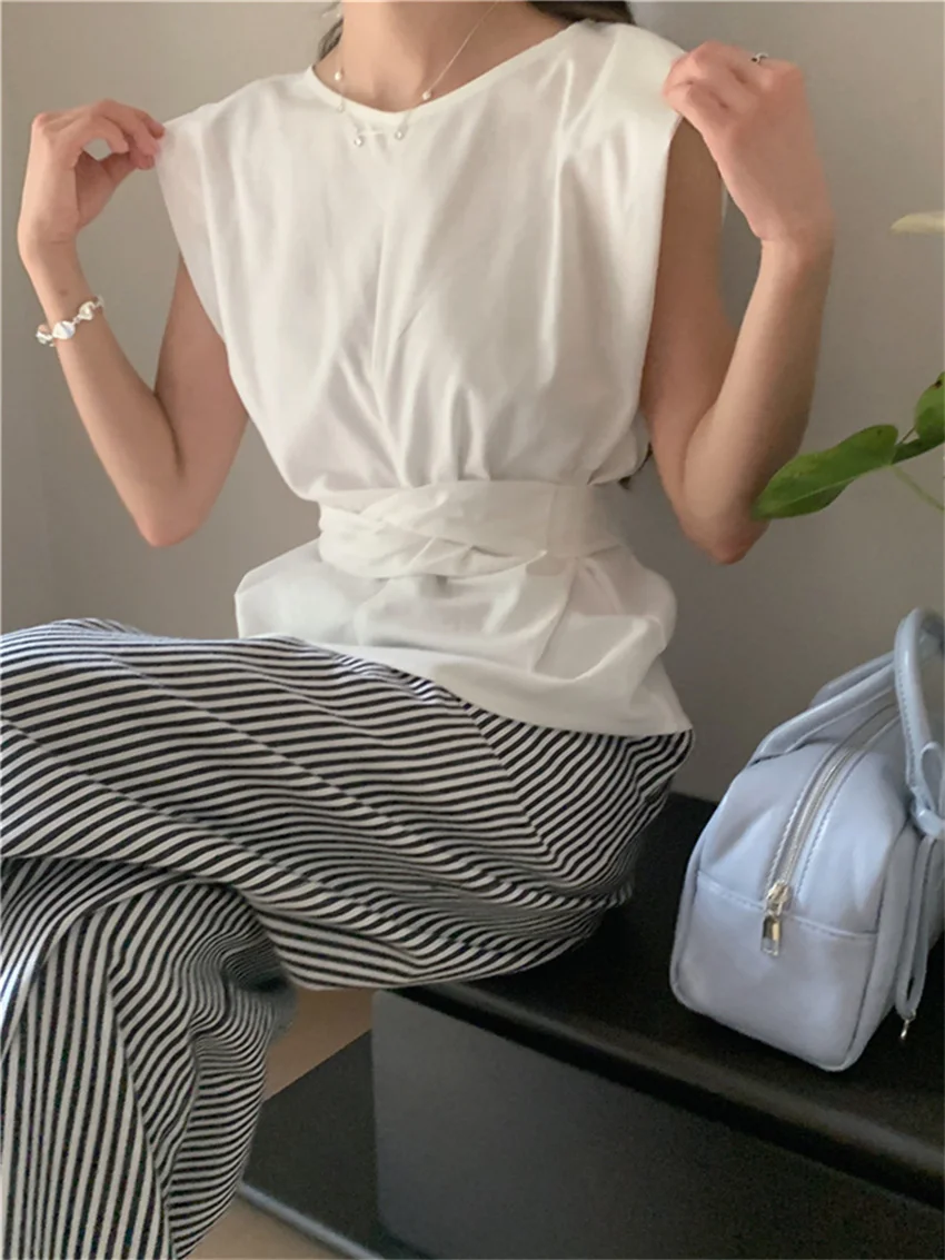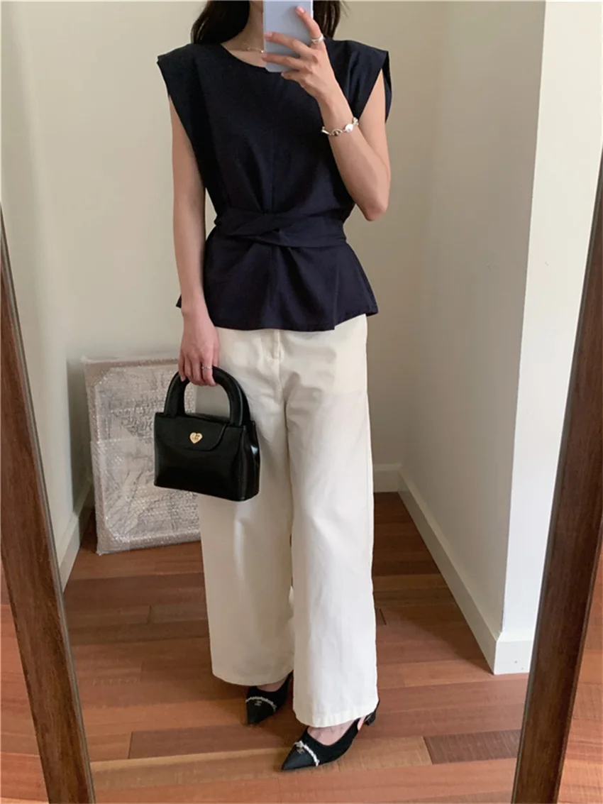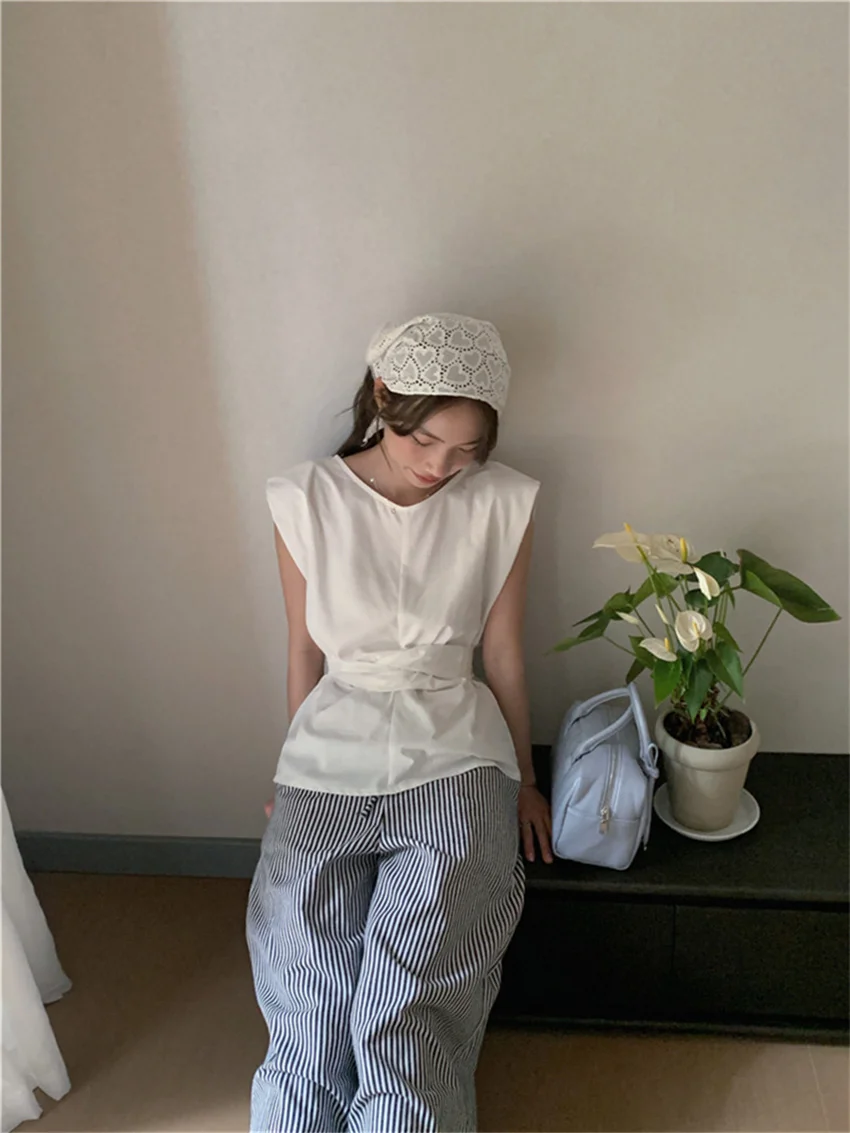 KYLETHOMASW - Work Wear Blouses Chic Women Solid Minimalist Summer Casual Sleeveless Daily Fashion New 2024 Elegant Office Lady