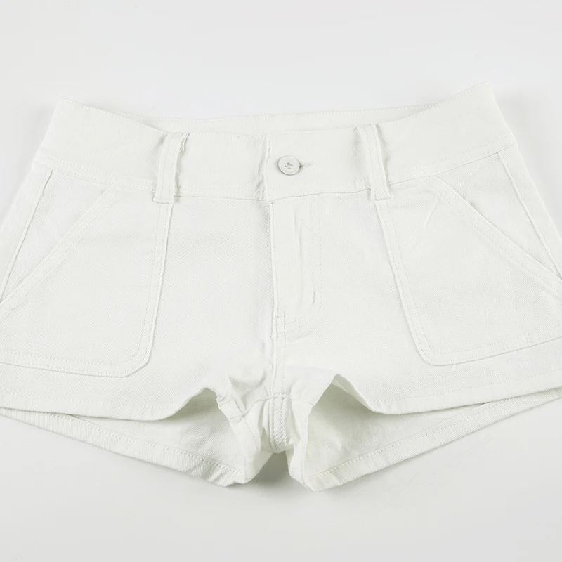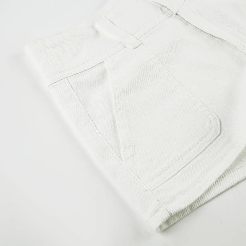 KYLETHOMASW - Y2K Women's Knitted White Shorts Pockets Sexy Low Rise Skinny Super Short Pants Streetwear Casual Summer Chic Basic Shorts Chic