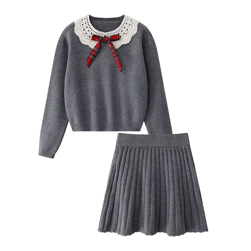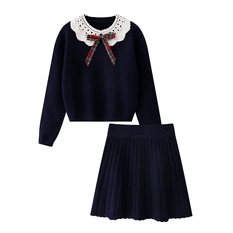 KYLTHOMASW - Sweet Hot Girl College Style Suit Women's Autumn Bow Peter Pan Collar Sweater High Waisted Short Skirt Fashion Two-piece Set